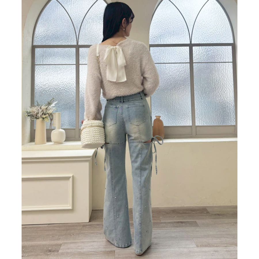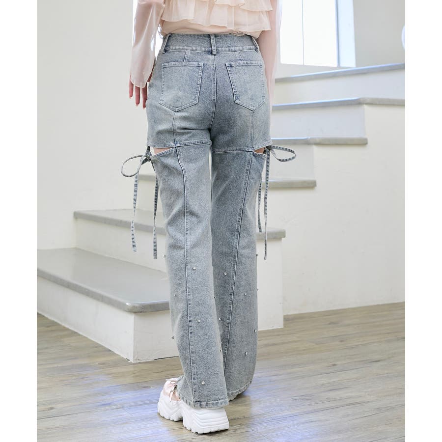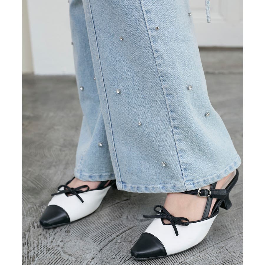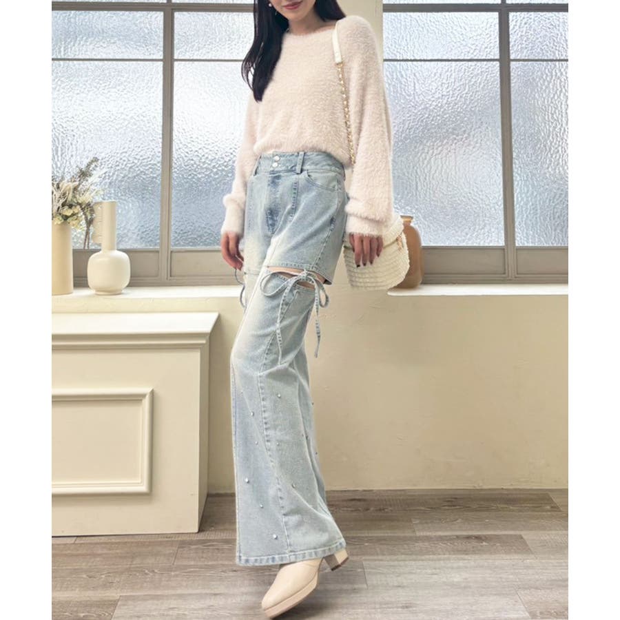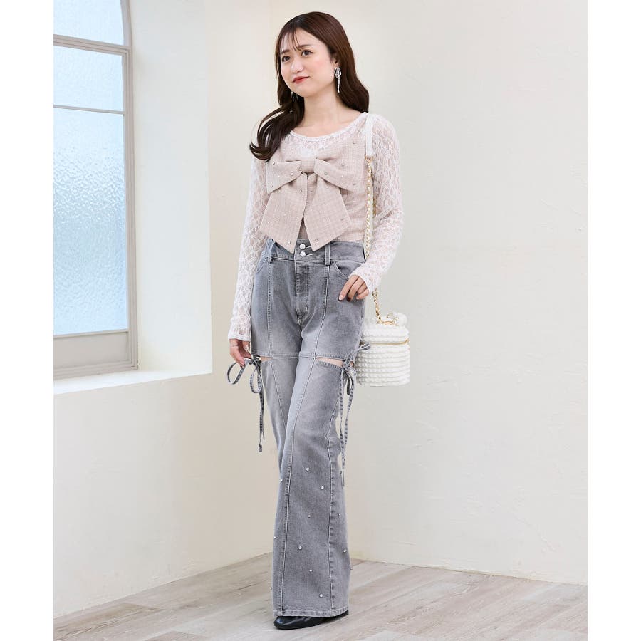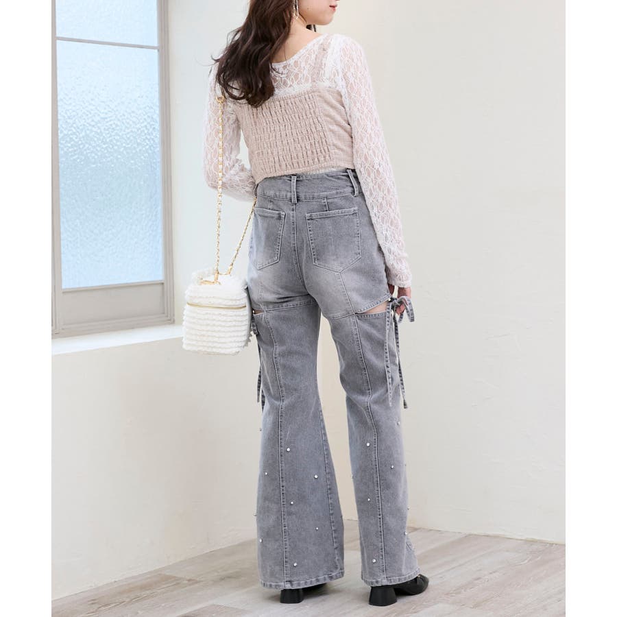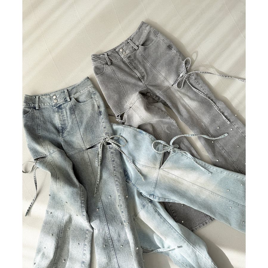 スリットビジューフレアデニムパンツ