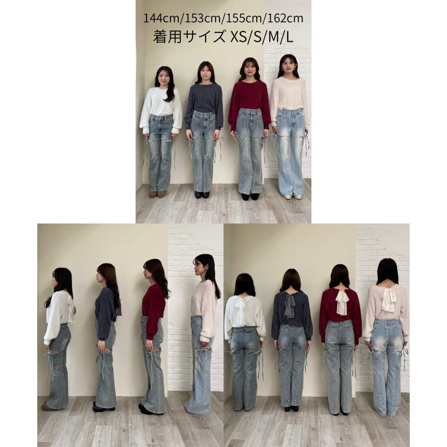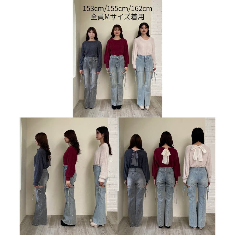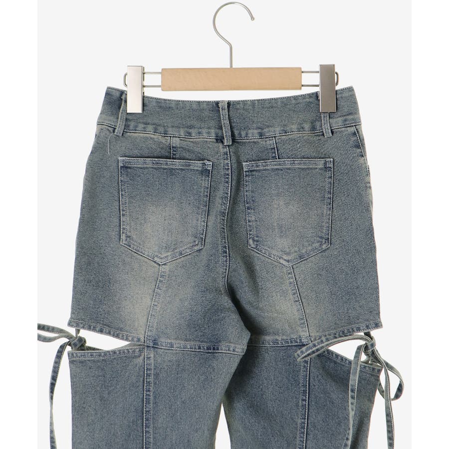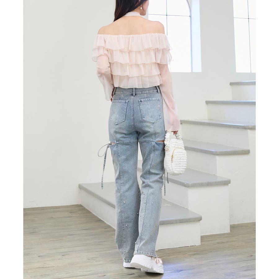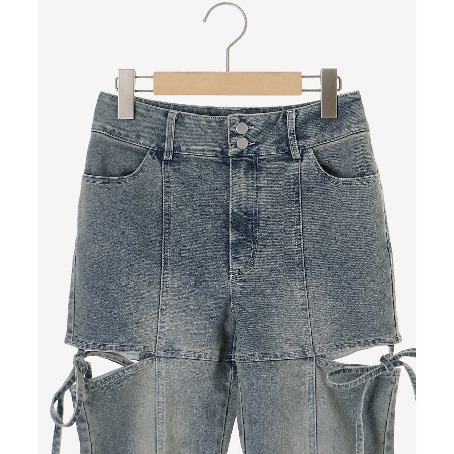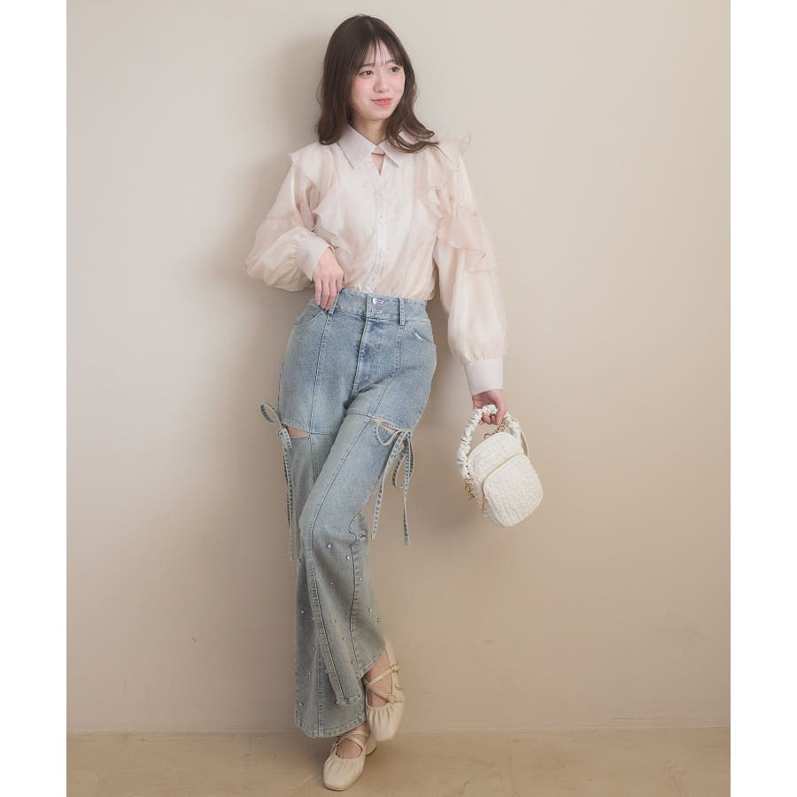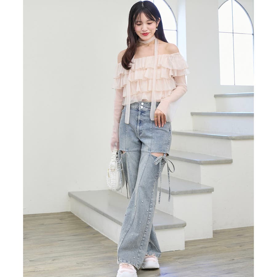 スリットビジューフレアデニムパンツ