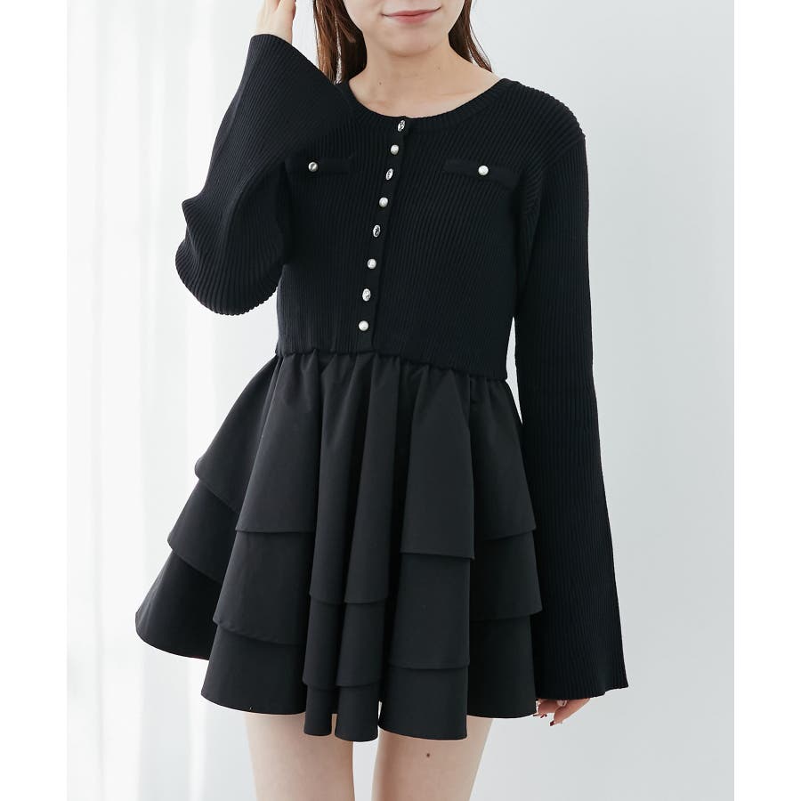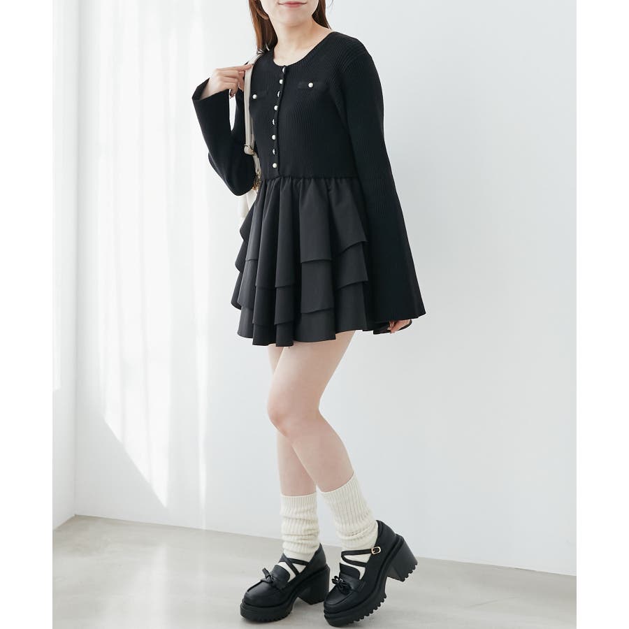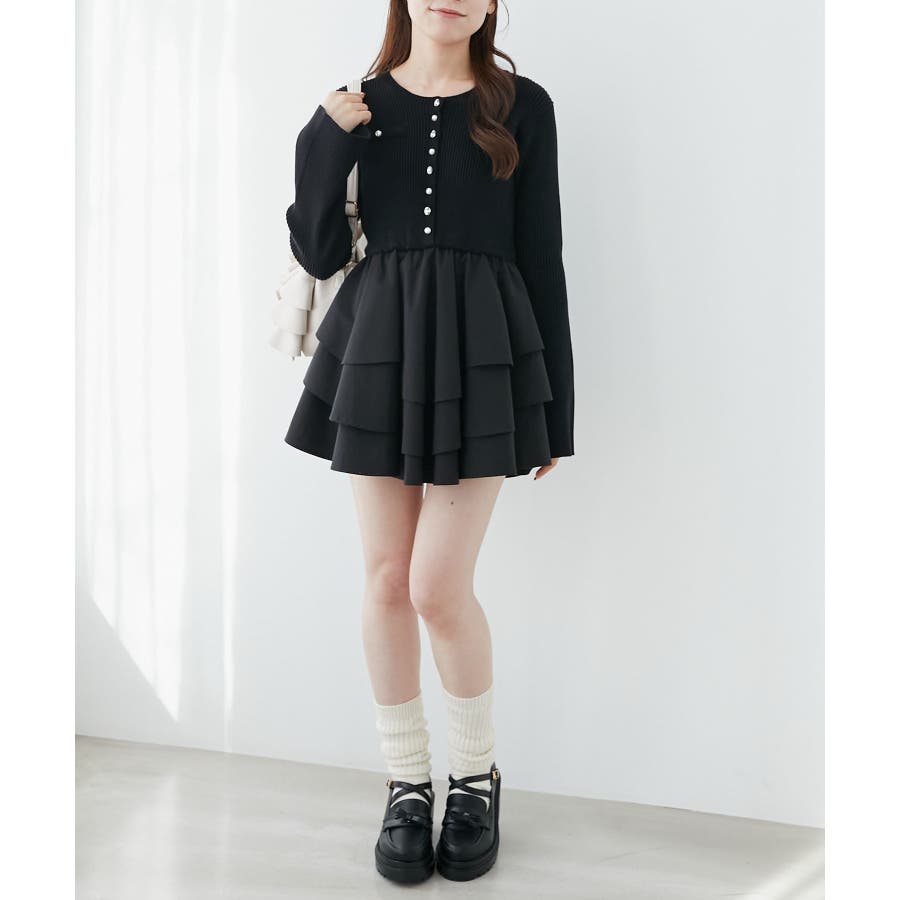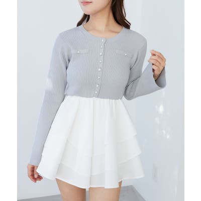 ニットドッキングティアードミニワンピ
