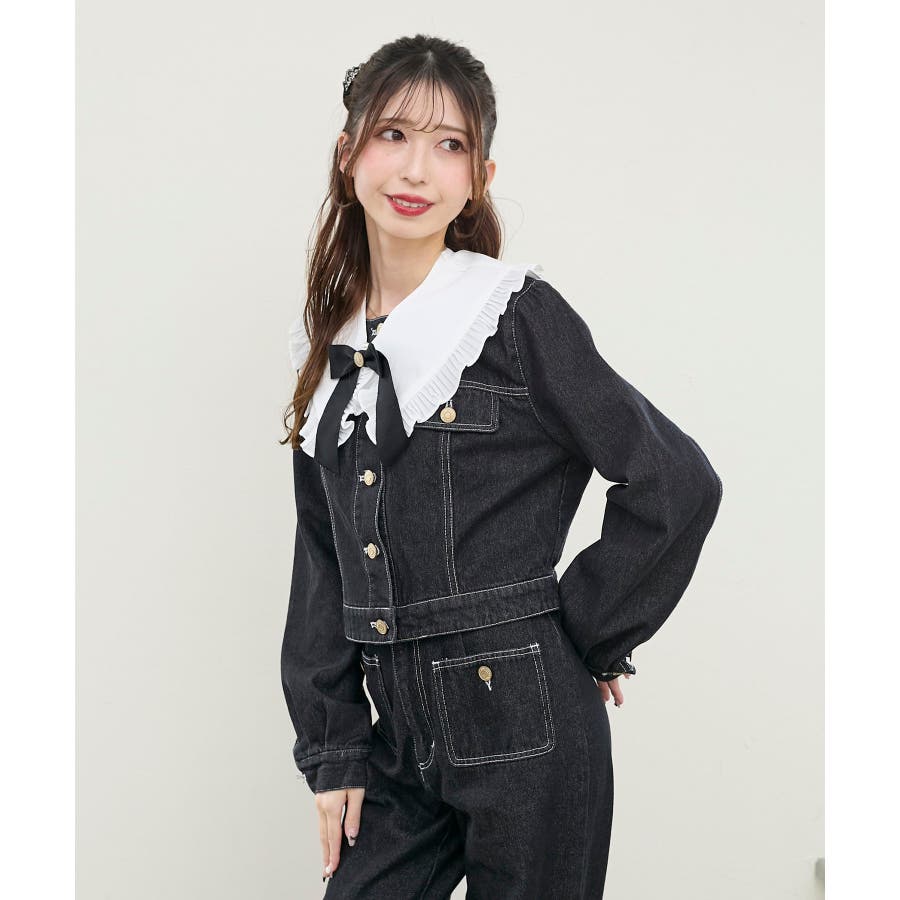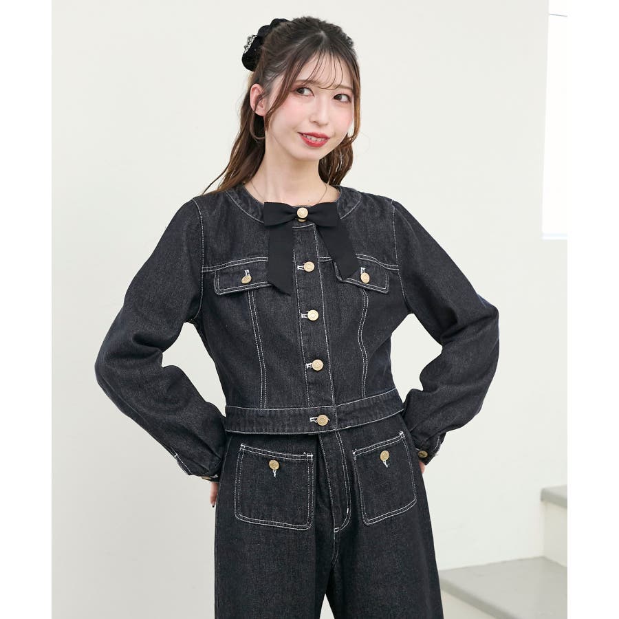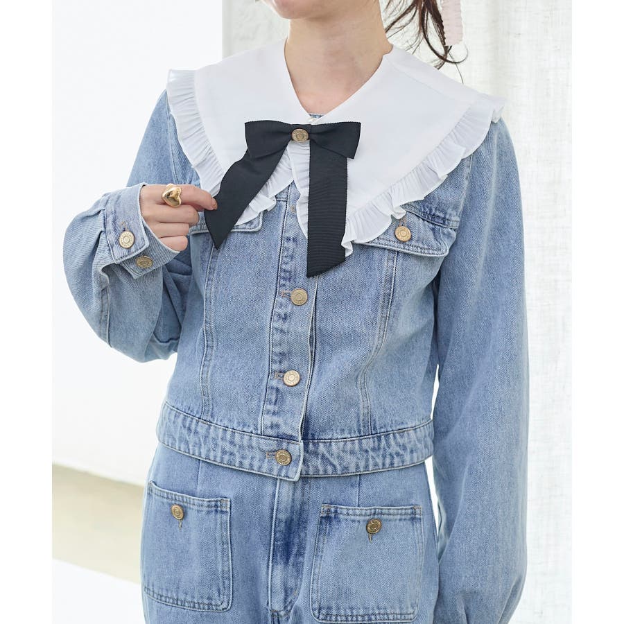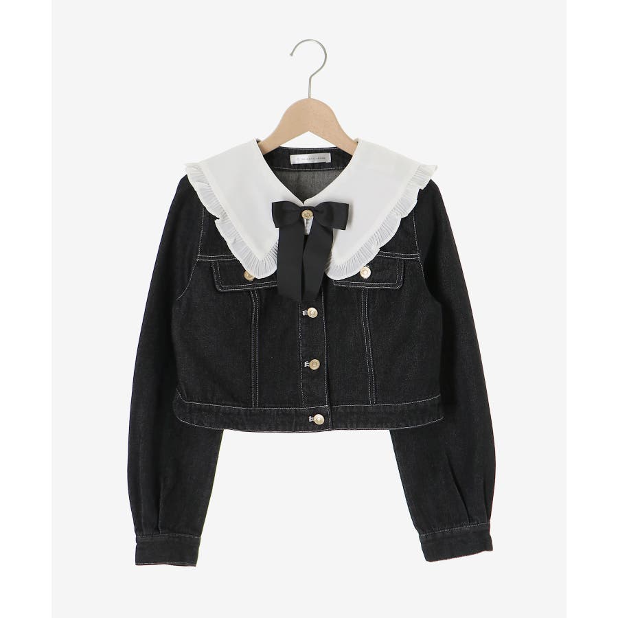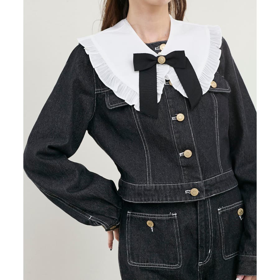 | 素材 | [ジャケット]本体/綿72% ポリエステル13% レーヨン13% ポリウレタン2% リボン部分/ポリエステル100% [付け襟]本体/ポリエステル100% 別布/ポリエステル100% |