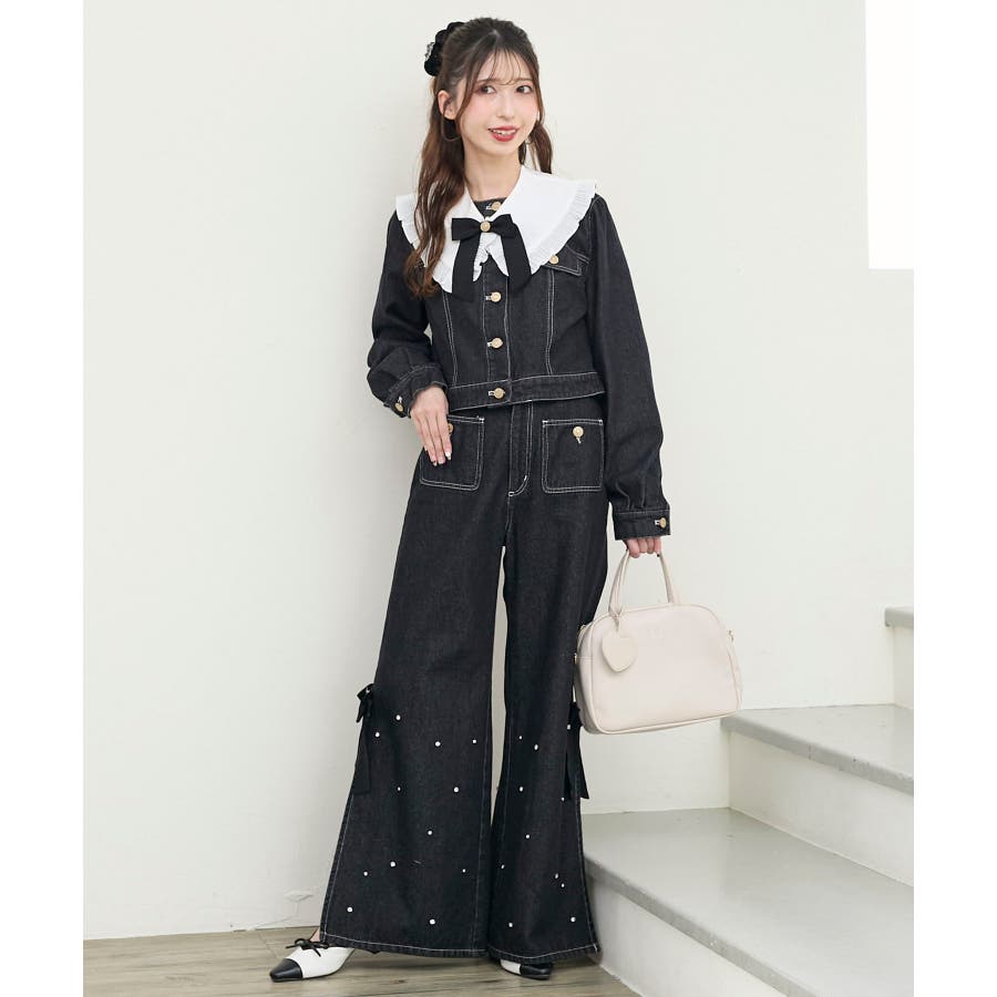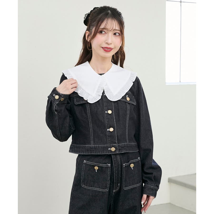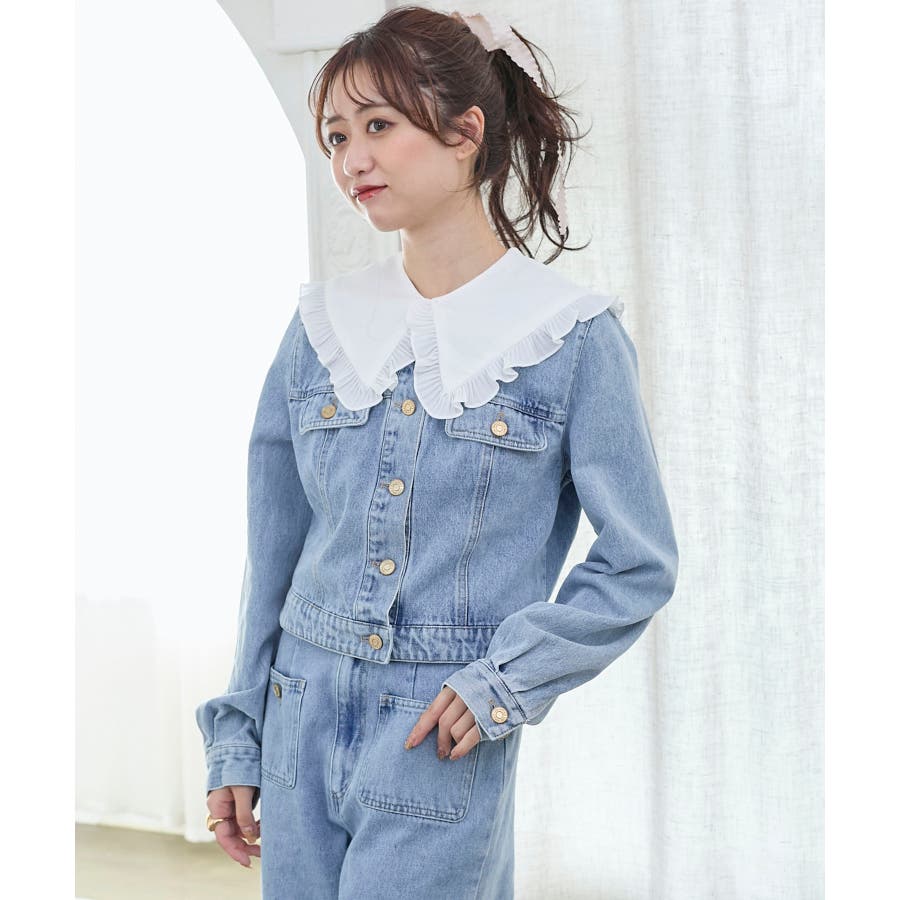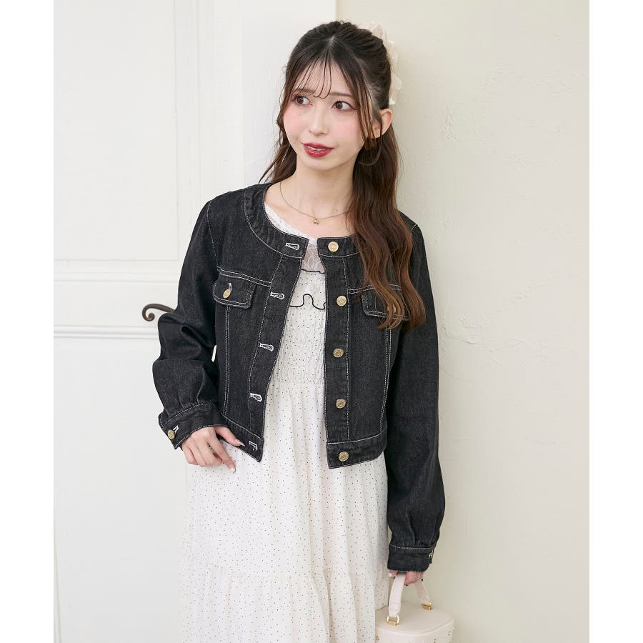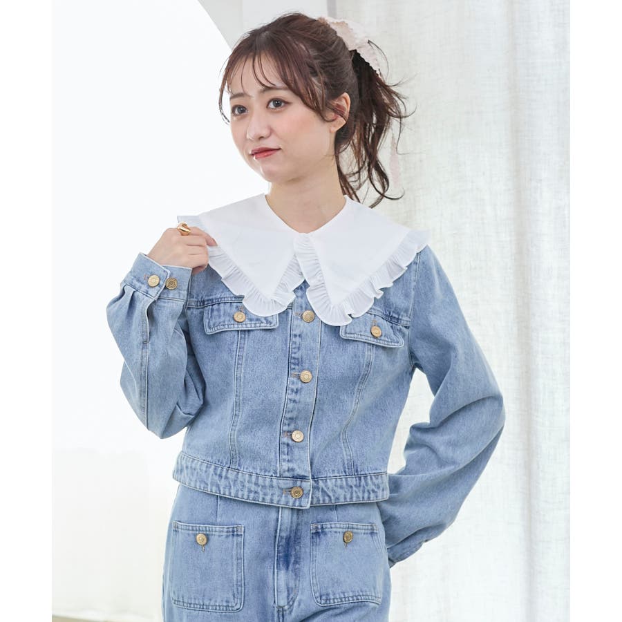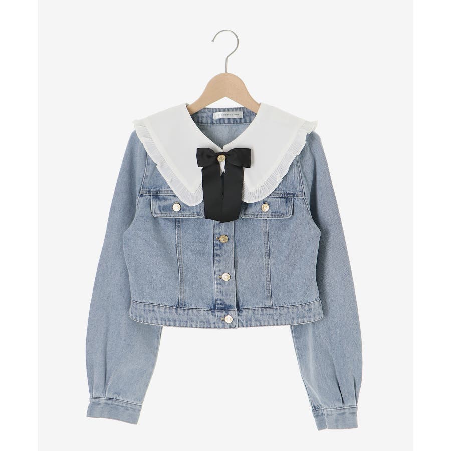 | 素材 | [ジャケット]本体/綿72% ポリエステル13% レーヨン13% ポリウレタン2% リボン部分/ポリエステル100% [付け襟]本体/ポリエステル100% 別布/ポリエステル100% |