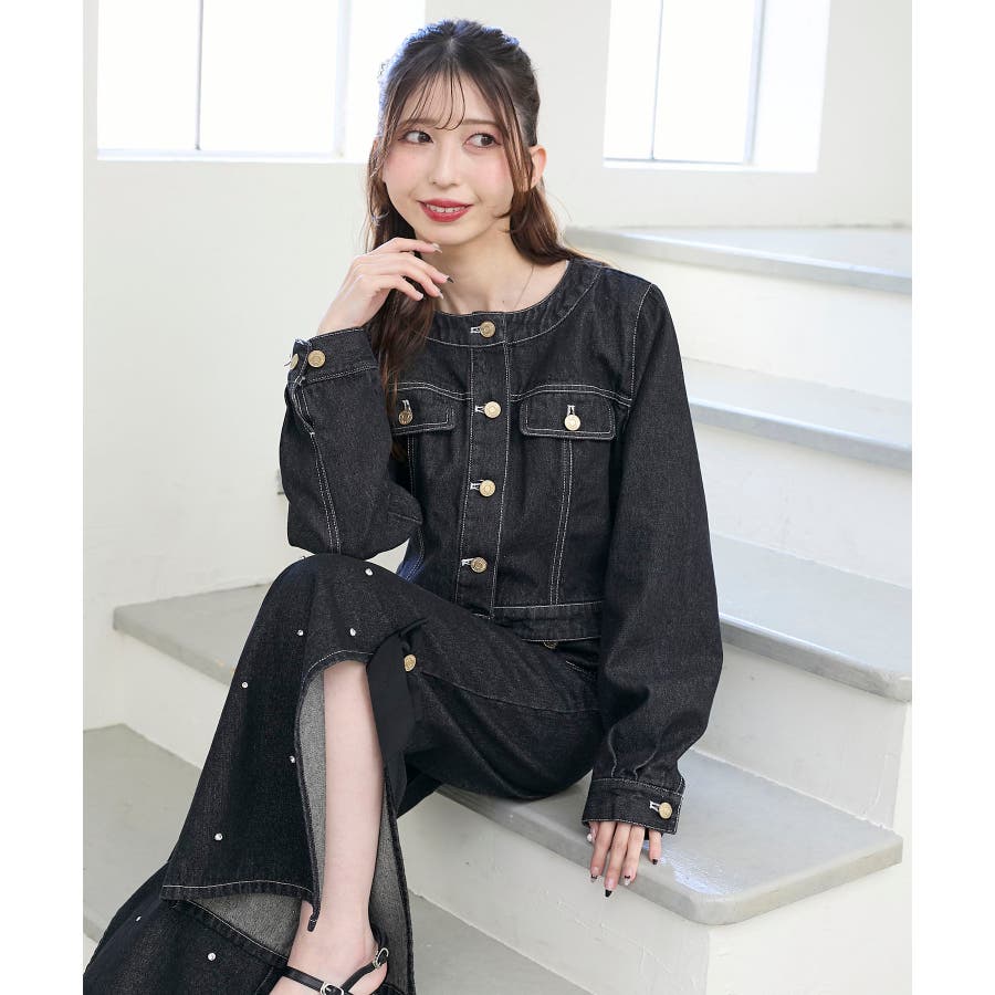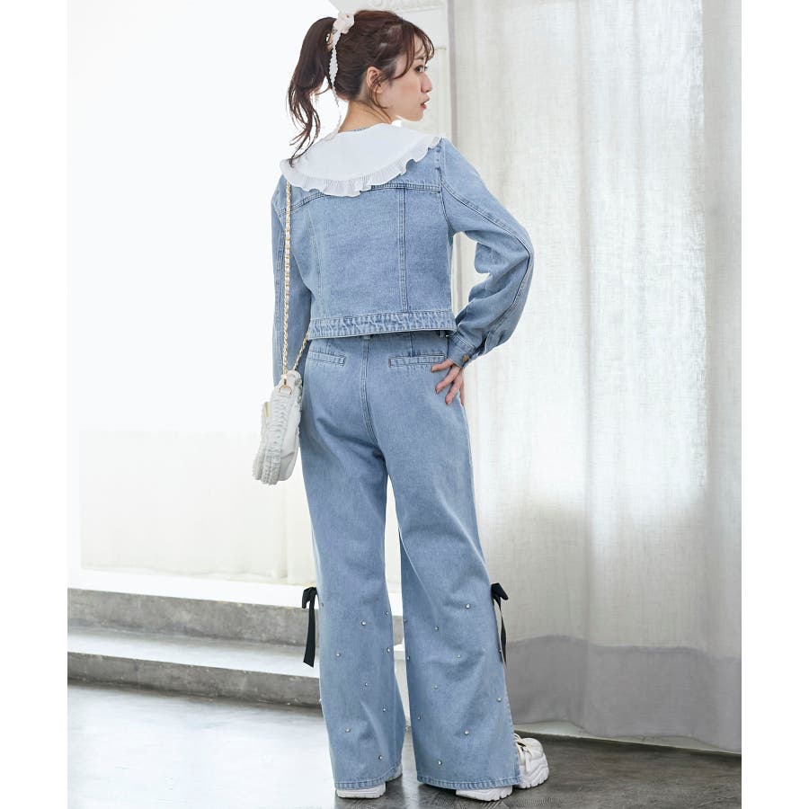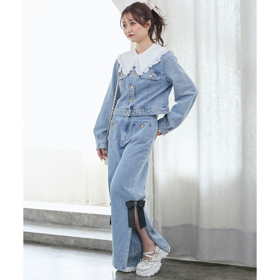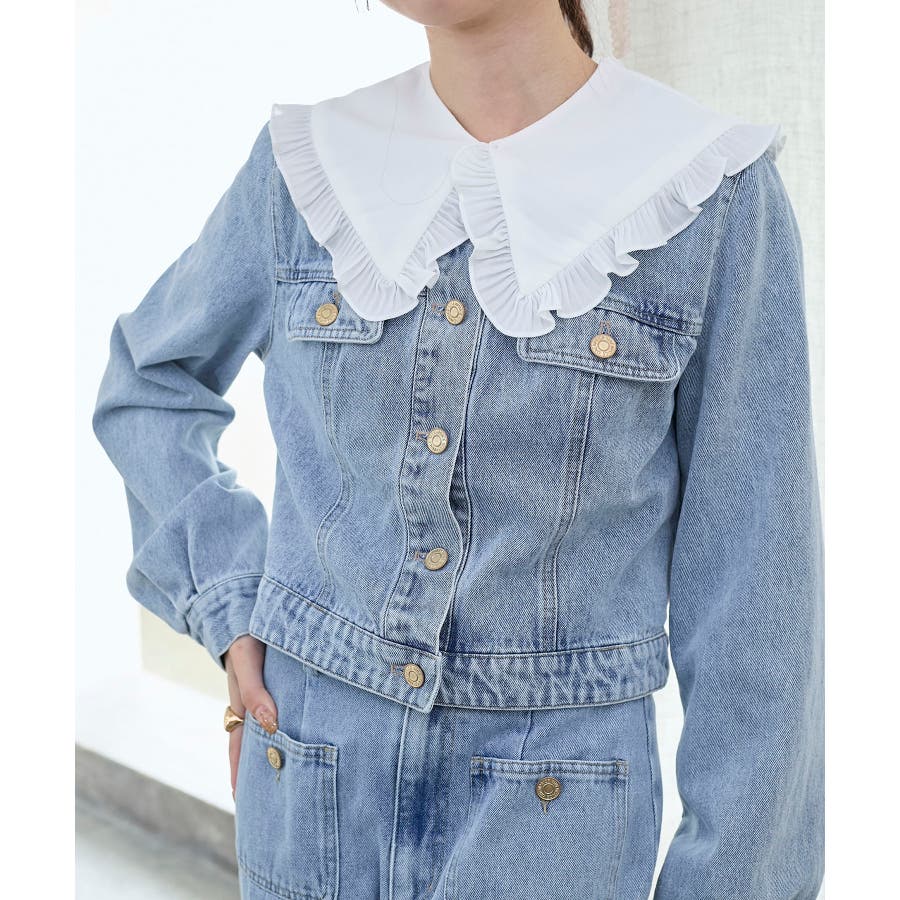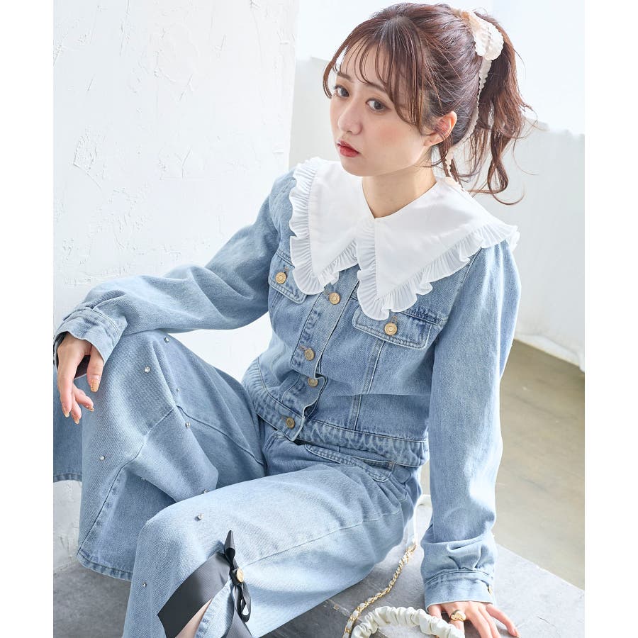 | 素材 | [ジャケット]本体/綿72% ポリエステル13% レーヨン13% ポリウレタン2% リボン部分/ポリエステル100% [付け襟]本体/ポリエステル100% 別布/ポリエステル100% |