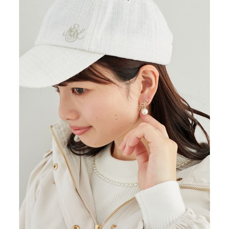 華奢なリボンとパールのデザインがとってもかわいいです。どんなお洋服にも合いそうだし、重宝しそうです。