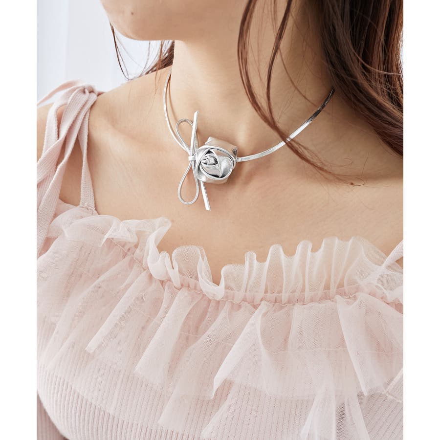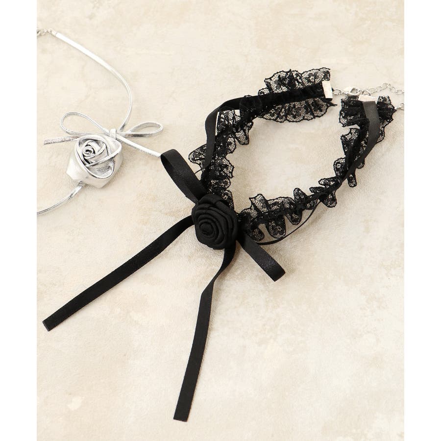 ローズ×リボンがトレンド感をPUするガーリーなチョーカー。デコルテをすっきり見せつつ、物足りなさをカバーしてくれる華やかさが魅力的。女性らしいモチーフでバレエコアなスタイルにもぴったりなアイテムです◎■商品のお気に入り登録 再入荷通知やのこりわずか、お得なプライスダウンの情報も受け取ることができます。*商品の実測サイズはシルバーです。[ブラック]幅3cm/全長(調節可)27.5cm/モチーフタテ11cm×ヨコ8cm