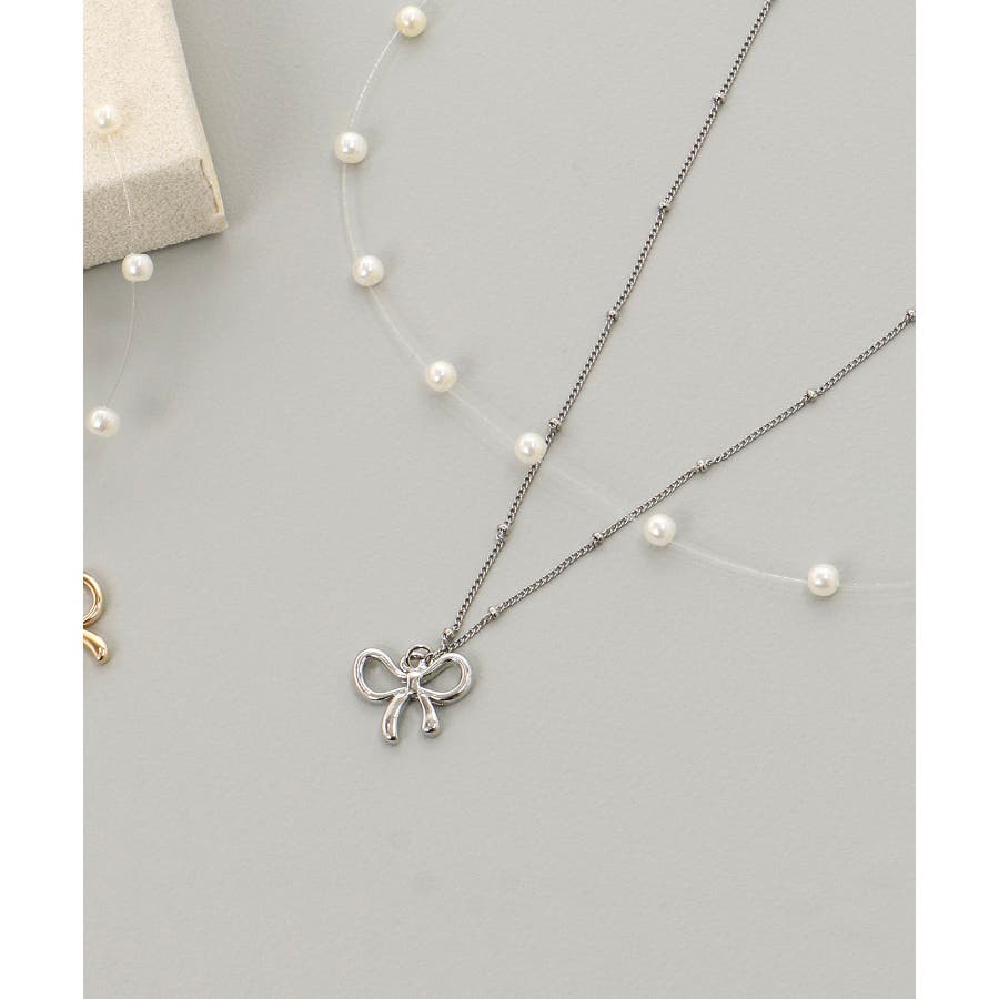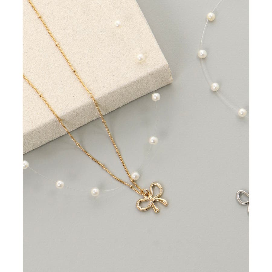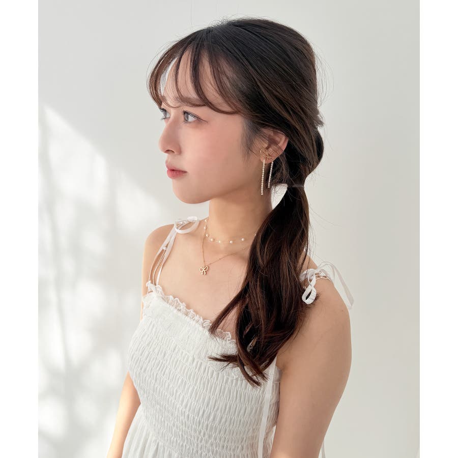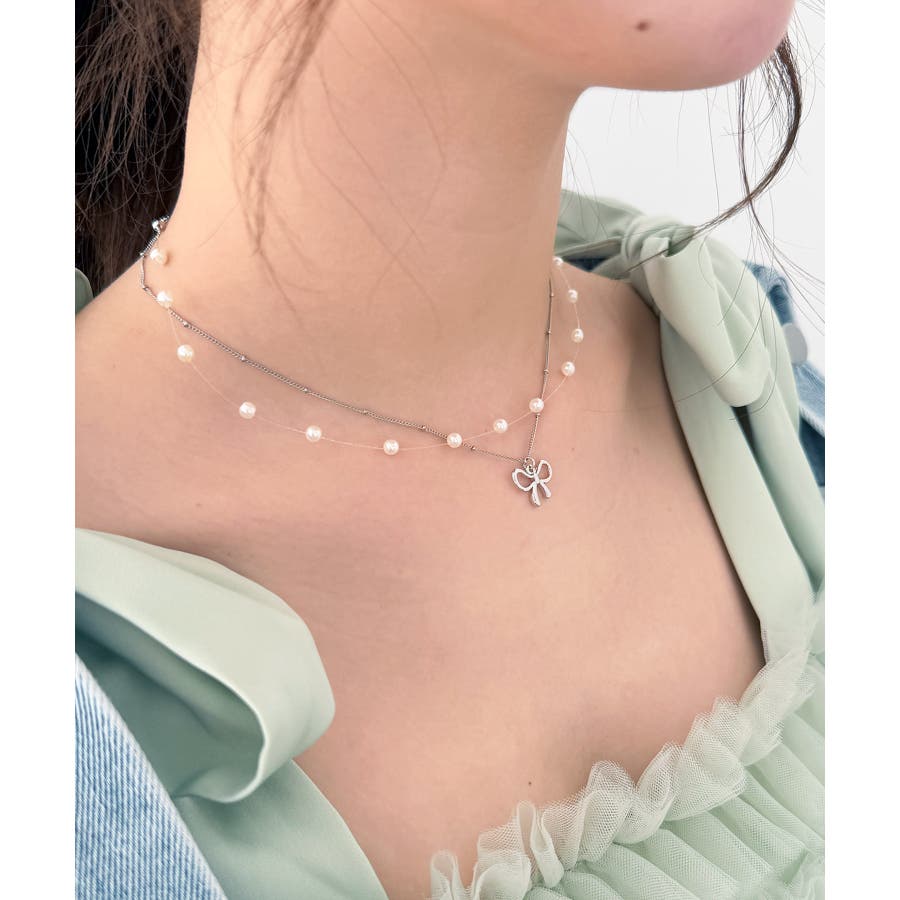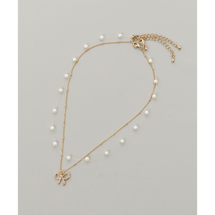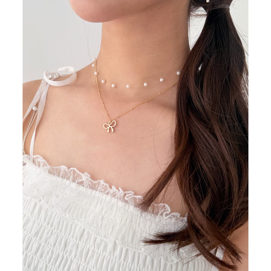 リボンモチーフがさりげなく揺れる、チェーン×パールの2連ネックレス。異なる素材の組み合わせが程よい抜け感をプラスし、スタイリングを軽やかに仕上げます。それぞれ単品でも使える仕様で、重ね付けはもちろんシンプルに一点使いも◎■商品のお気に入り登録 再入荷通知やのこりわずか、お得なプライスダウンの情報も受け取ることができます。ぜひご登録ください◎*商品の実測サイズはリボンです。[パール]長さ(調節可)34.5cm/パール直径0.3cm