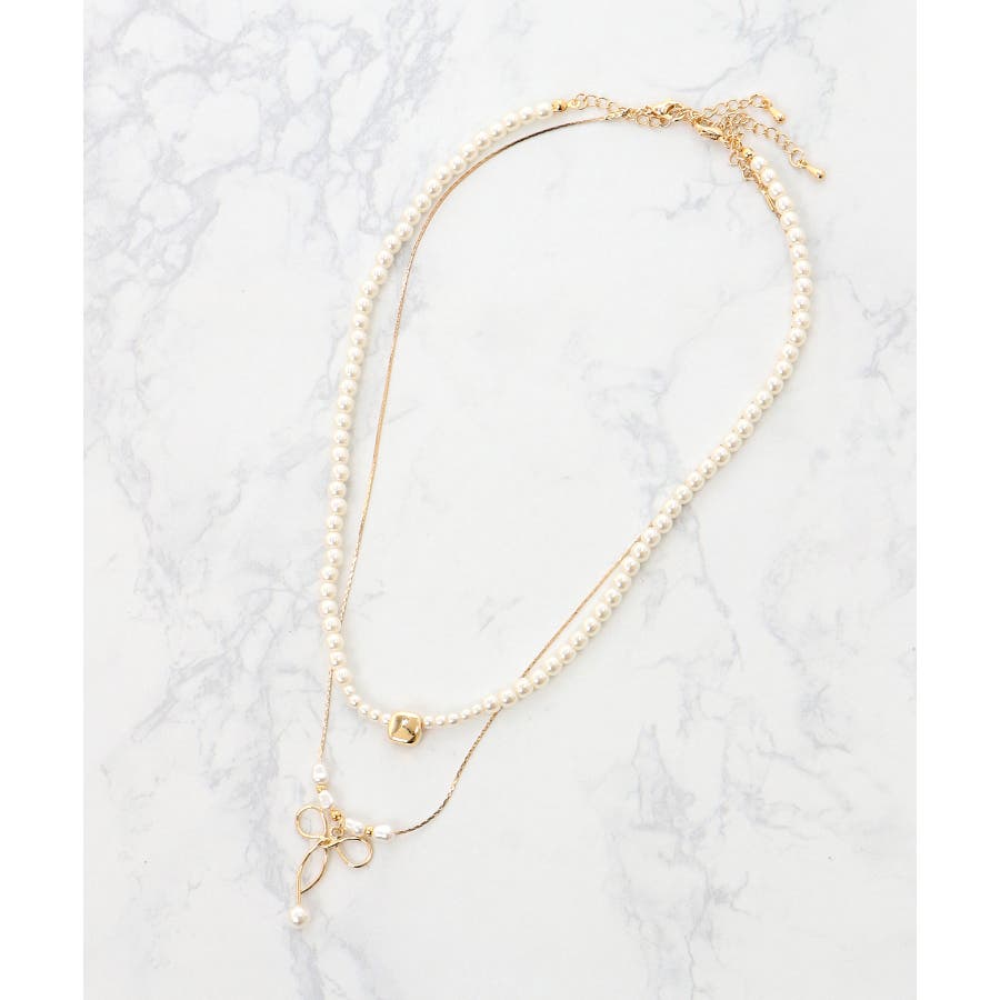 2連パール×リボンネックレス