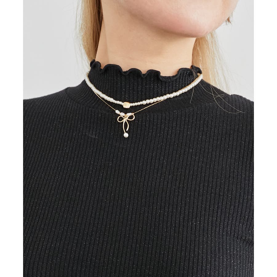 華奢なチェーンとパールを重ねた、2連デザインのネックレス。さりげなくあしらったリボンモチーフが、甘くなりすぎず程よいアクセントに。それぞれ単品使いでき、その日の気分やスタイリングに合わせてアレンジを楽しめます。■商品のお気に入り登録:再入荷通知やのこりわずか、お得なプライスダウンの情報も受け取ることができます。ぜひご登録ください◎*商品の実測サイズはリボンです。[パール]長さ(調節可)34cm/モチーフタテ0.7cm×ヨコ0.7cm/パール直径(大)0.4cm(小)0.2cm