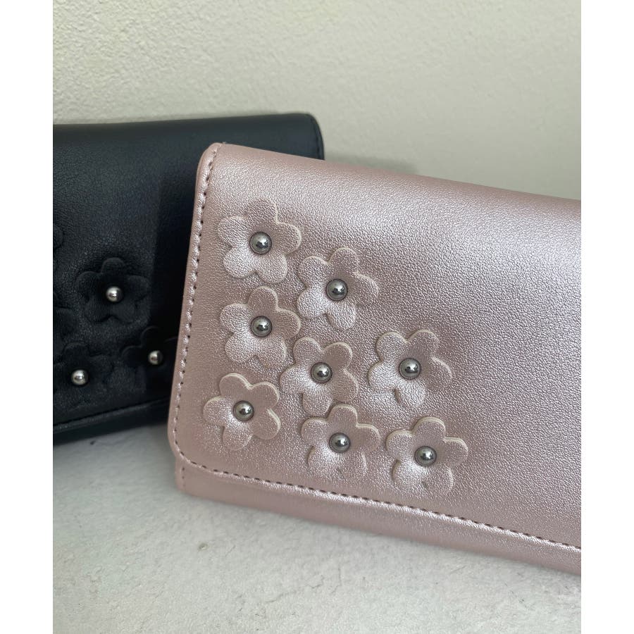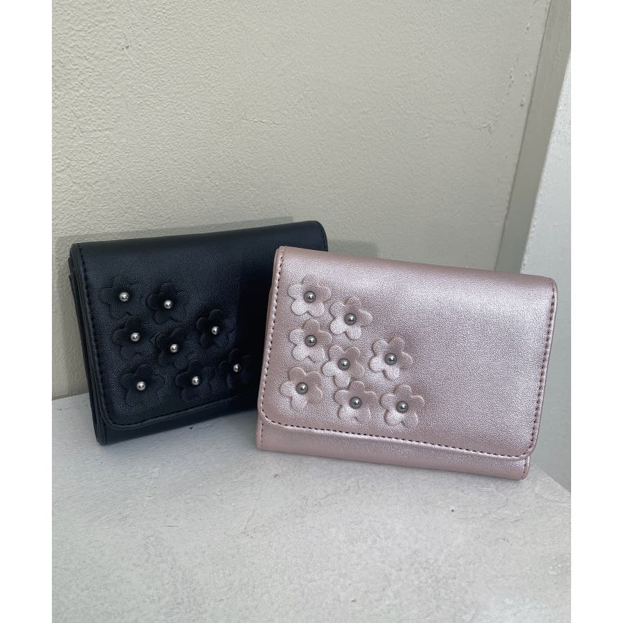 お花モチーフが可愛い三つ折りウォレット■デザインフロントに咲いたお花とスタッズで、手に取るたびに気分が上がる“フローラルデザイン”のお財布。小さい見た目ながら、紙幣・小銭・カードをすっきり収納できる三つ折り仕様。ファスナー付きコインポケット、複数カードポケットで使いやすさも抜群です。デイリー使いはもちろん、お出かけや旅行・推し活のサブ財布にも◎持つだけでコーデの可愛さまで底上げしてくれるアイテム。■サイズ感片手に収まるコンパクトサイズで、ミニショルダーや小さめバッグにも余裕でIN。レジ・交通系ICカードの決済時にも扱いやすく、スマートなサイズ感。“荷物を少なくしたい日でも可愛いお財布を持ちたい”という時にぴったりです。■商品のお気に入り登録:再入荷通知やのこりわずか、お得なプライスダウンの情報も受け取ることができます。ぜひご登録ください◎※サンプルでの撮影の為、製品と仕様が異なる場合がございます。※商品の色味は、撮影場所や光のあたり具合などにより色味が違って見える場合がございます。また、お客様のお使いのモニター環境などにより色味が異なって見える場合がございます。予めご了承の上ご注文下さい。※こちらの商品はWEB限定販売商品となっております。