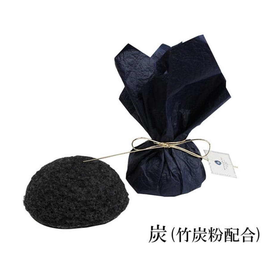 弱アルカリ性の群馬県産こんにゃく100%でできたスポンジに、汚れを吸着するといわれる竹炭を配合。