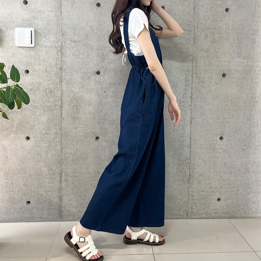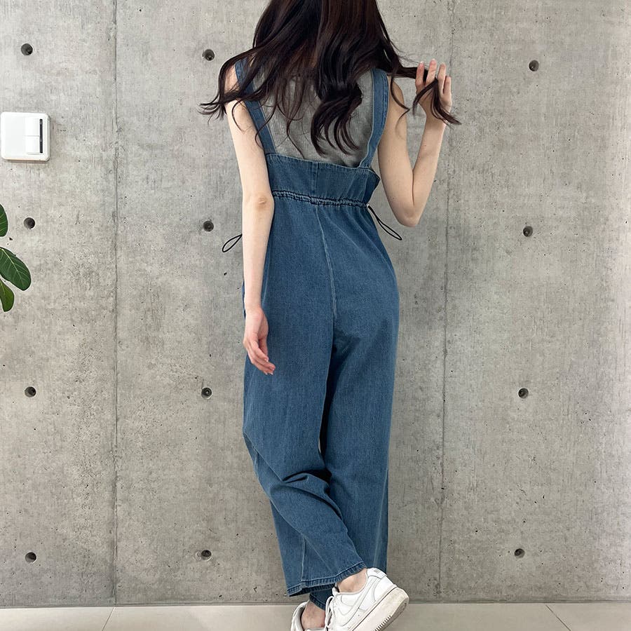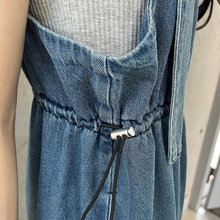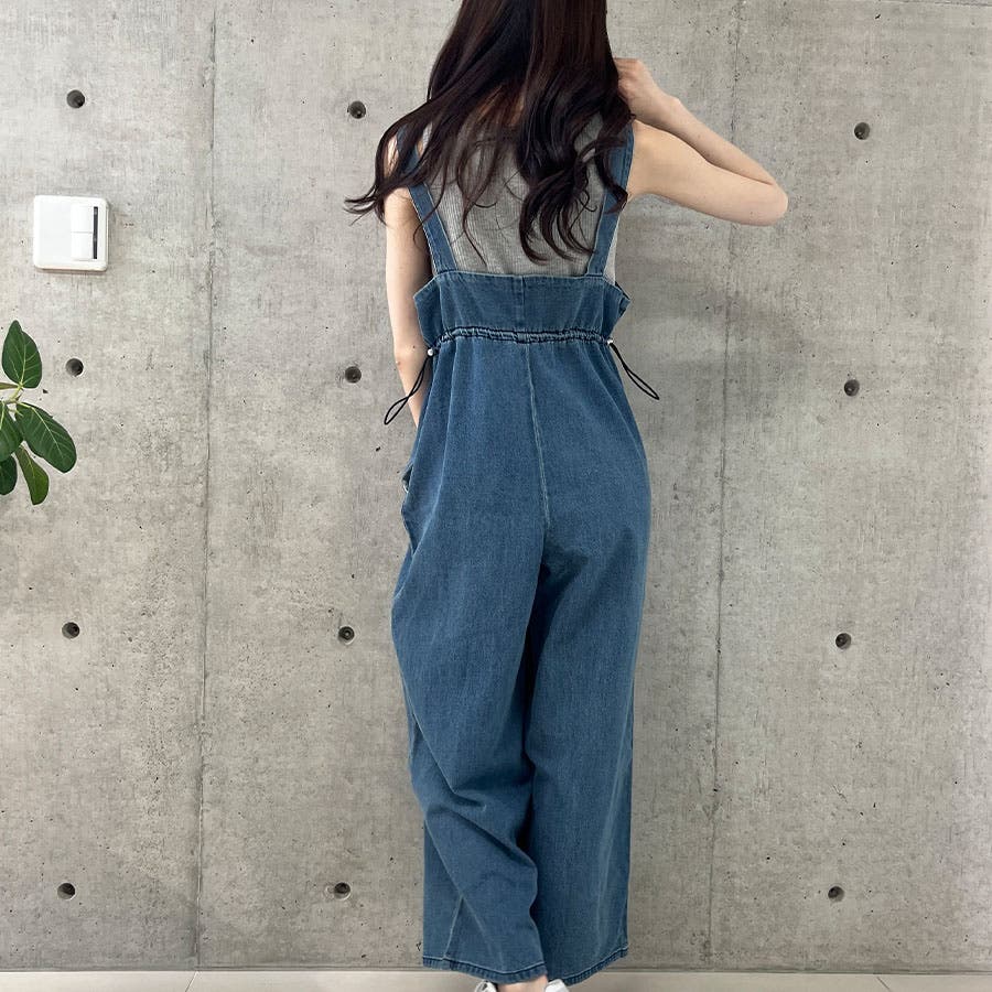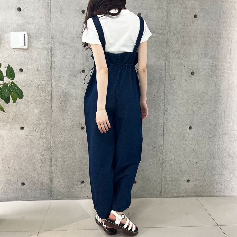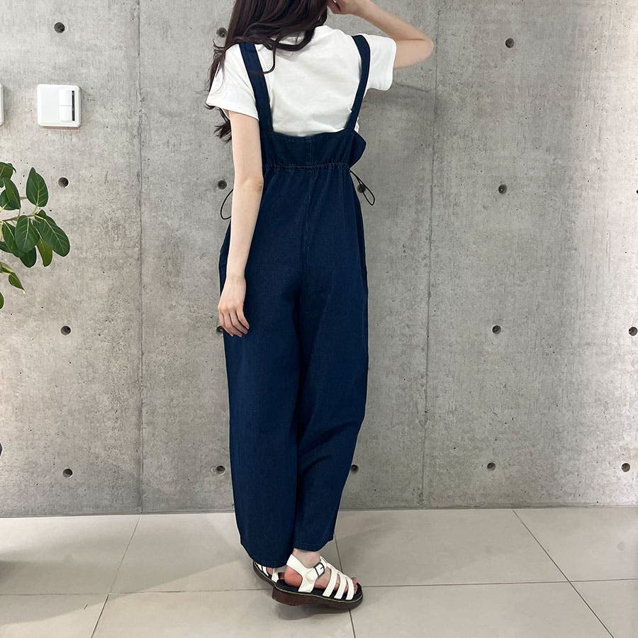 ライトオンデニムウエストドロストオールインワン