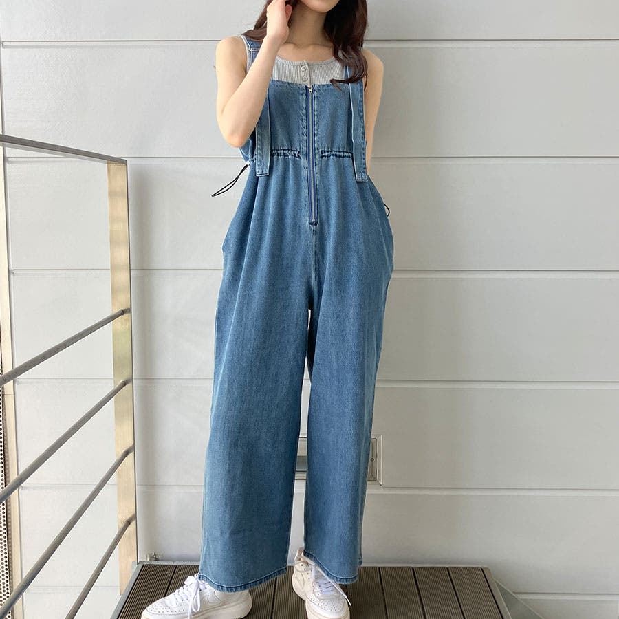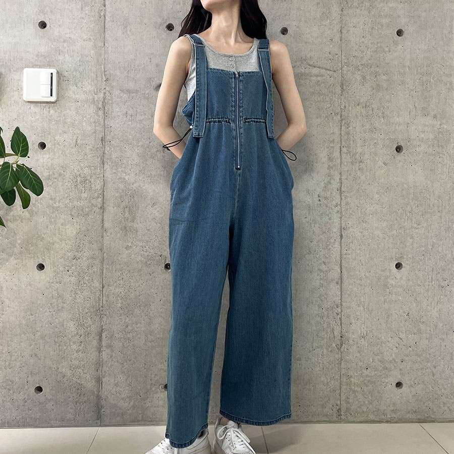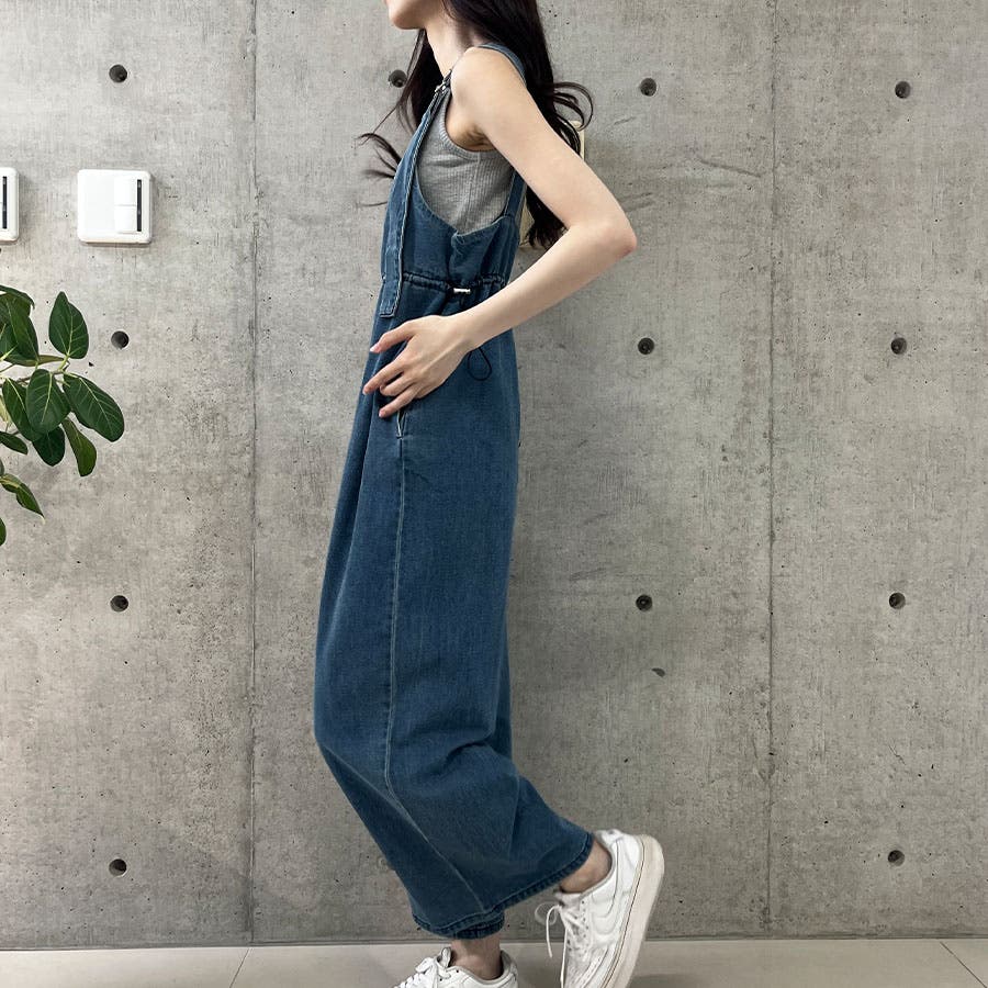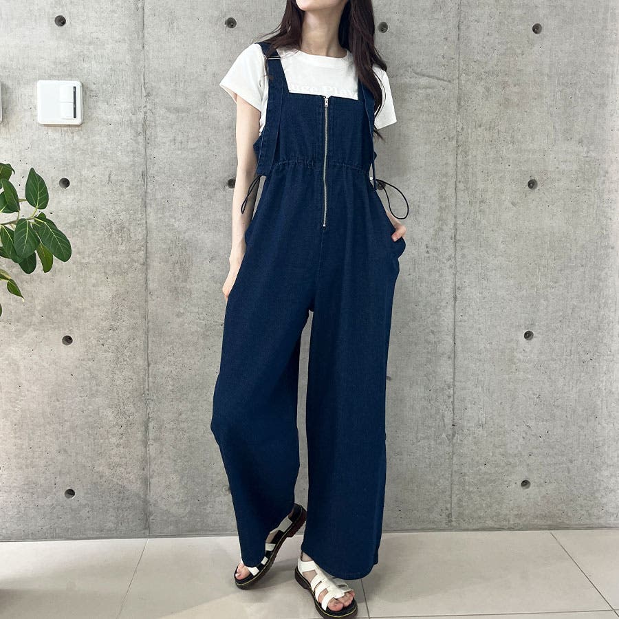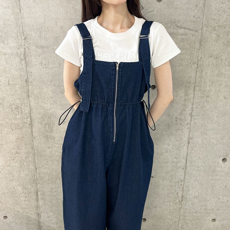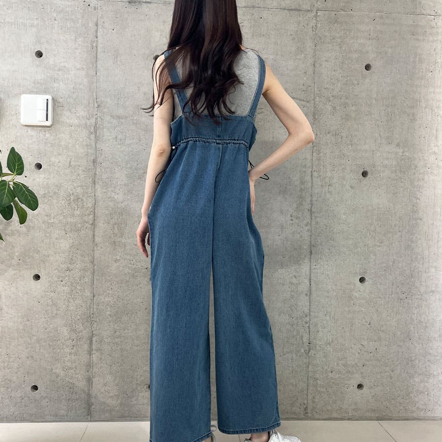 ライトオンデニムウエストドロストオールインワン
