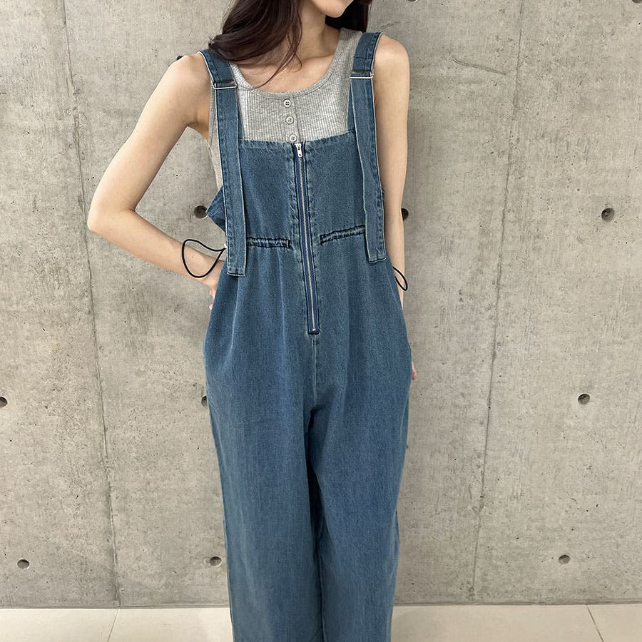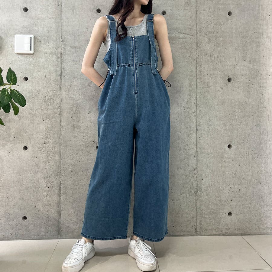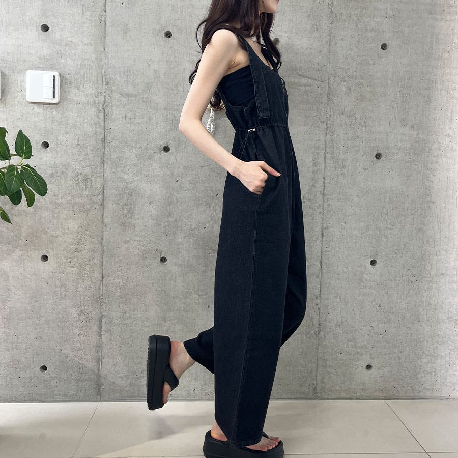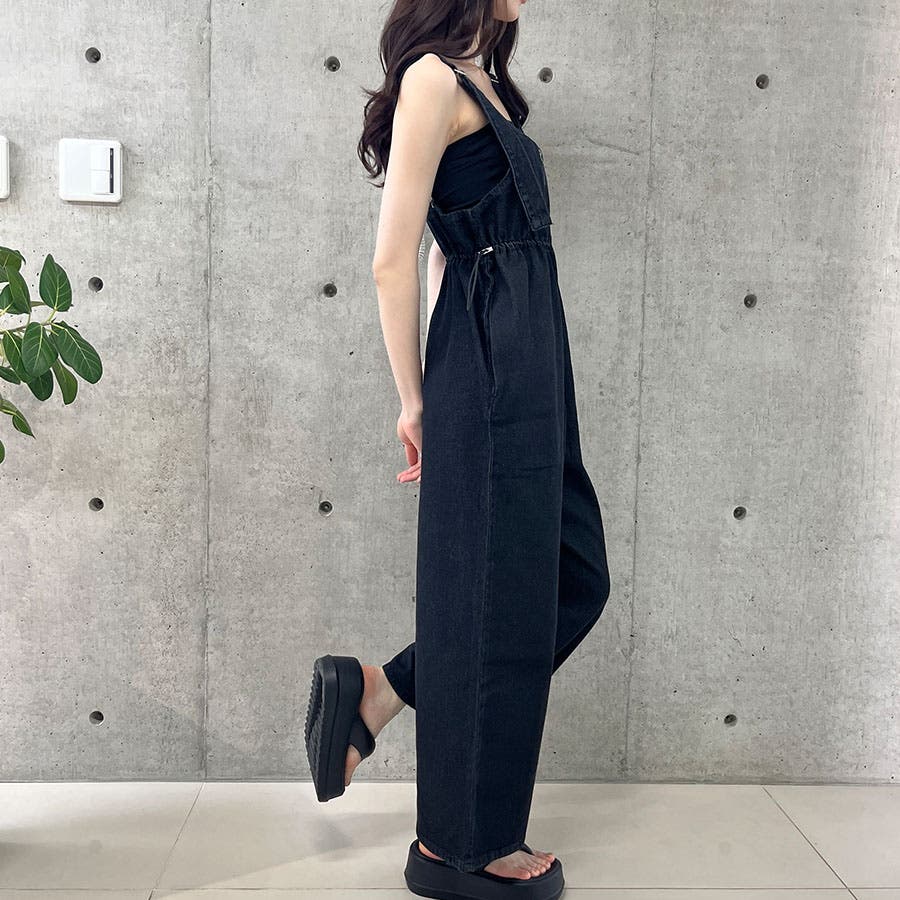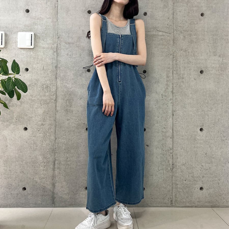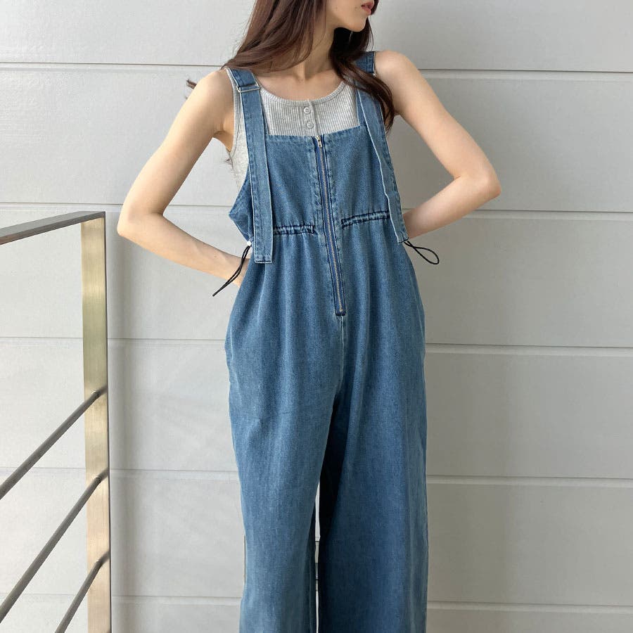 ライトオンデニムウエストドロストオールインワン