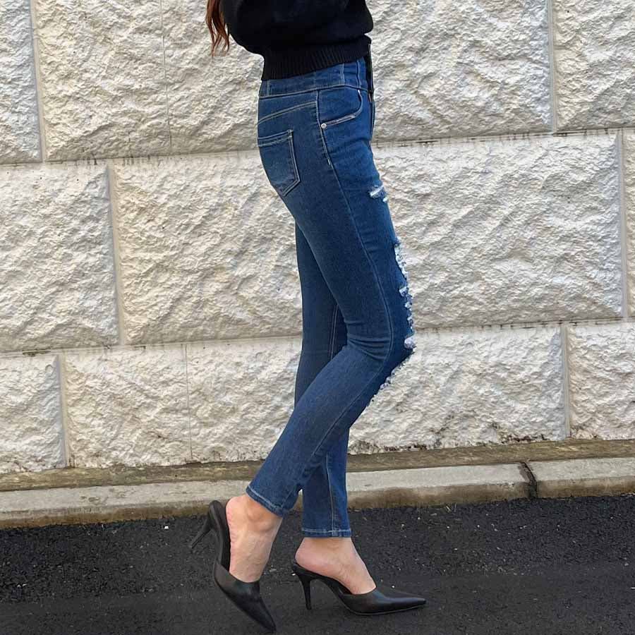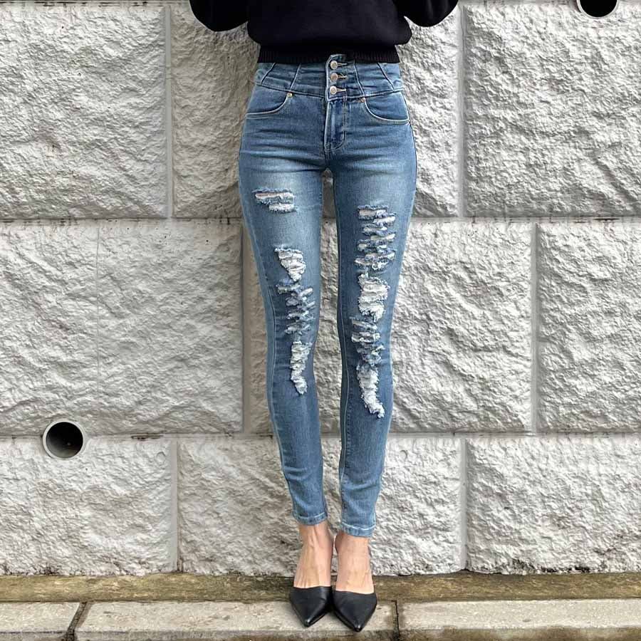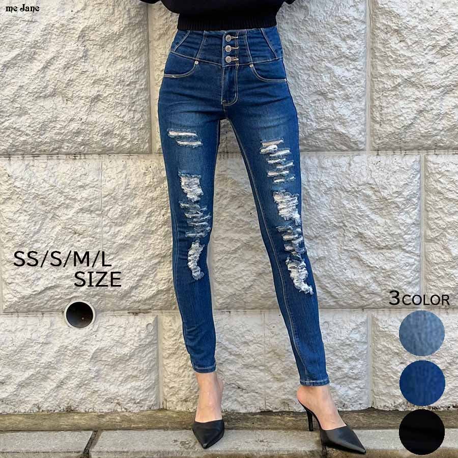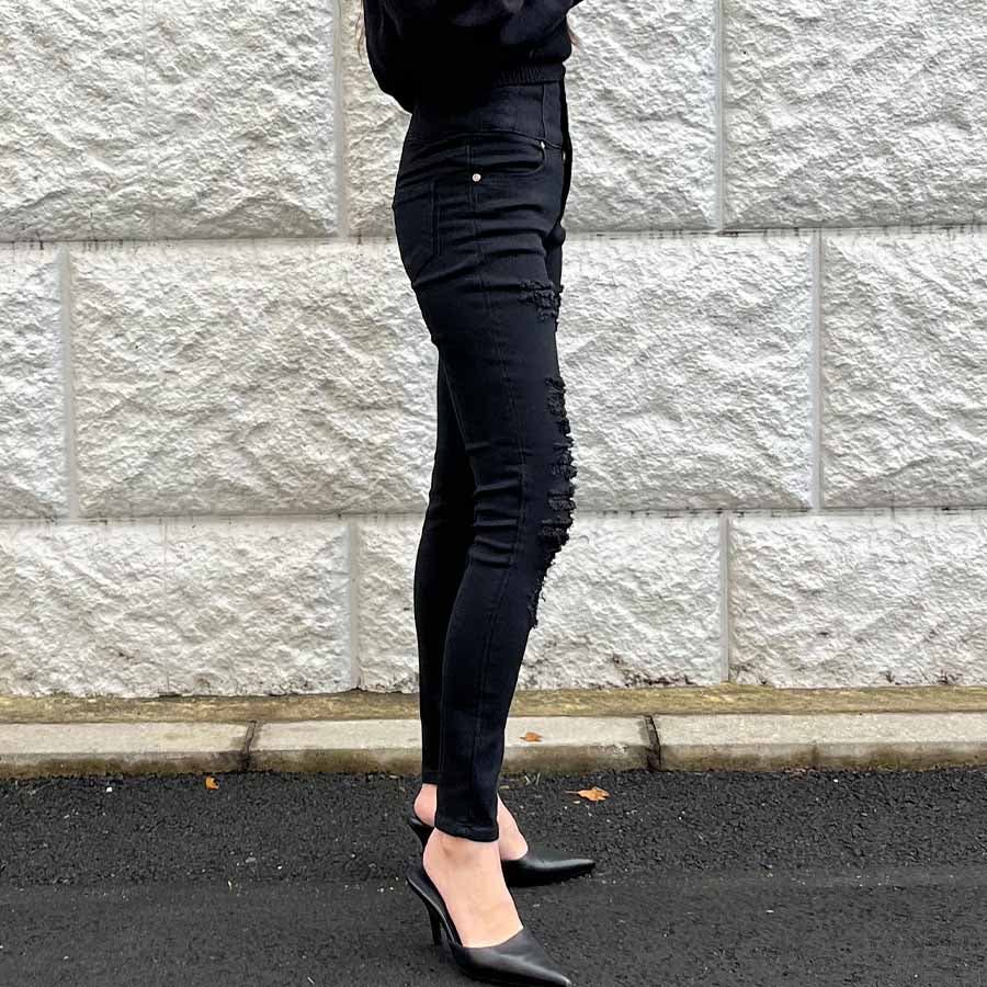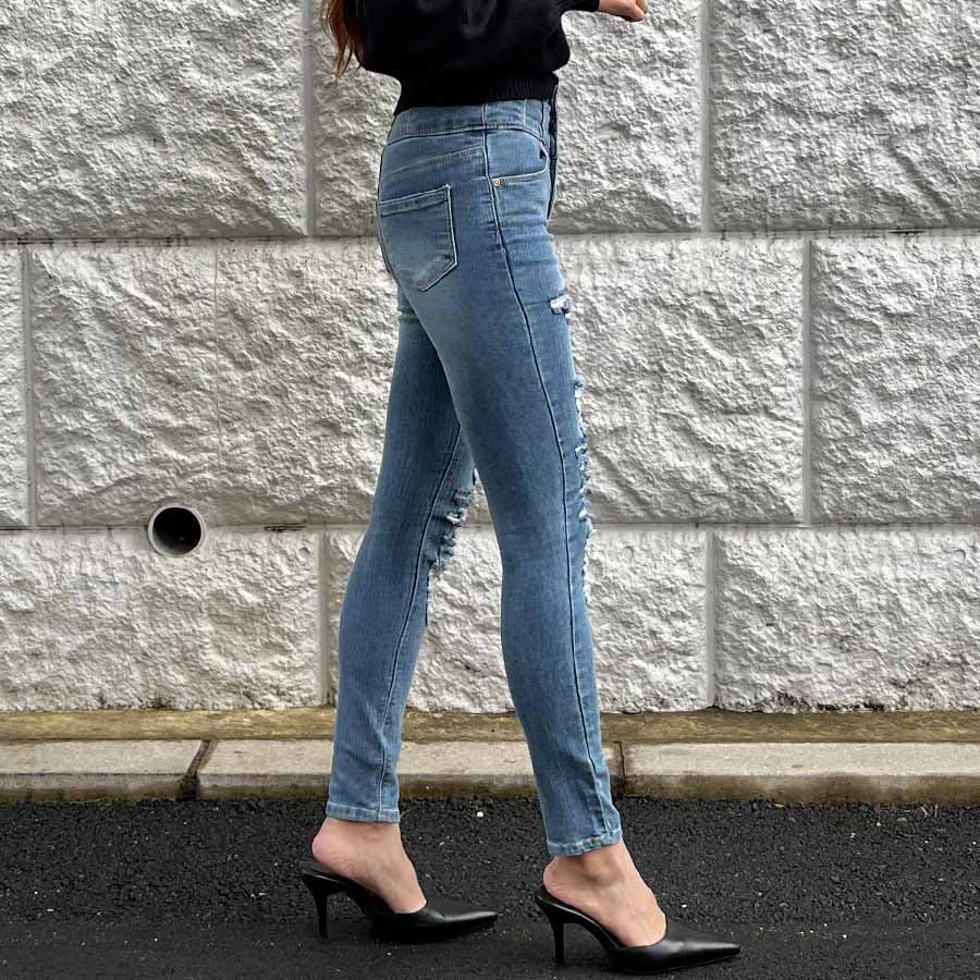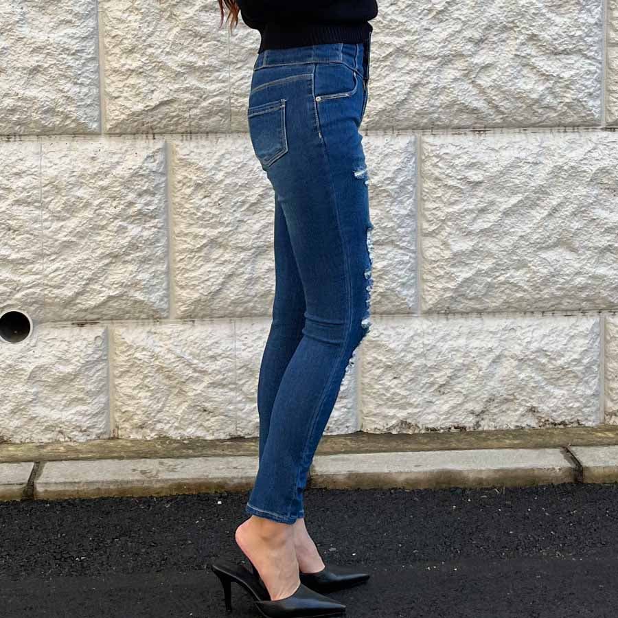 存在感あるダメージ加工がデザインポイントのハイウエストストレッチデニムスキニー!!