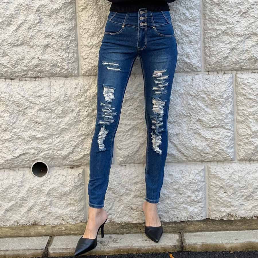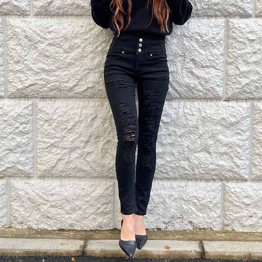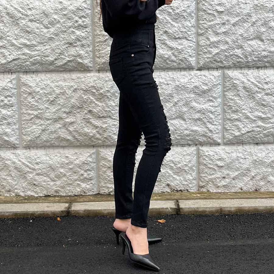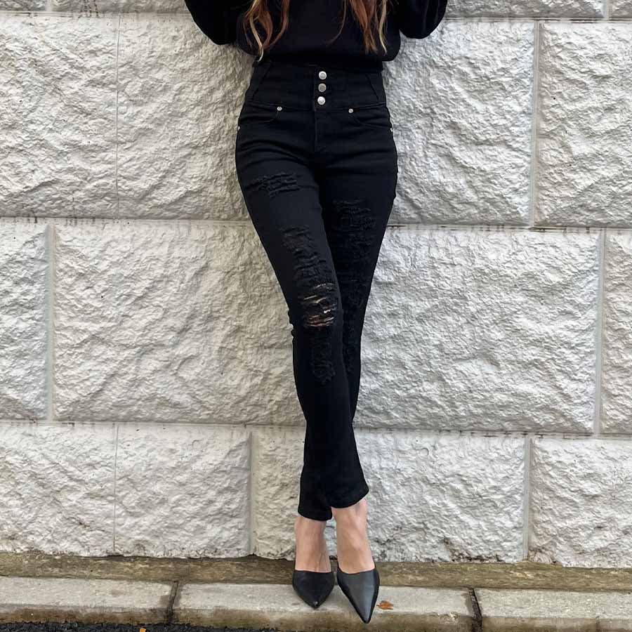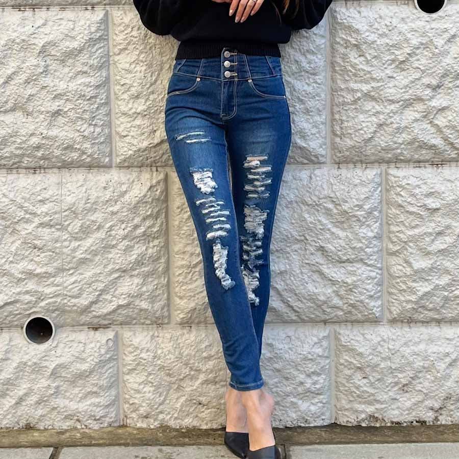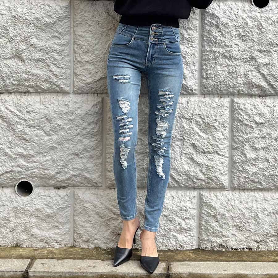 存在感あるダメージ加工がデザインポイントのハイウエストストレッチデニムスキニー!!