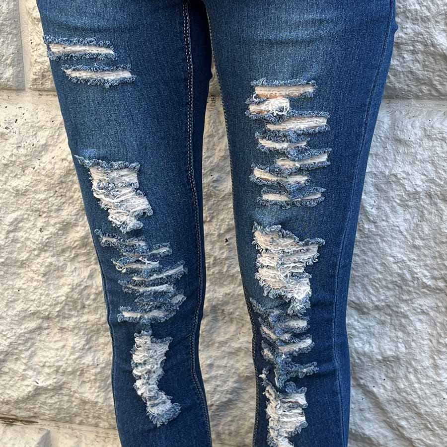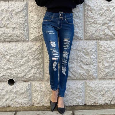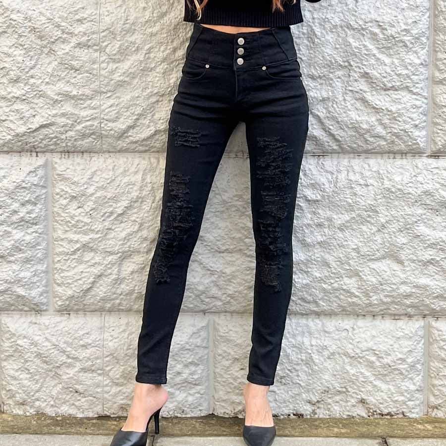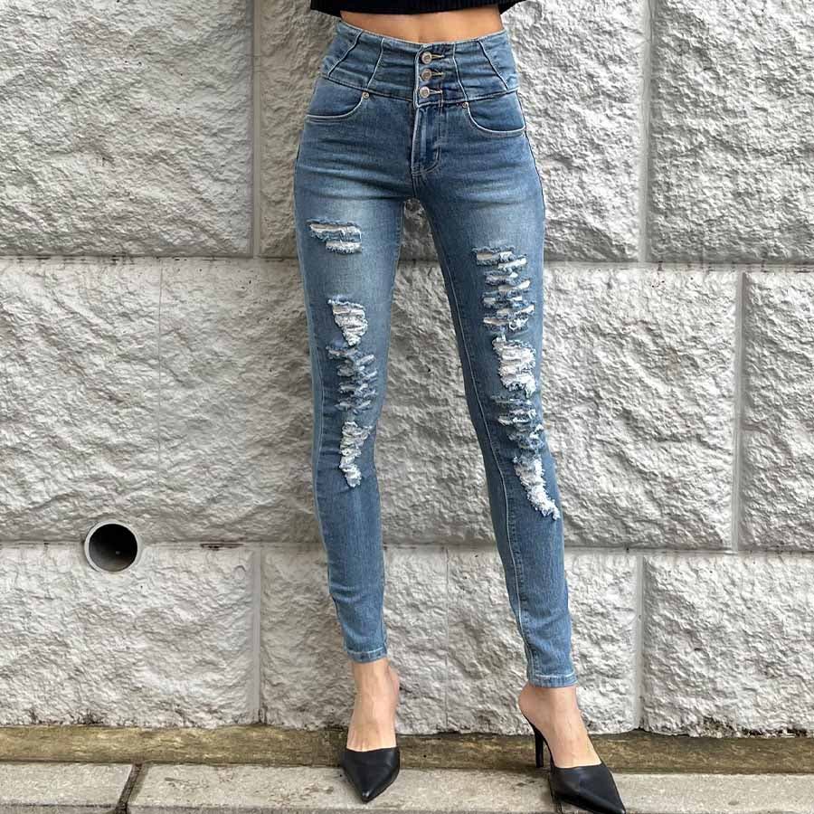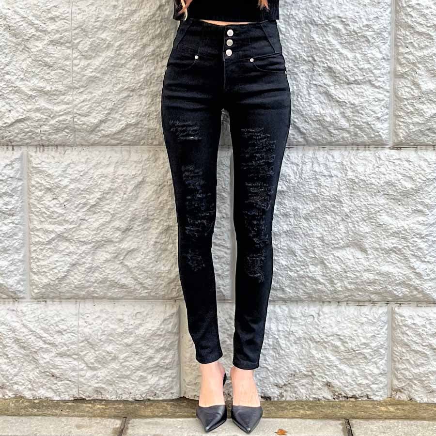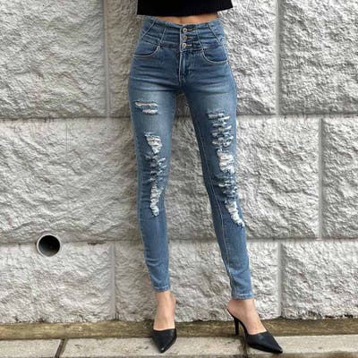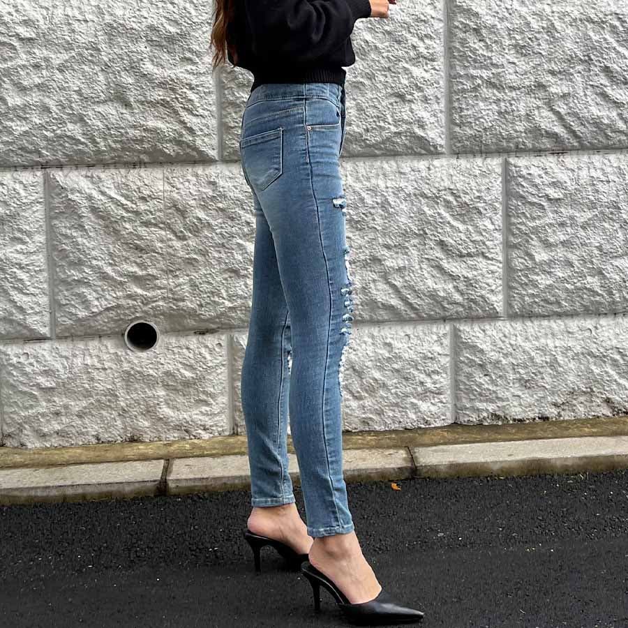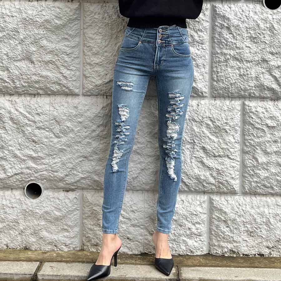 存在感あるダメージ加工がデザインポイントのハイウエストストレッチデニムスキニー!!