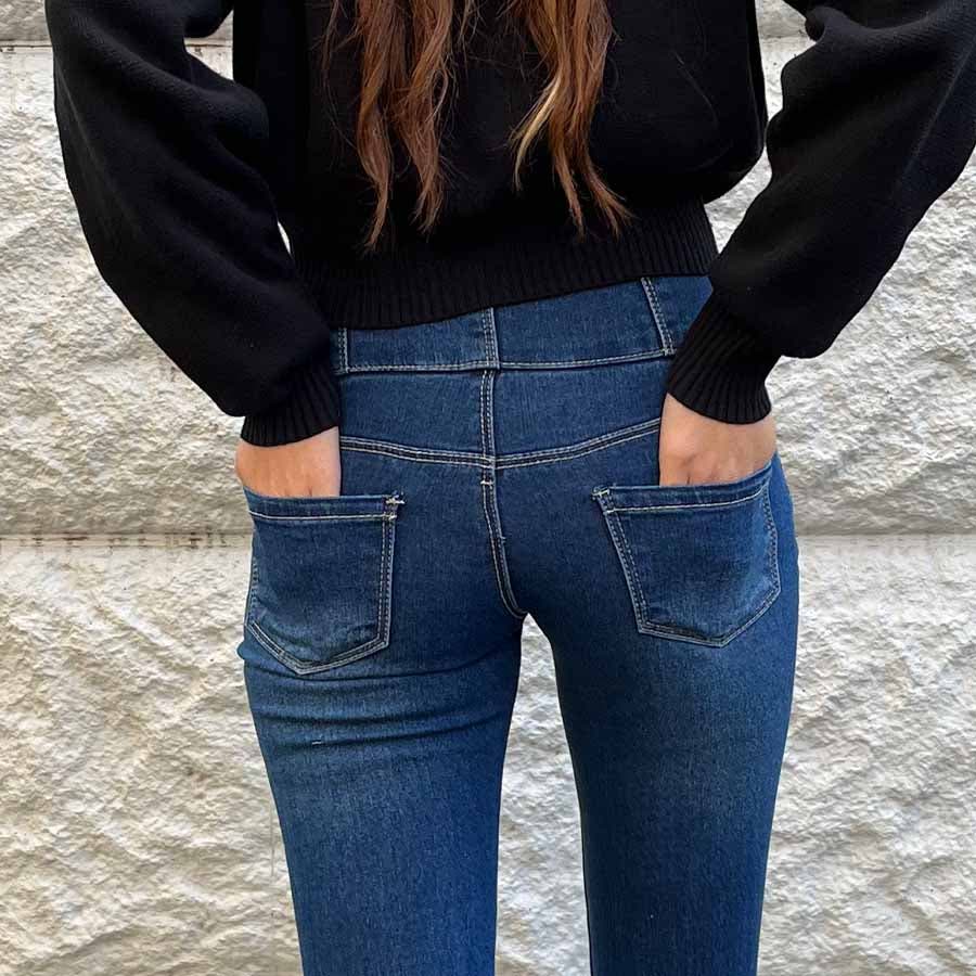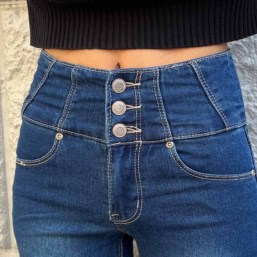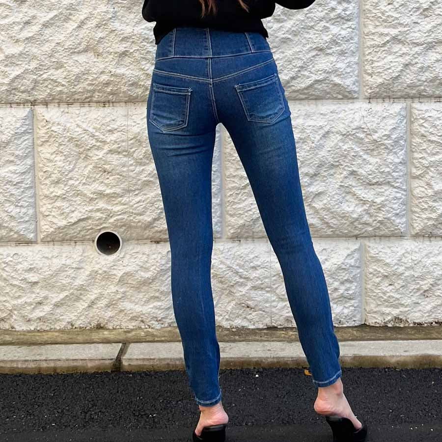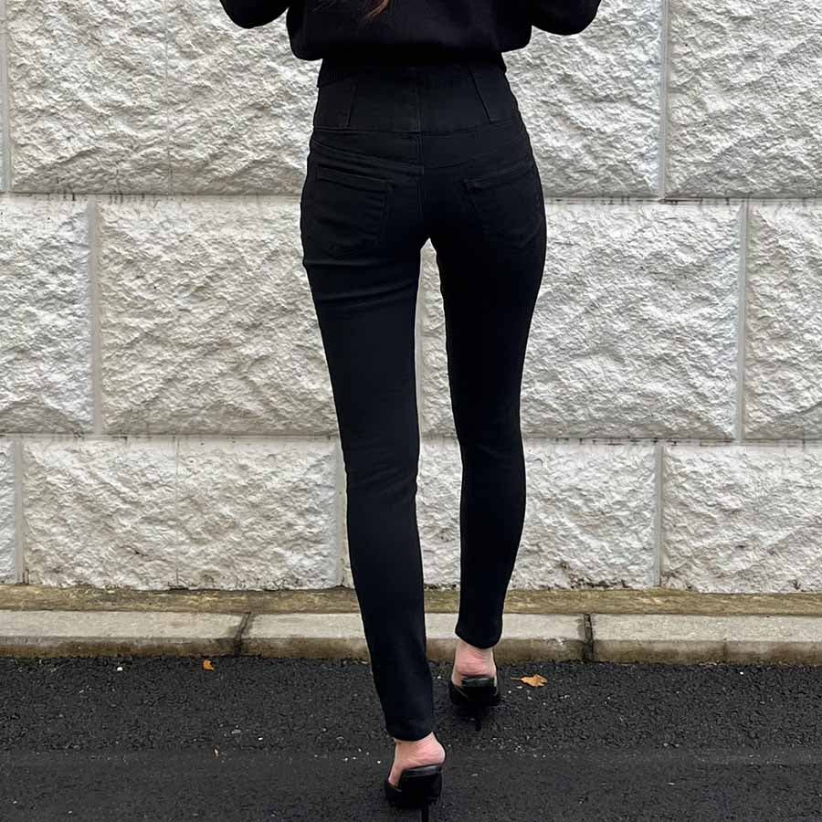 3ボタン仕様のハイウエストがキレイな美脚に魅せてくれます。