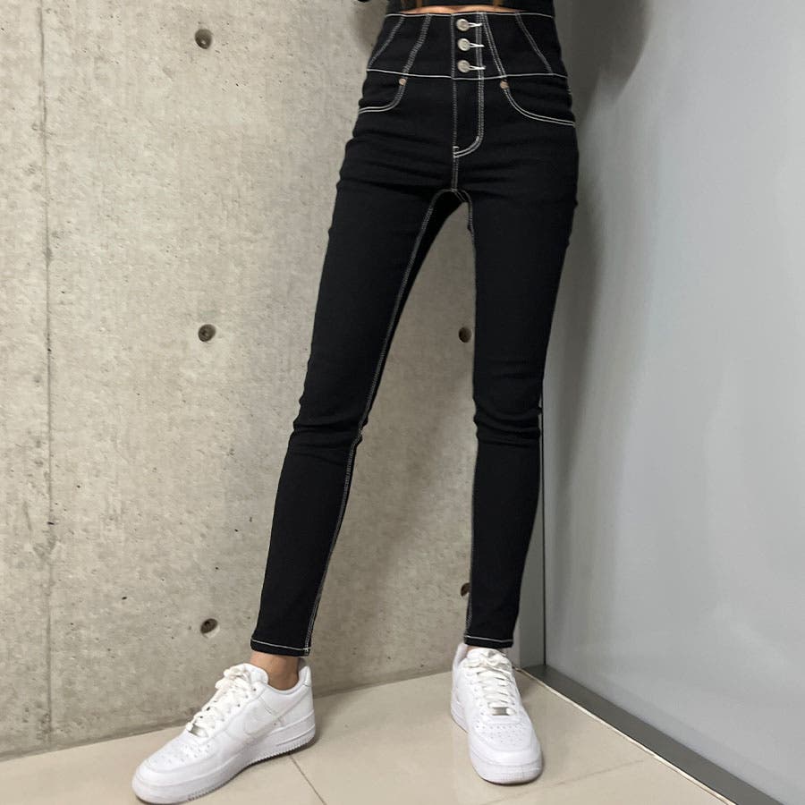 ☆新作/新着/大人気/人気/SS/春/夏/秋/冬/レディース/オールシーズン/定番/ハイウエストパンツ/ハイウエストスキニー/ボトムス/ボトム/ハイウエスト/スキニーパンツ/配色ステッチスキニー/ストレッチスキニー/ストレッチパンツ/黒スキニーパンツ/伸縮性あり/履きやすい/動きやすい/美脚/美尻/脚長/スタイルアップ/配色ステッチ/黒パンツ/10代/20代/30代/40代/50代/プチプラ/ギャル/カジュアル/ストリート/スポーティー/韓国/きれいめ/大人/セクシー/シンプル/ベーシック/無地/着回し抜群/万能アイテム/春服/夏服/秋服/冬服☆