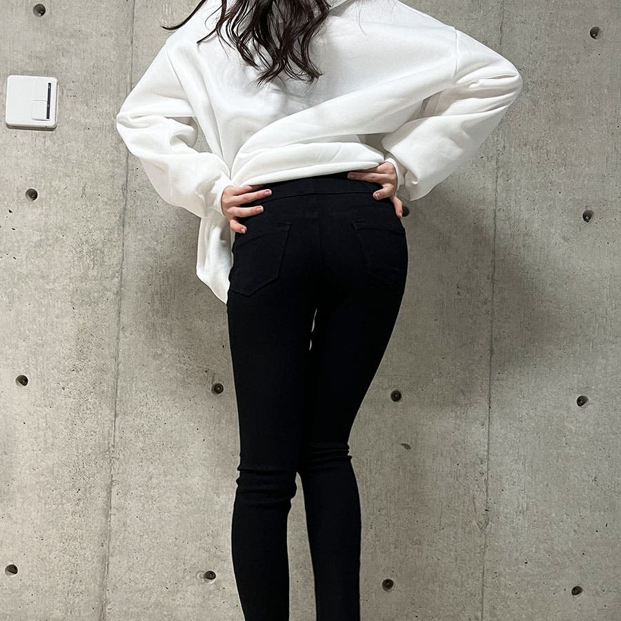 ストレッチがすごく効いていて、白のステッチがとっても可愛くて買って良かったです。ワイドパンツが流行りですが、スッキリと着たい時にはこちらのスキニー履きたいと思います。