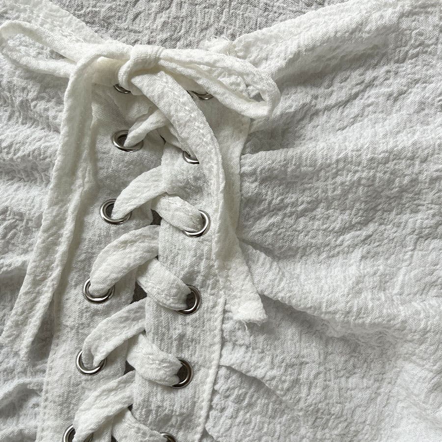 レースアップがポイントのウエストシャーリングブラウスが登場!