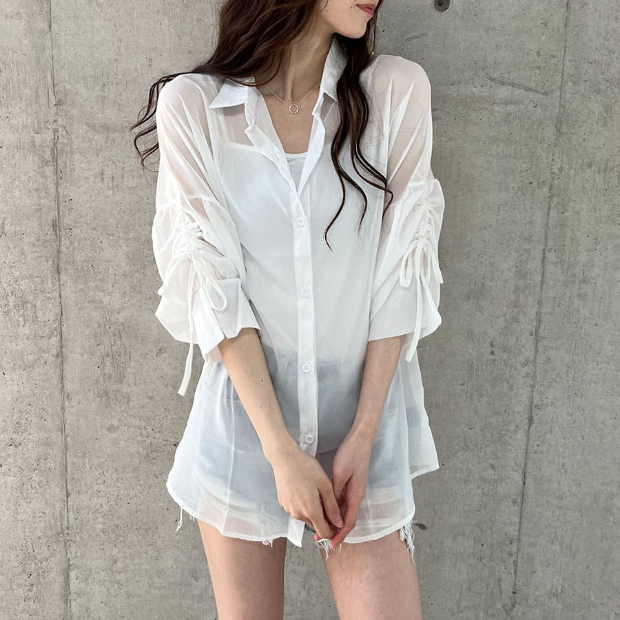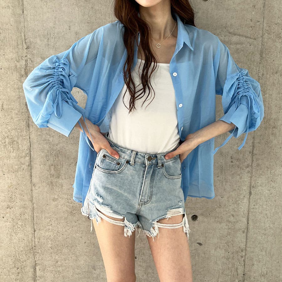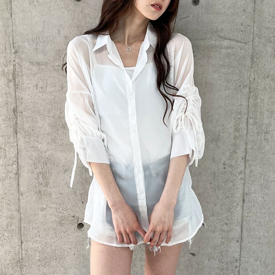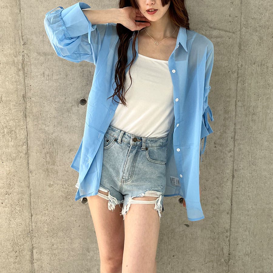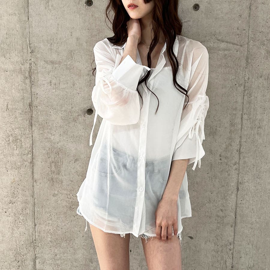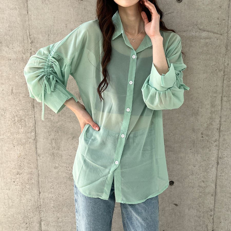 シンプルでコーディネートに取り入れやすい透け感が魅力のシアーシャツ!