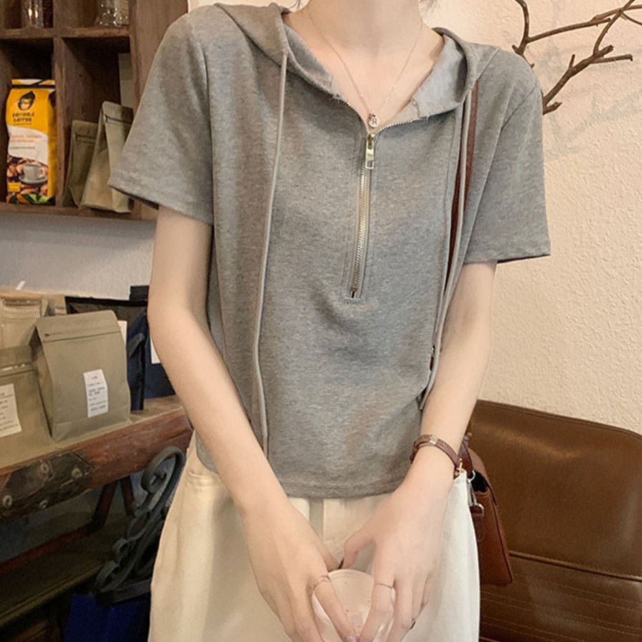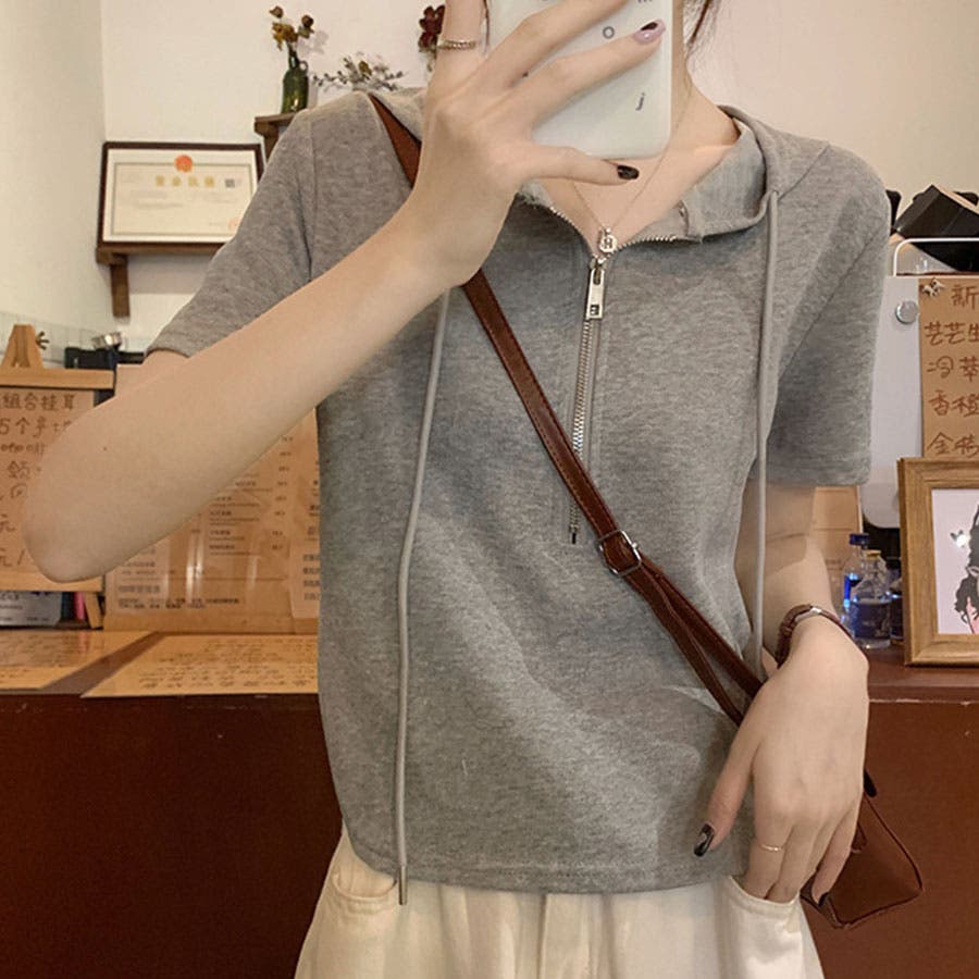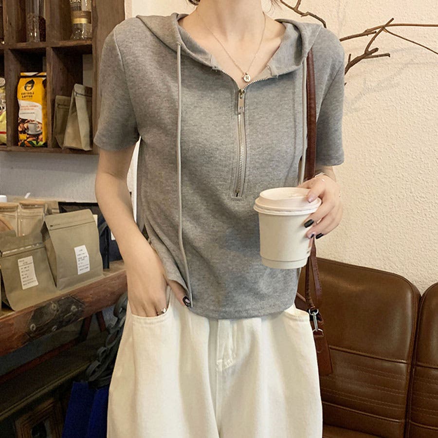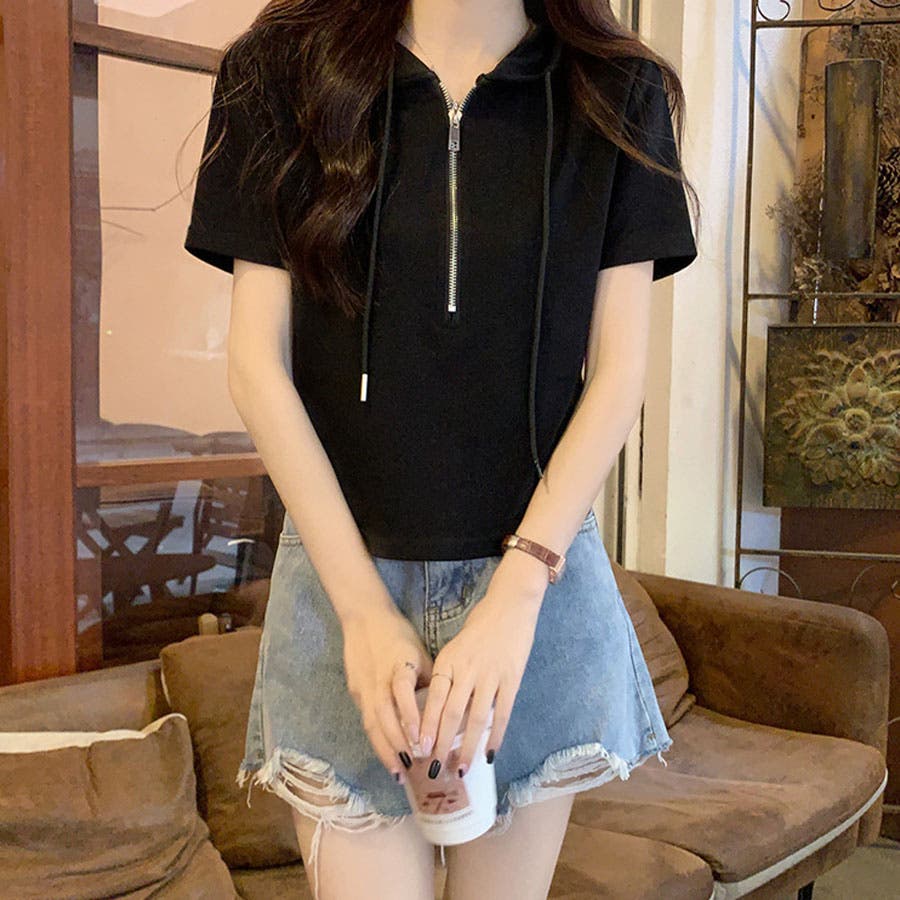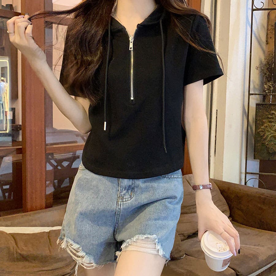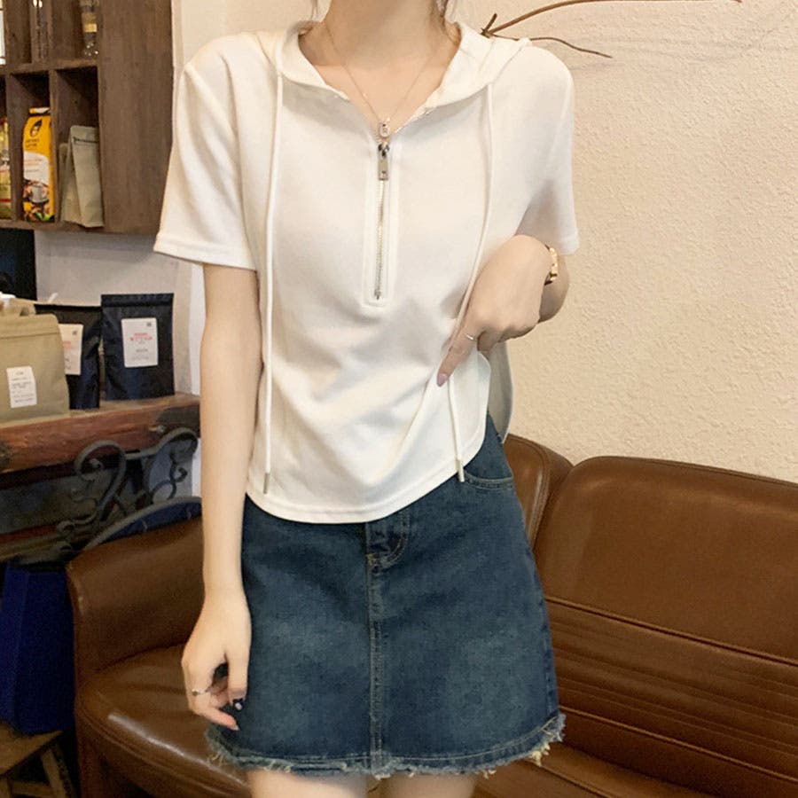 ☆夏コーデ/春夏/春夏カジュアル/新作/新着/ギャル/プチプラ/セクシー/人気/レディース/シンプル/トップス/ストリート/トレンド/カジュアル/韓国/韓国ファッション/10代/20代/30代/40代/50代/オーバーサイズ/大きいサイズ/ショート丈トップス/ハーフジップ/フェミニン/コットン素材/インナー/ジャケットイン☆