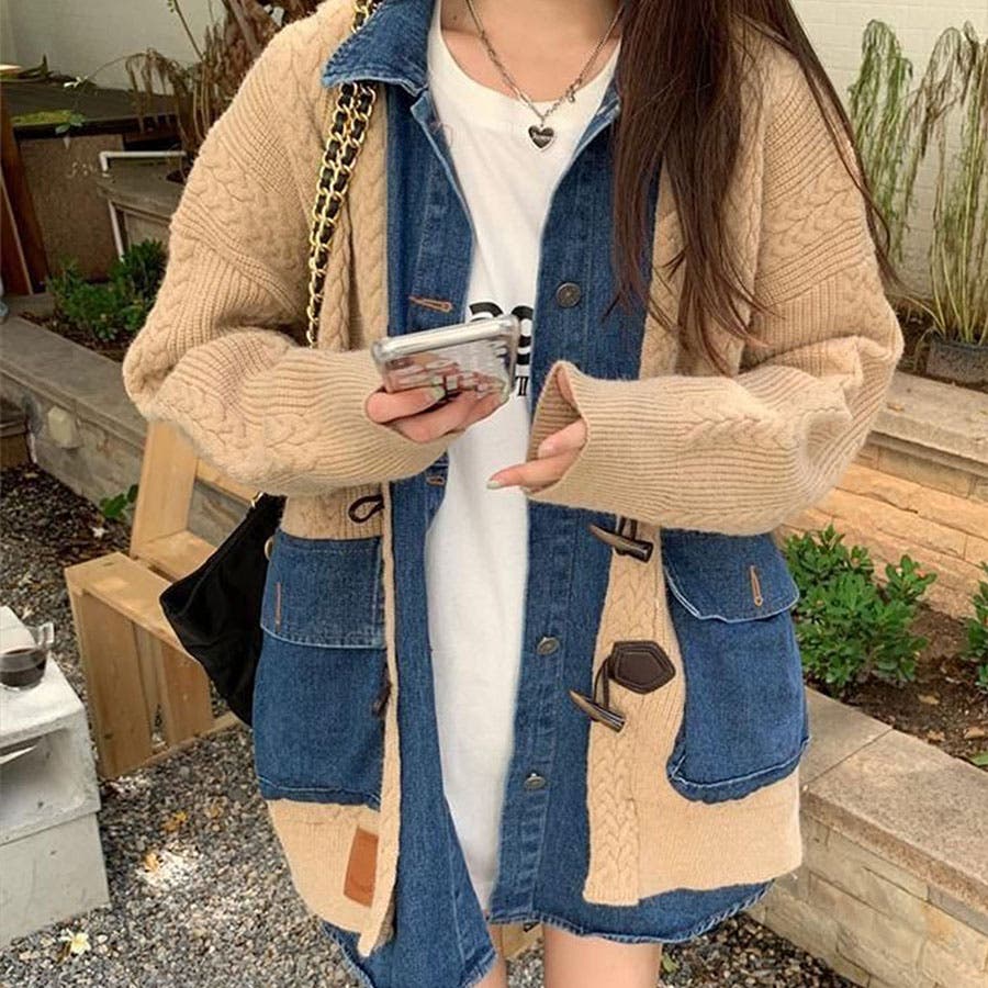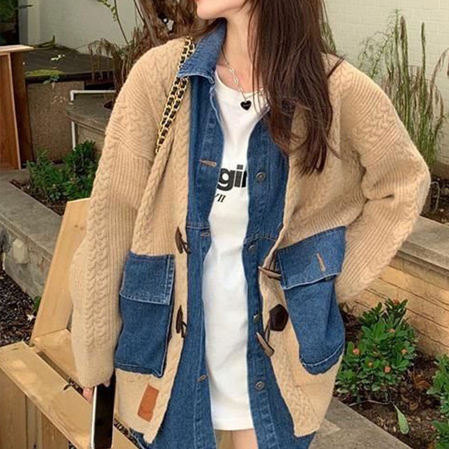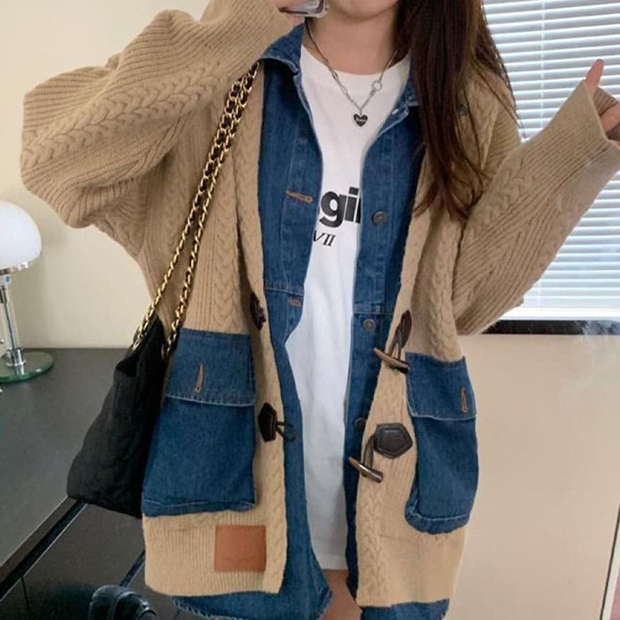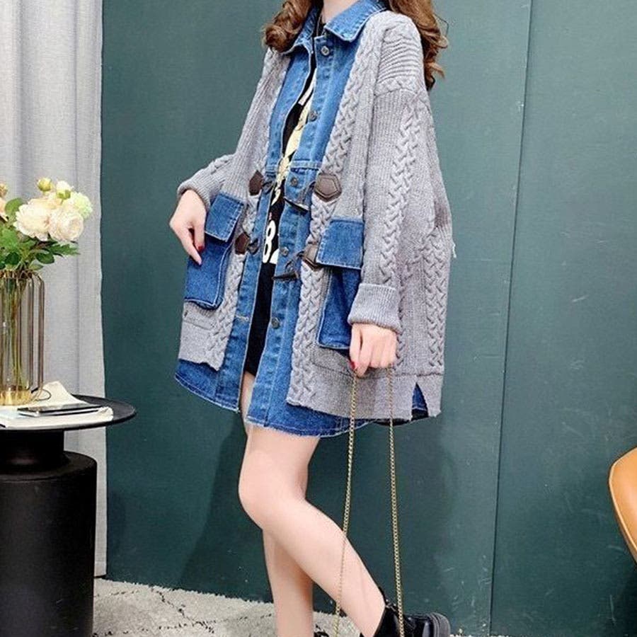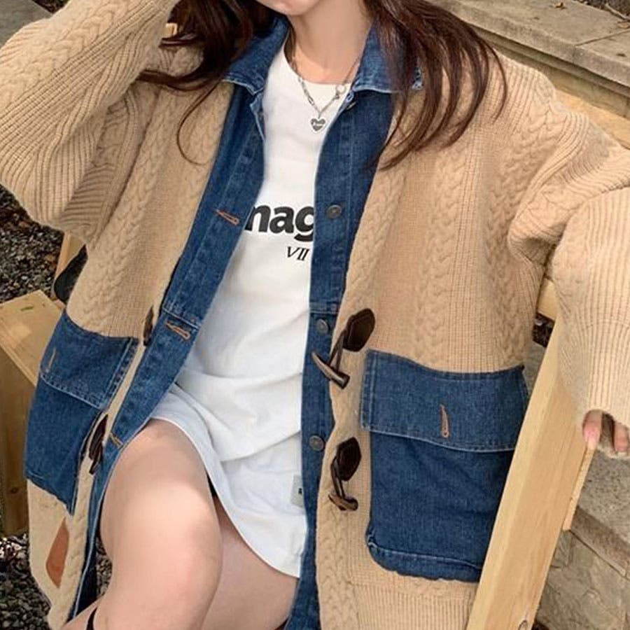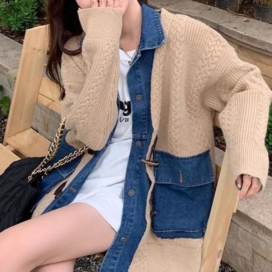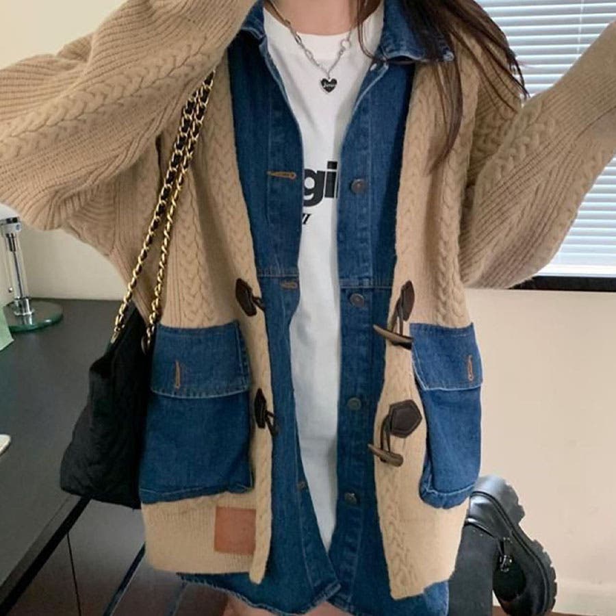 デニム×ニットの異素材切替が秋冬コーデにトレンドライクなカーディガン!!