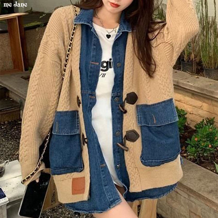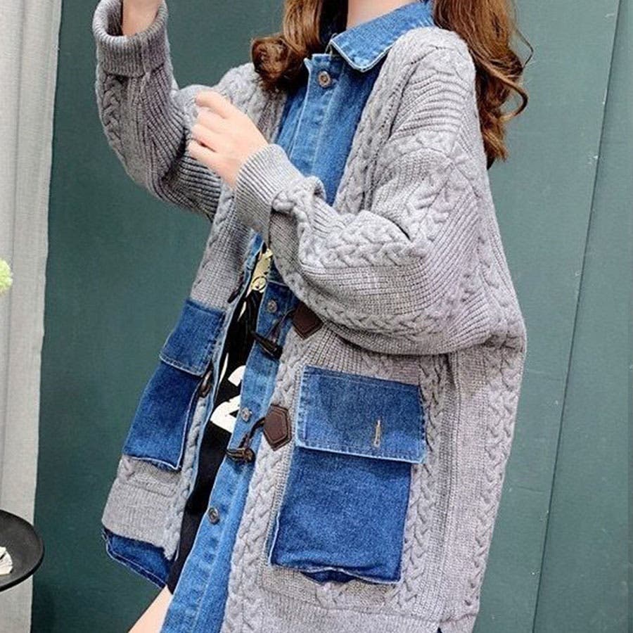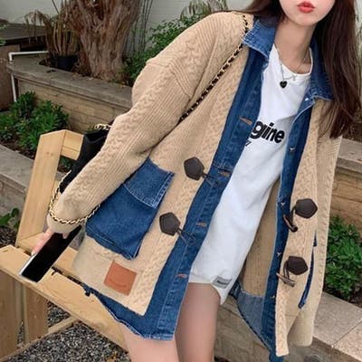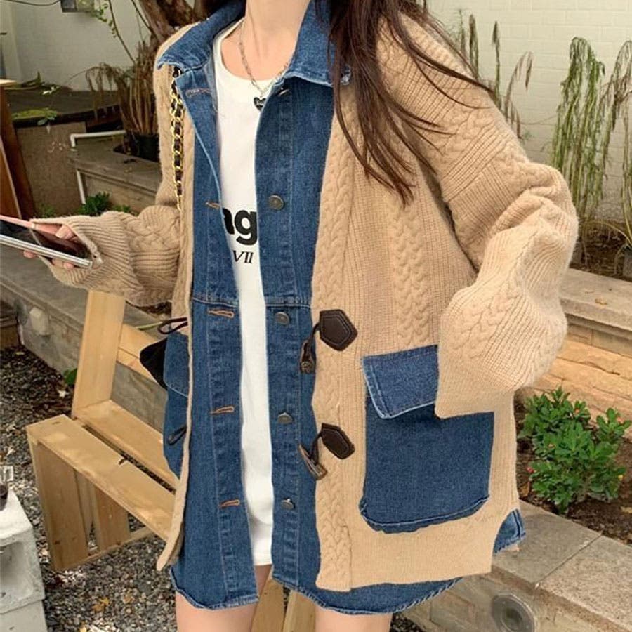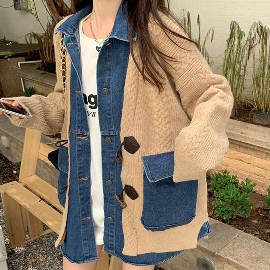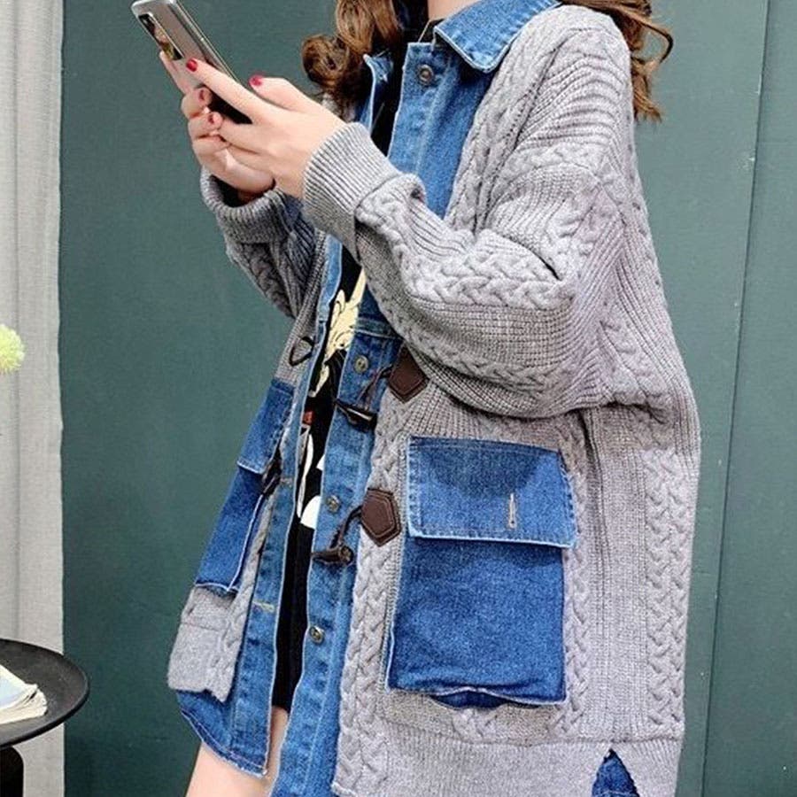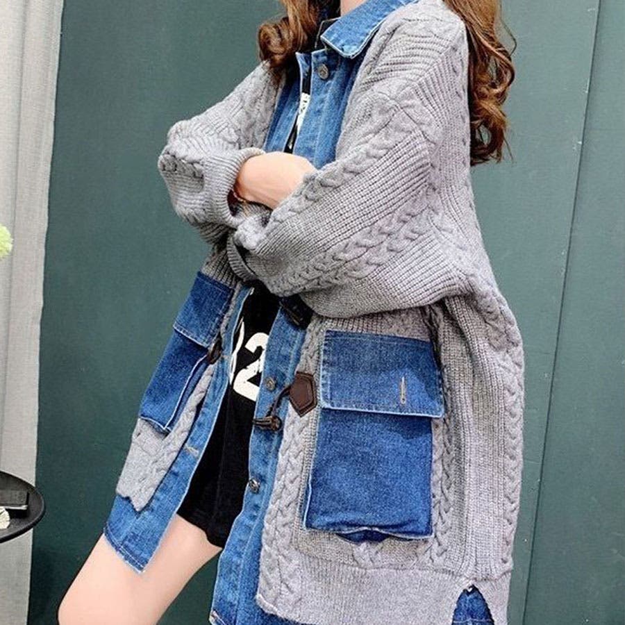 デニム×ニットの異素材切替が秋冬コーデにトレンドライクなカーディガン!!