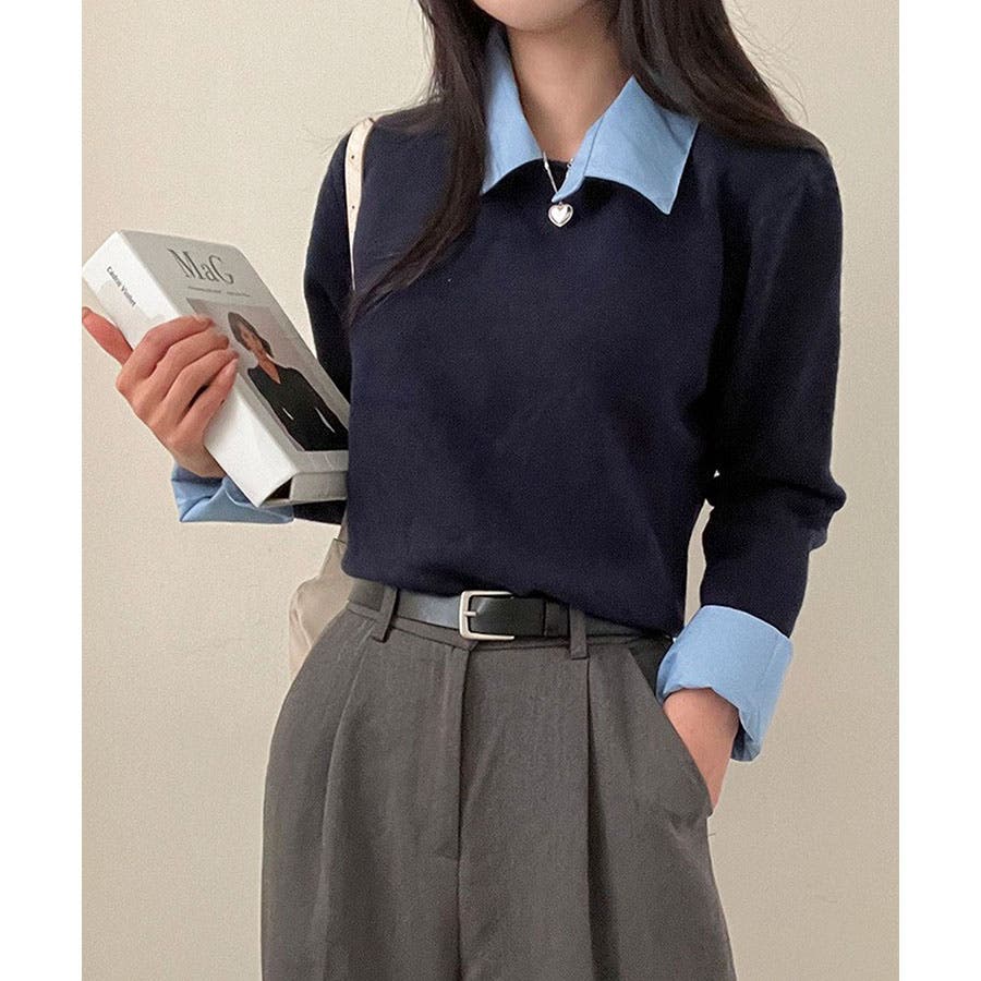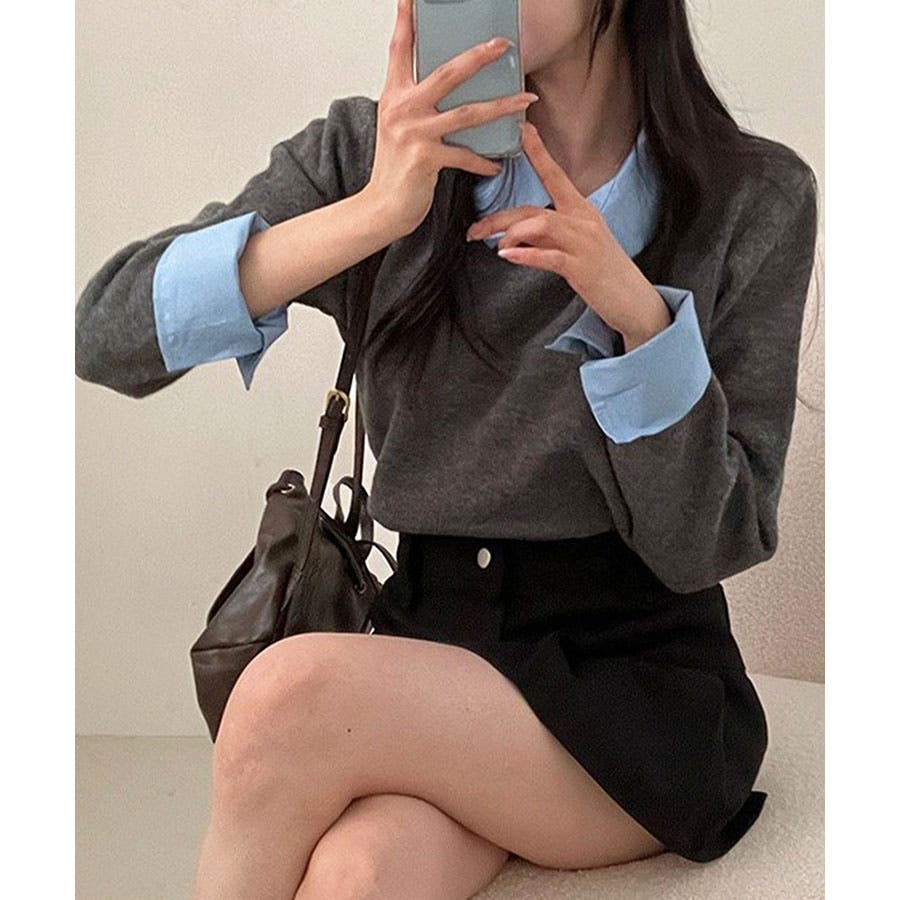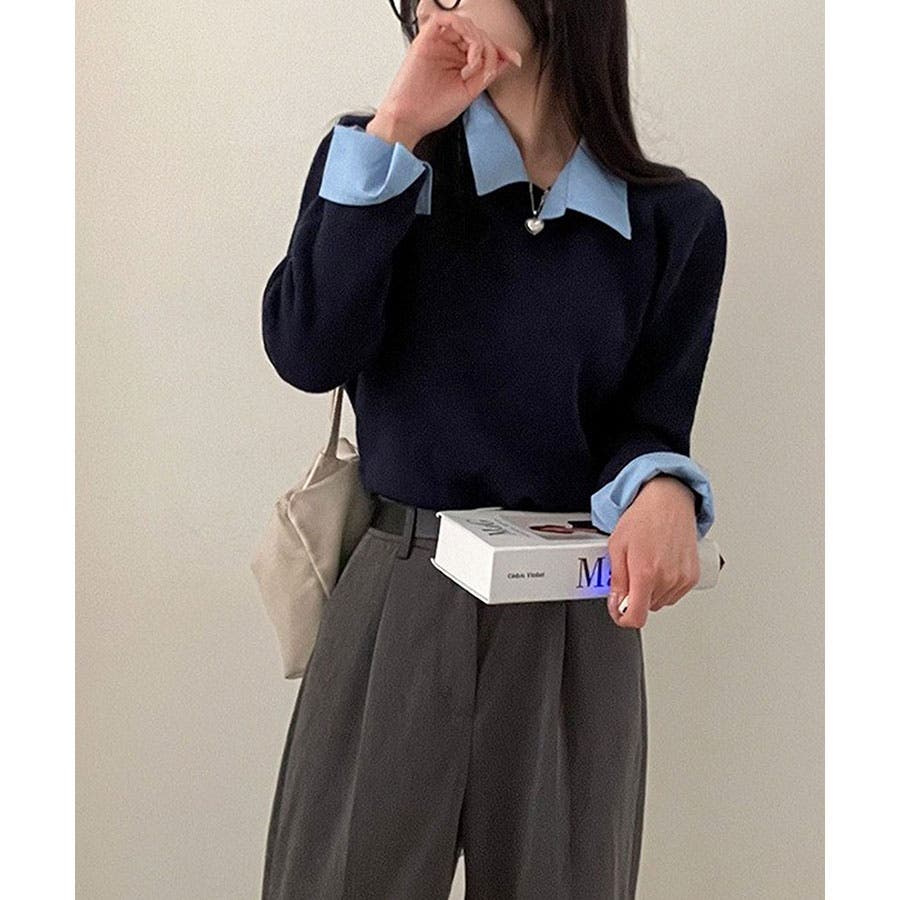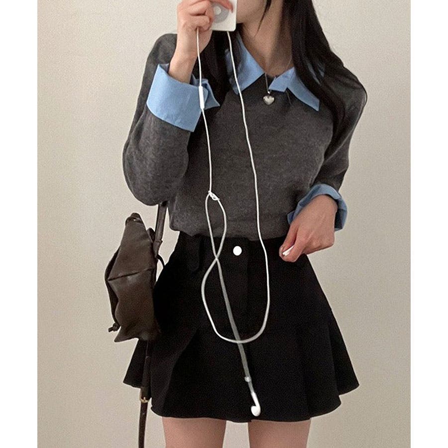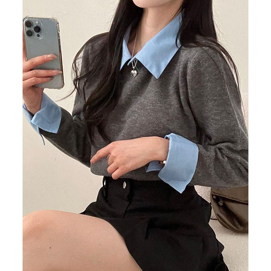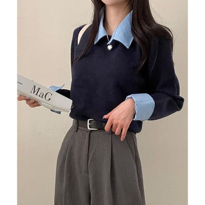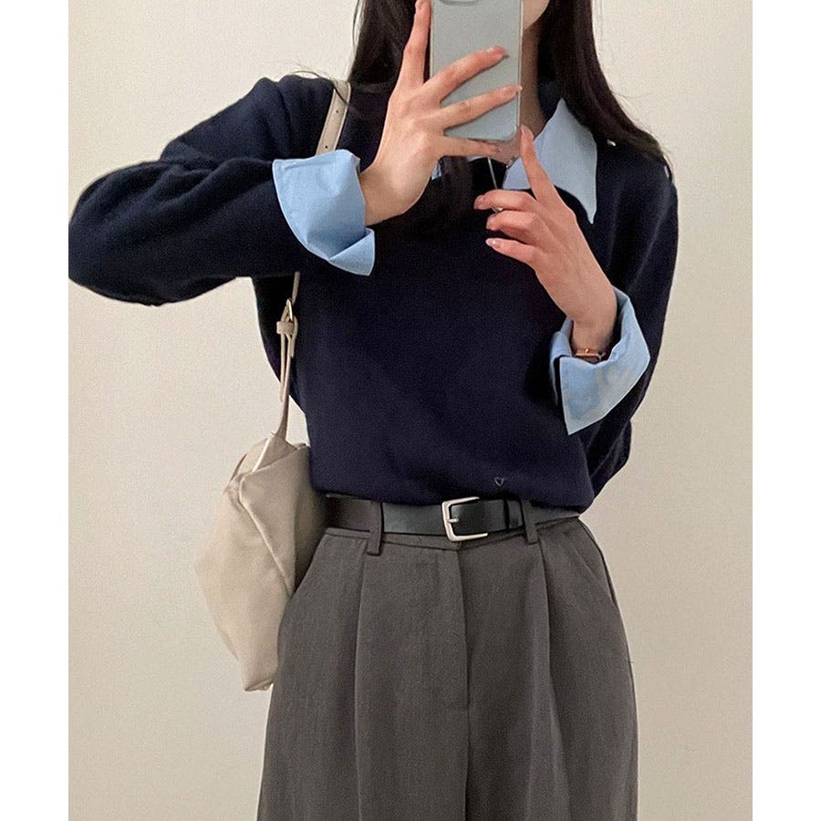 襟元と袖元にはシャツ風ディテールがあしらわれ、シャツを重ね着しているような立体感が演出されています☆