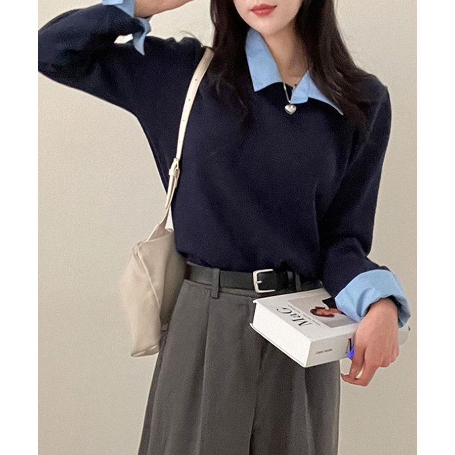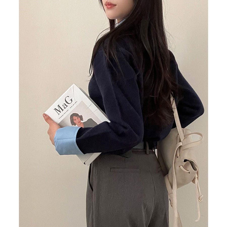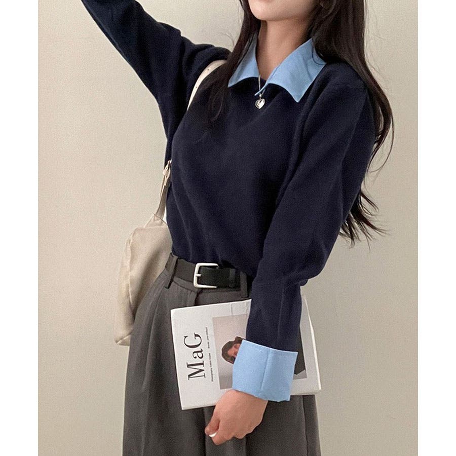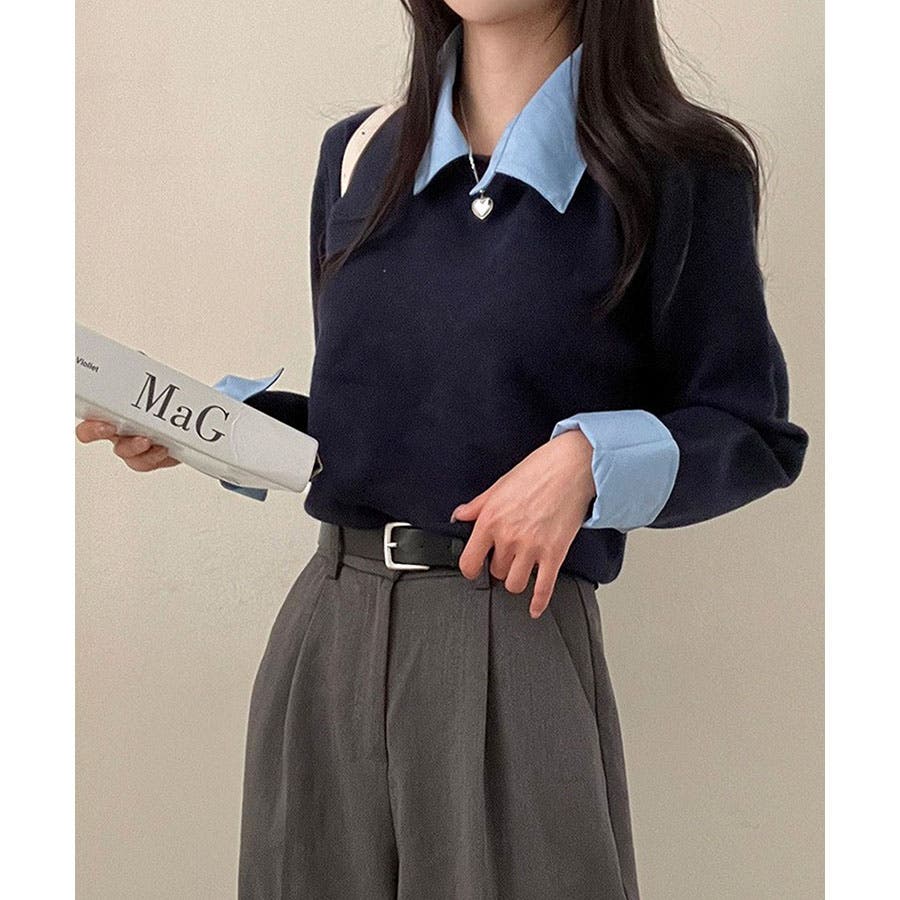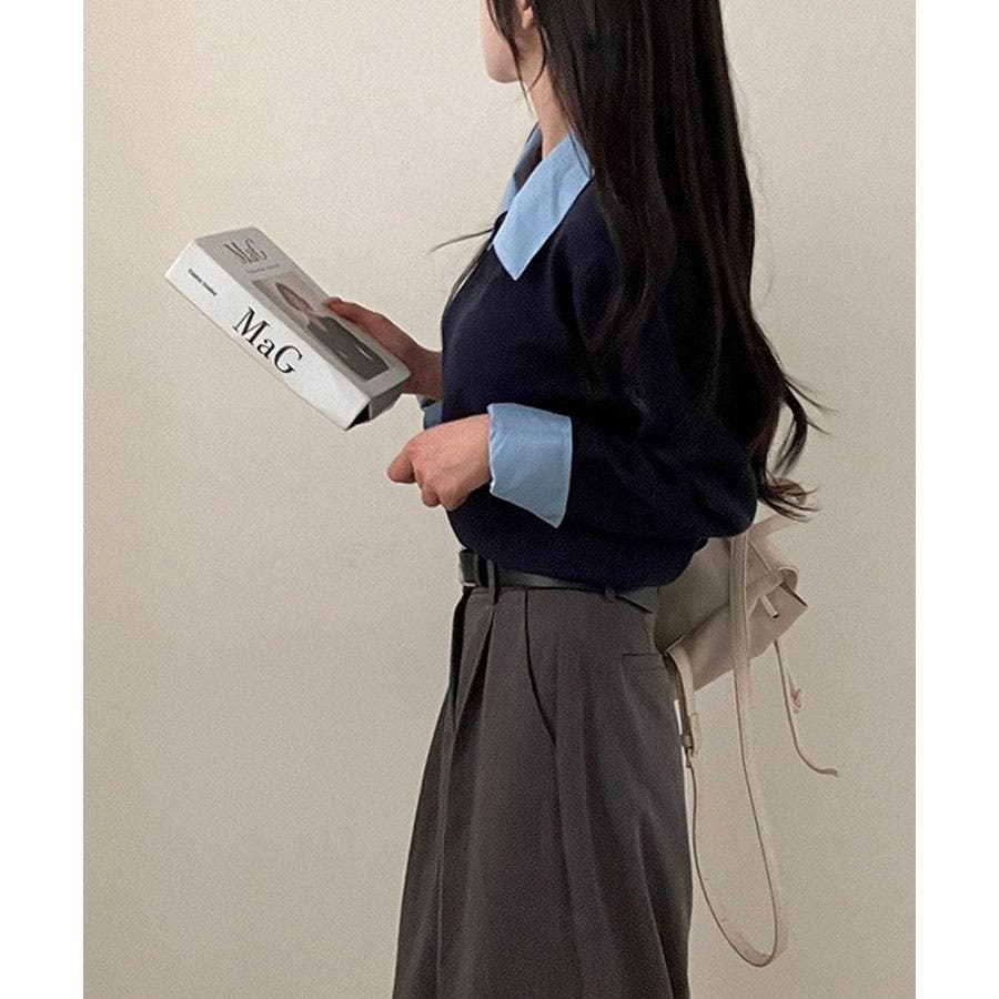 襟元と袖元にはシャツ風ディテールがあしらわれ、シャツを重ね着しているような立体感が演出されています☆