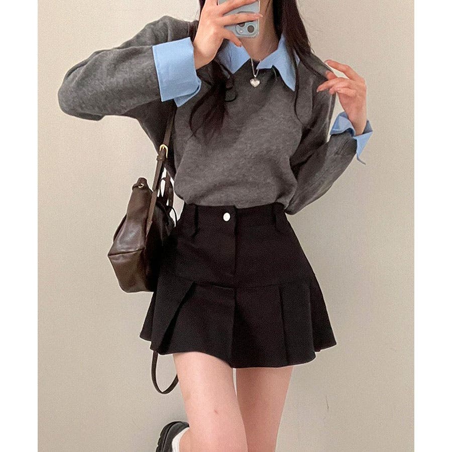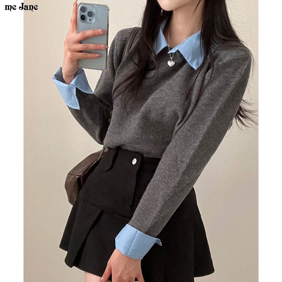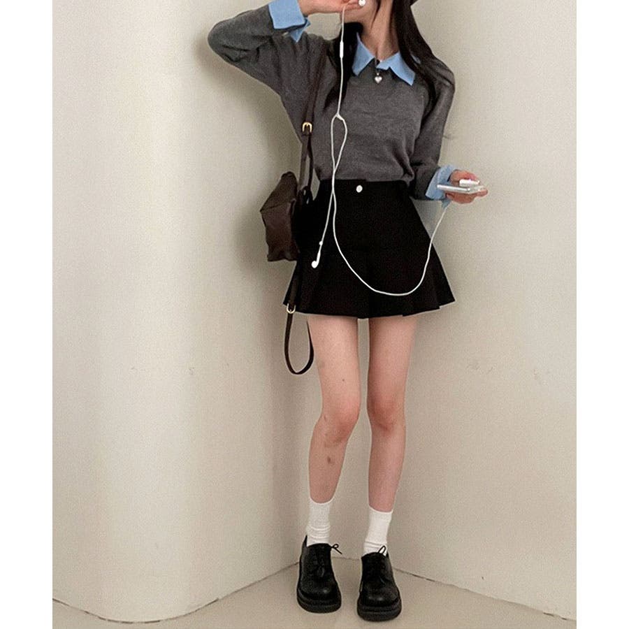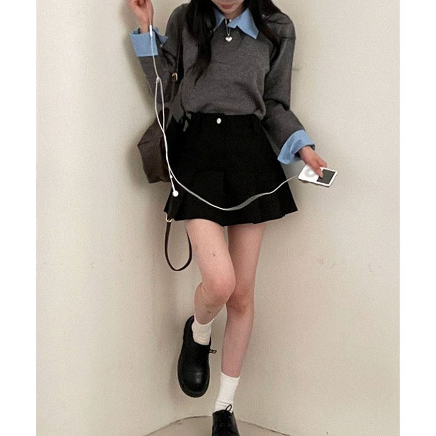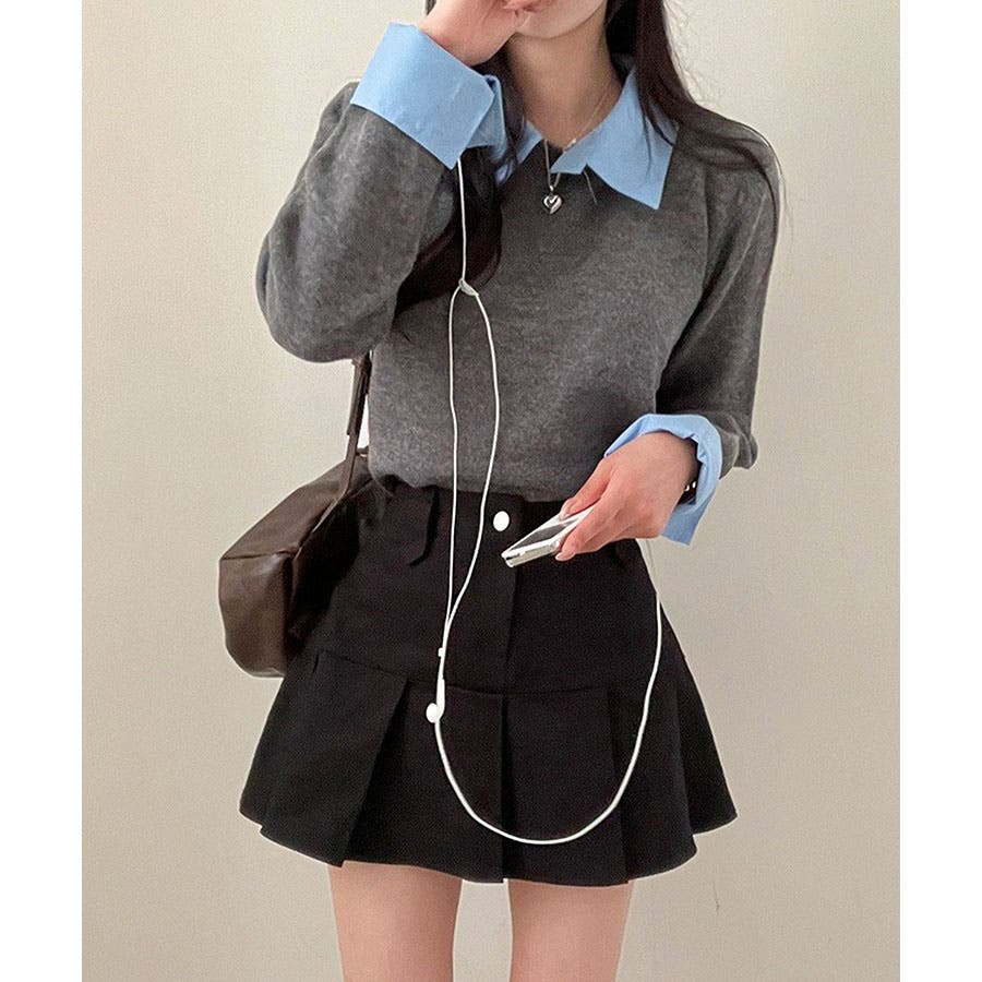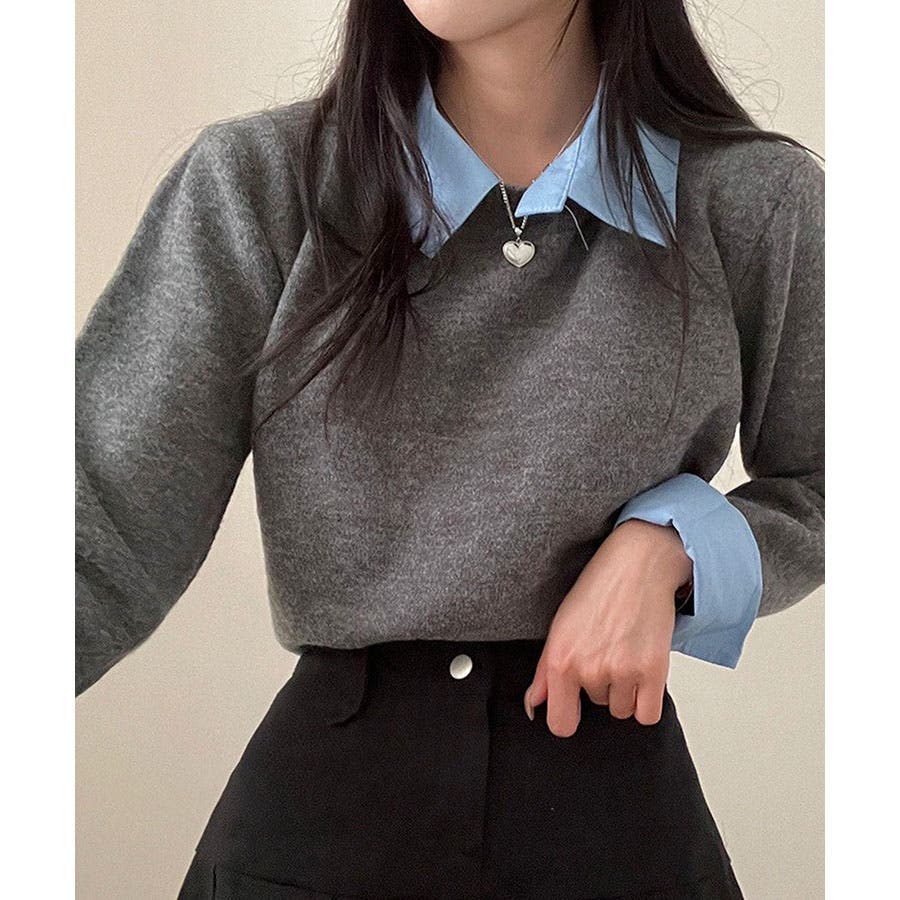 襟元と袖元にはシャツ風ディテールがあしらわれ、シャツを重ね着しているような立体感が演出されています☆