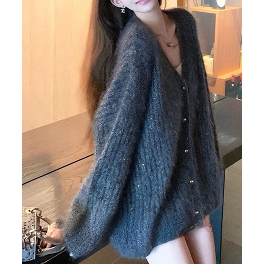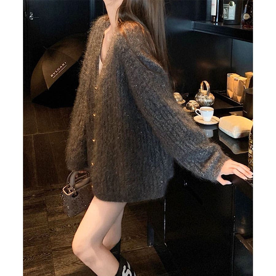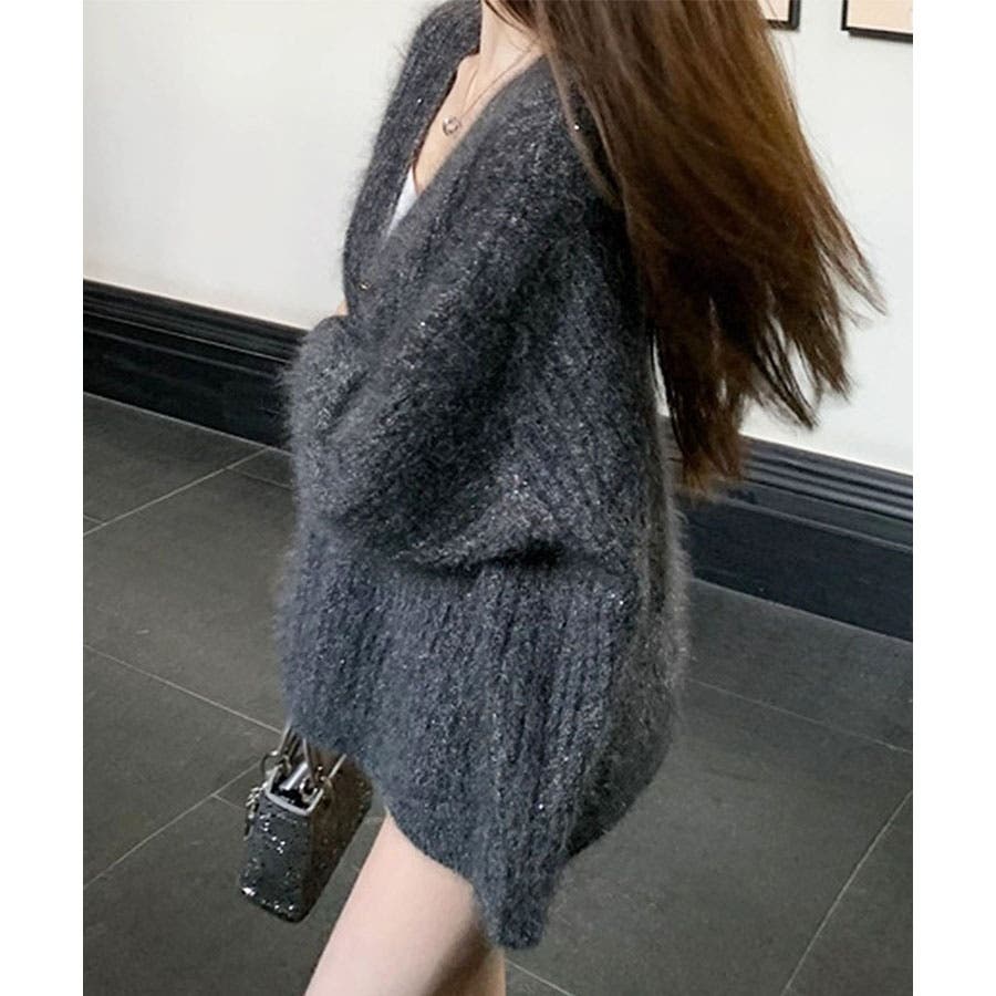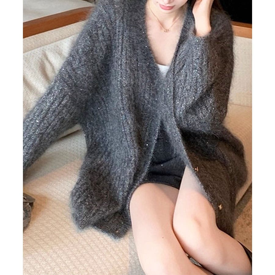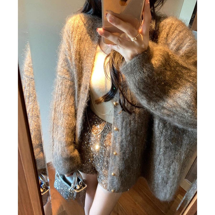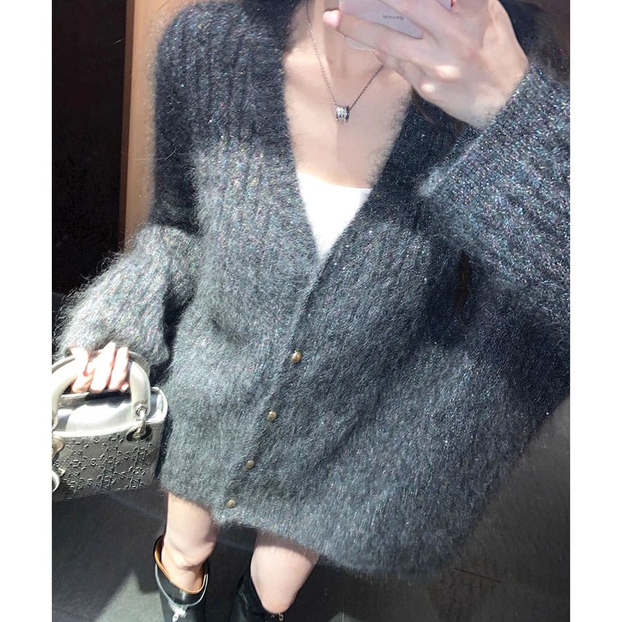 シャギーラメニットカーディガン