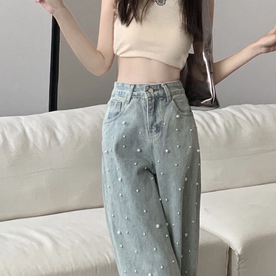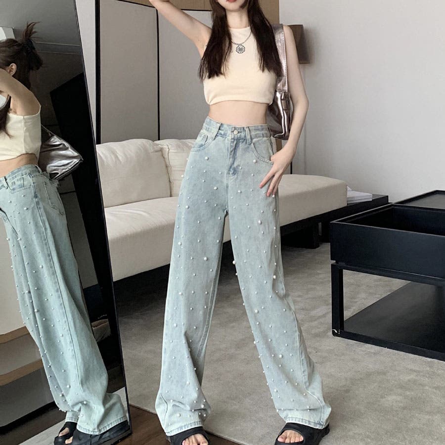 ☆新作/新着/春服/夏服/秋服/デニムパンツ/夏デニム/春デニム/秋デニム/春/夏/秋/ハイウエストデニムパンツ/レディースデニムパンツ/デニム/デニムボトム/ワイドデニムパンツ/お洒落デニム/高見えデニム/パール付き/パールデニム/美ウエストライン/スタイルアップ/脚長美脚/ヴィンテージ風/90年代/韓国デニム/10代/20代/30代/40代/50代/デイリー/お出かけ/デート/女子会/旅行/通勤/通学/きれいめ/大人/かわいい/セクシー/キュート/シンプル/ベーシック/無地/着回し抜群/万能アイテム/新作/新着/プチプラ/人気/トレンド/素材/コットン生地/綿100%/カジュアル/大人カジュアル/古着MIX/アメカジ/ガーリー/きれいめ/韓国/ギャル/個性的☆