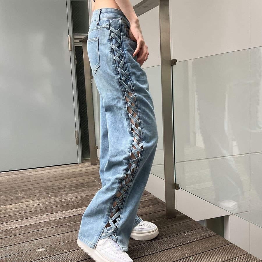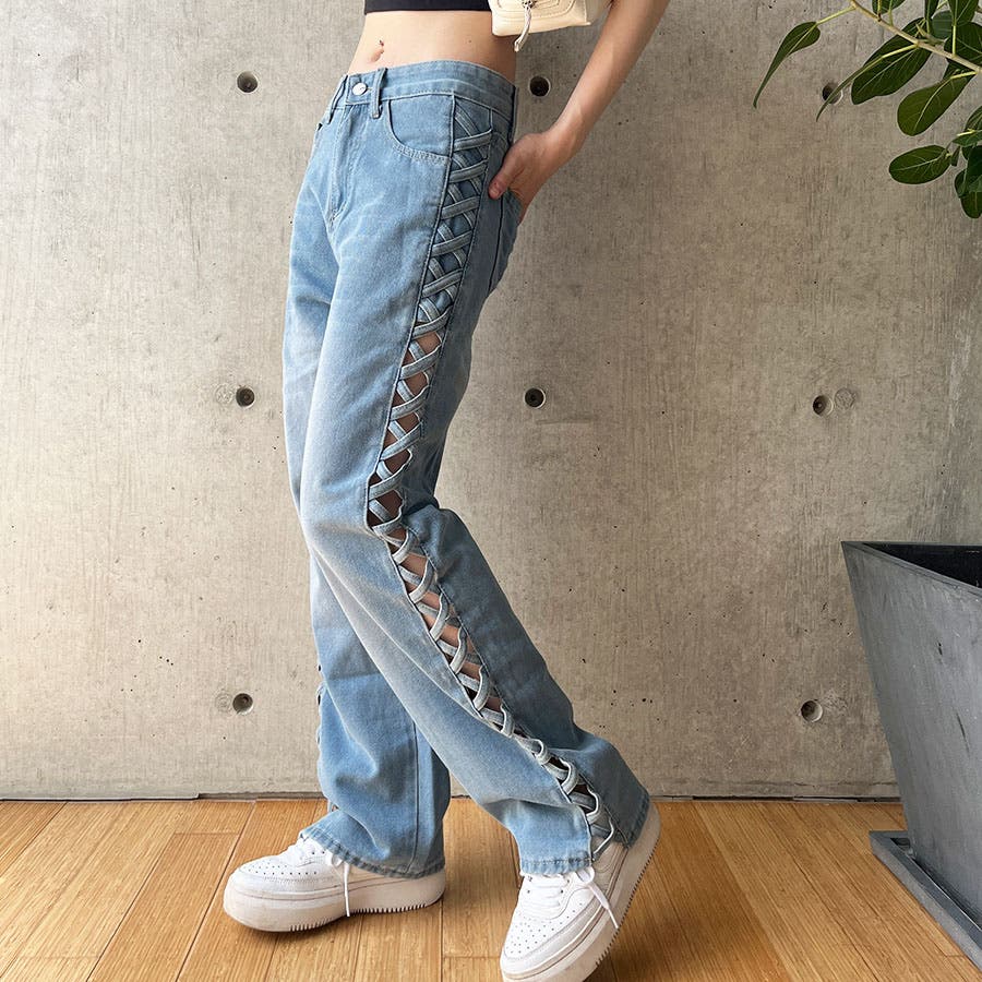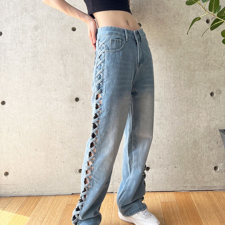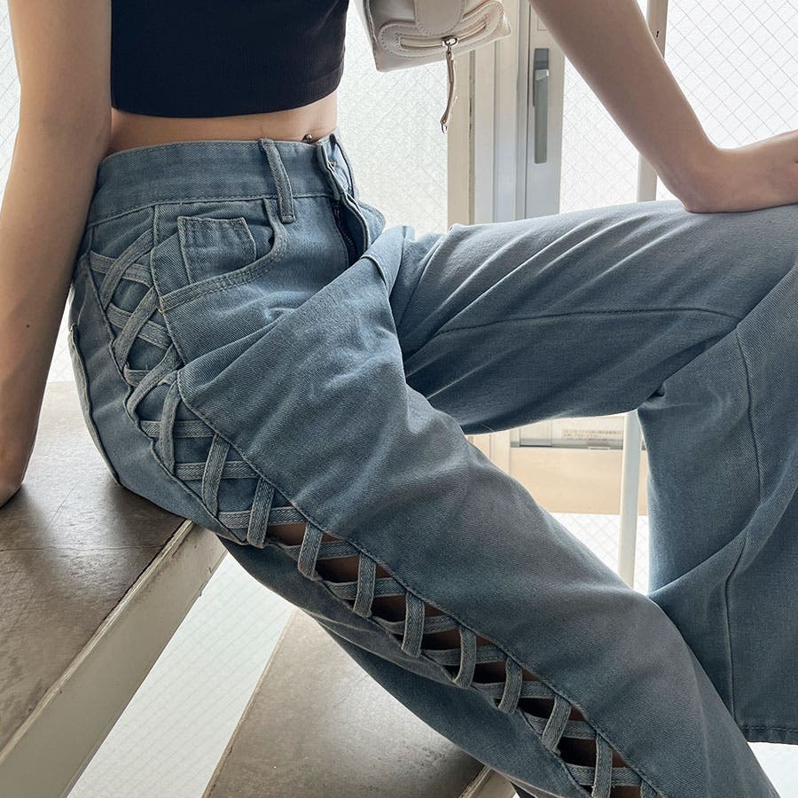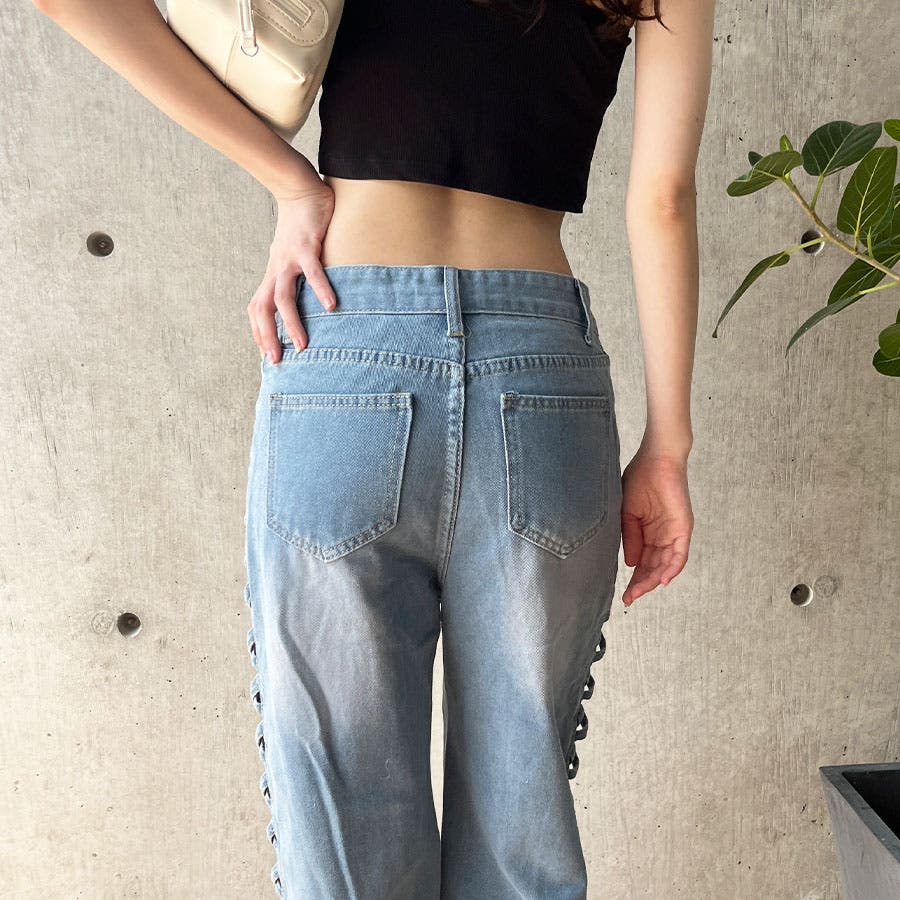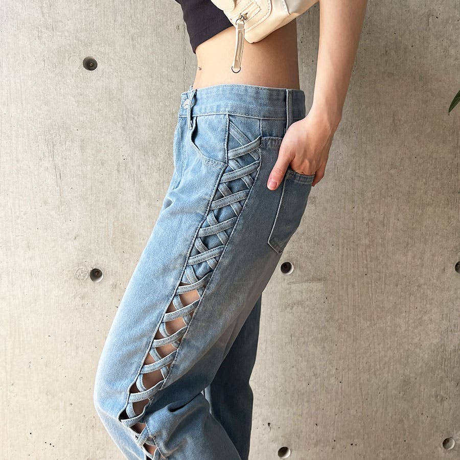 トレンドのレースアップデザインがデニムパンツで登場!!