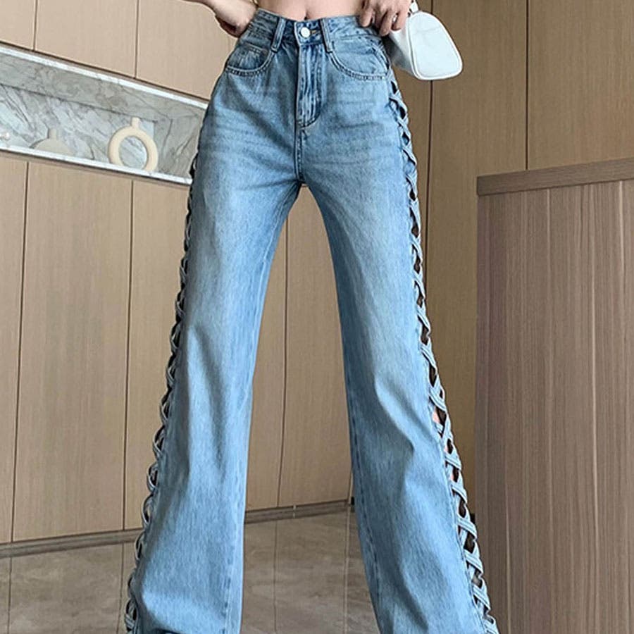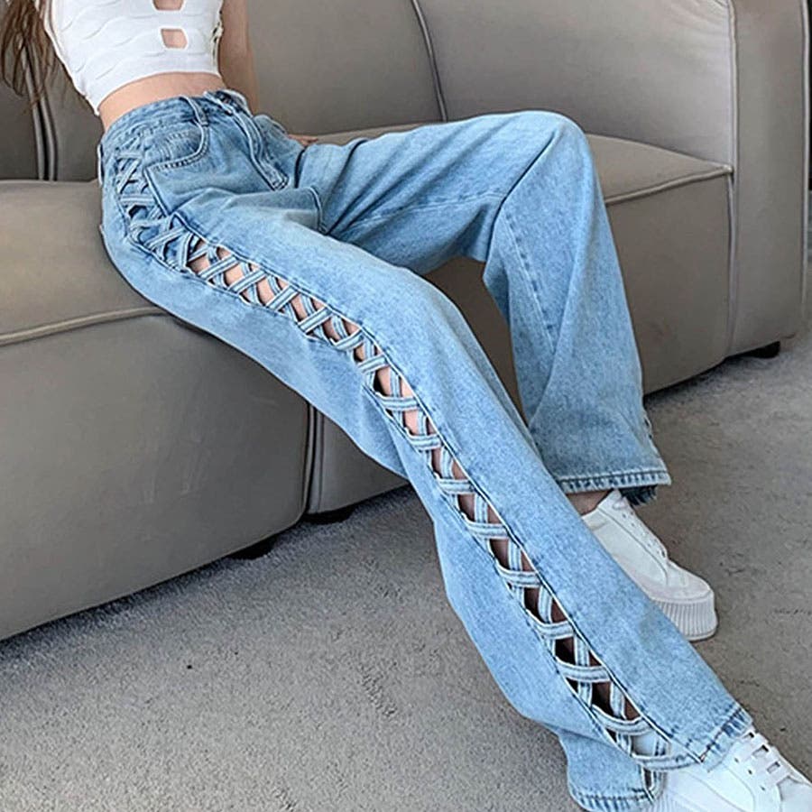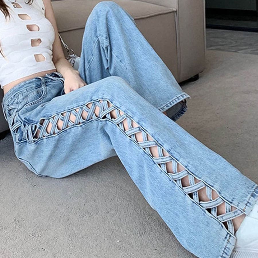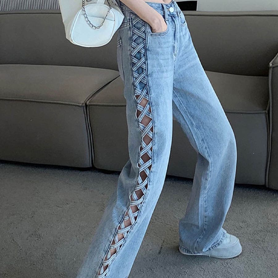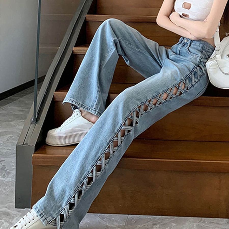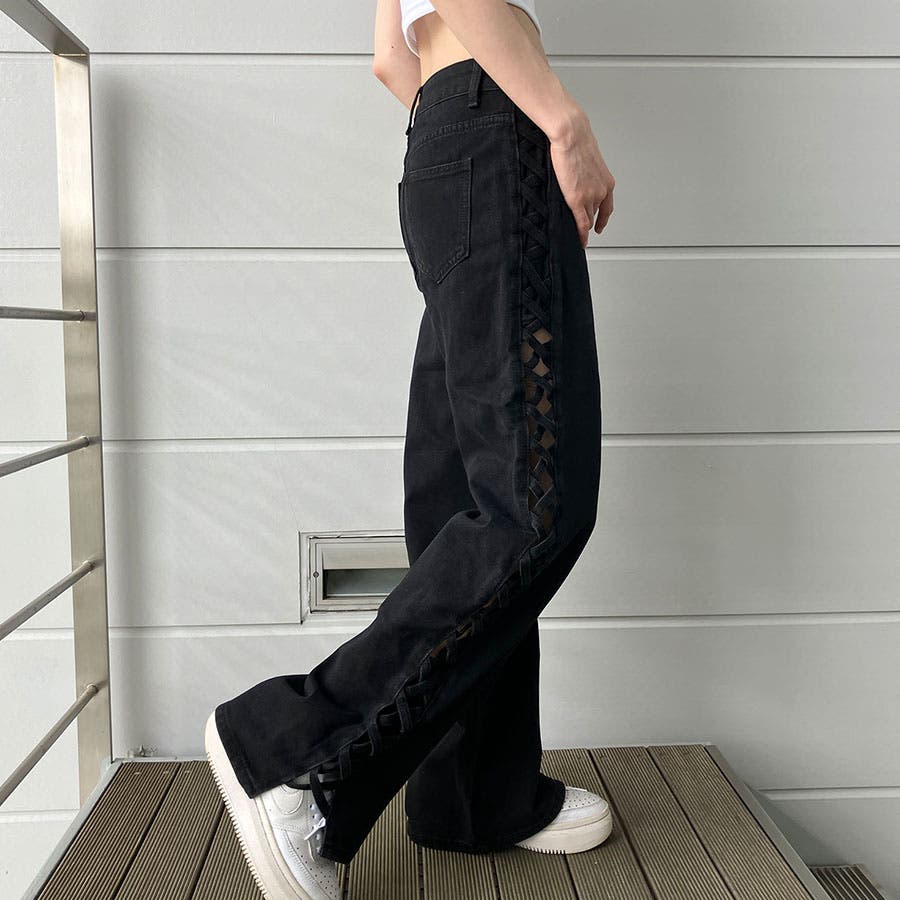 トレンドのレースアップデザインがデニムパンツで登場!!