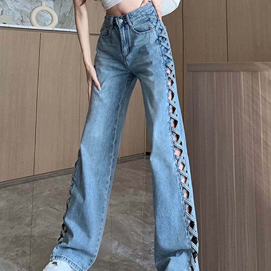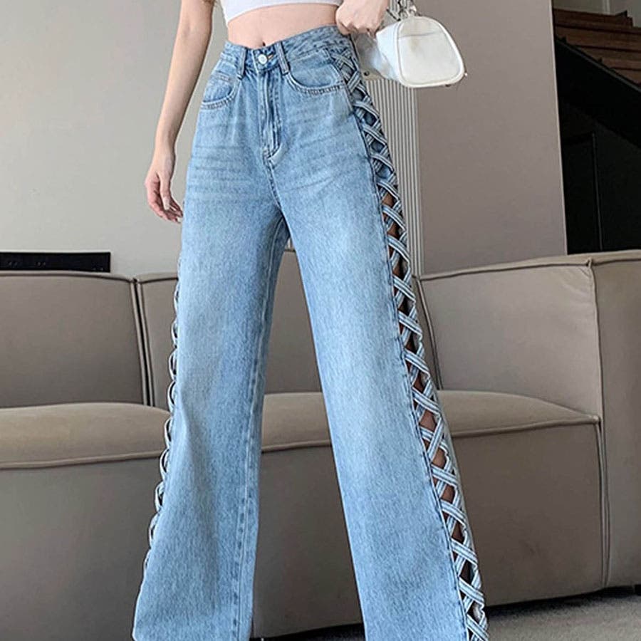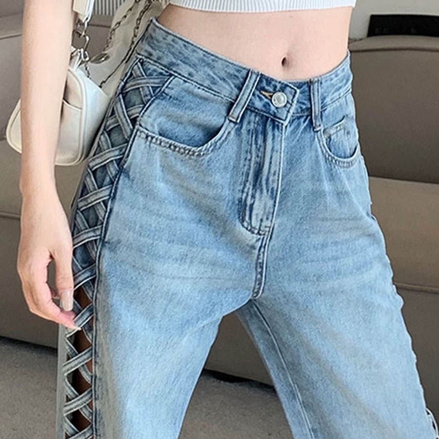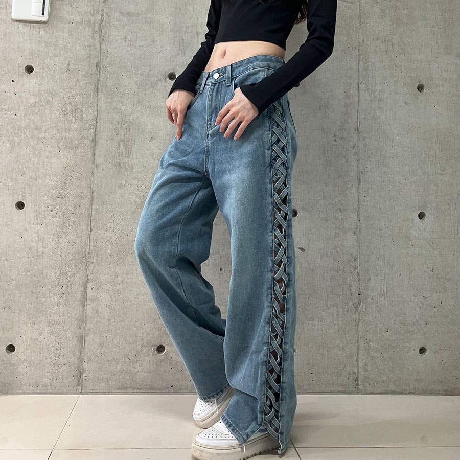 【新色追加】サイドカットアウトデニムストレートパンツ