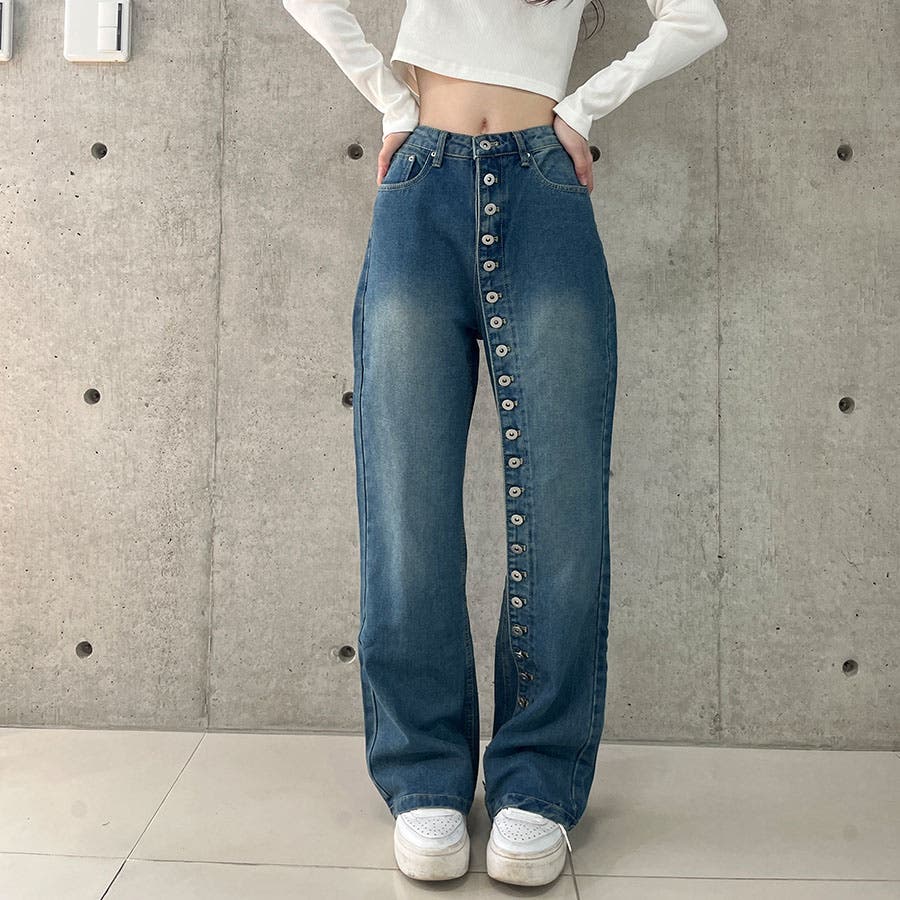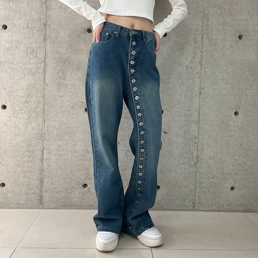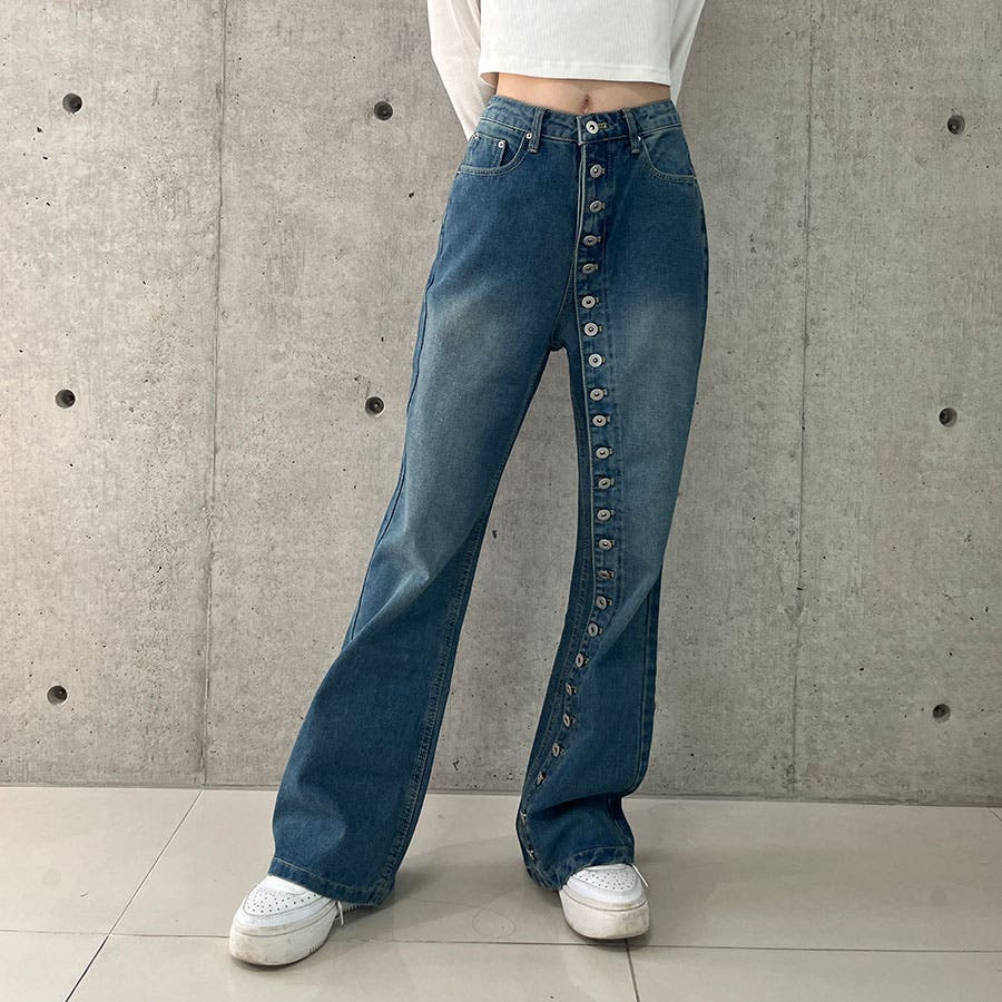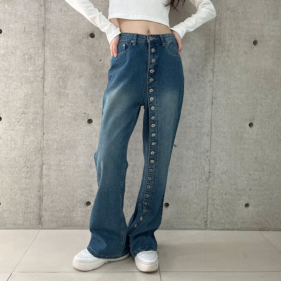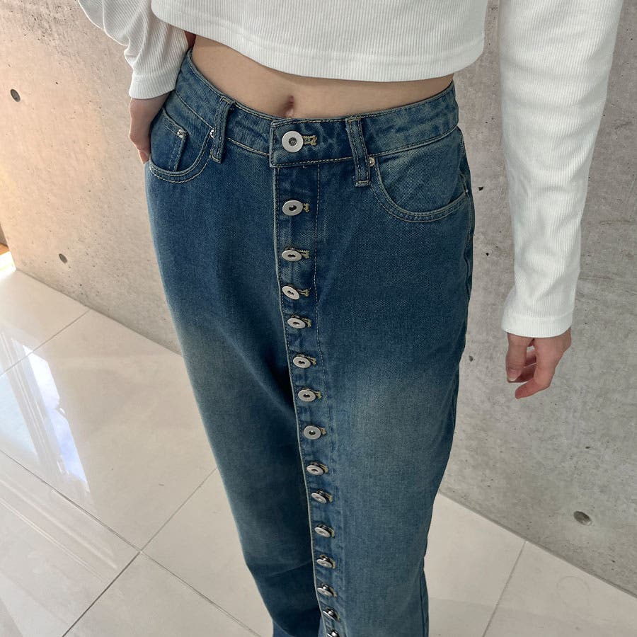 ウエストから裾にかけてボタンデザインが施されたデニムパンツが新登場!!
