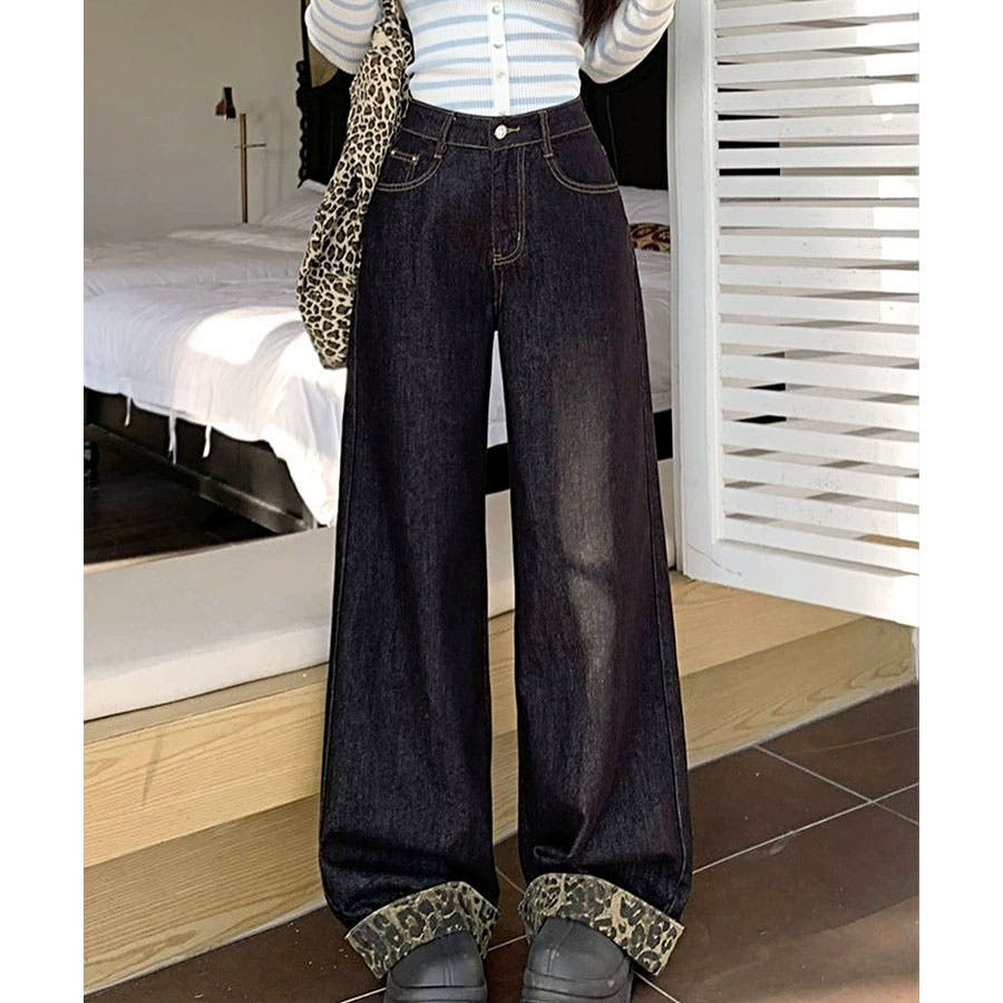 ルーズなデニムパンツにレオパード柄デザインで1着で主役級のデニムパンツ♪