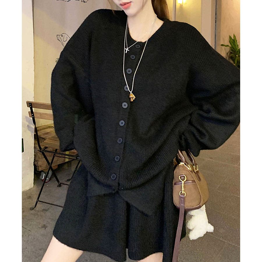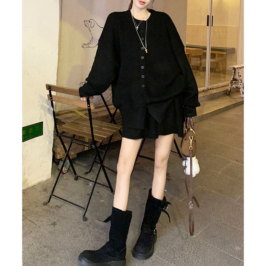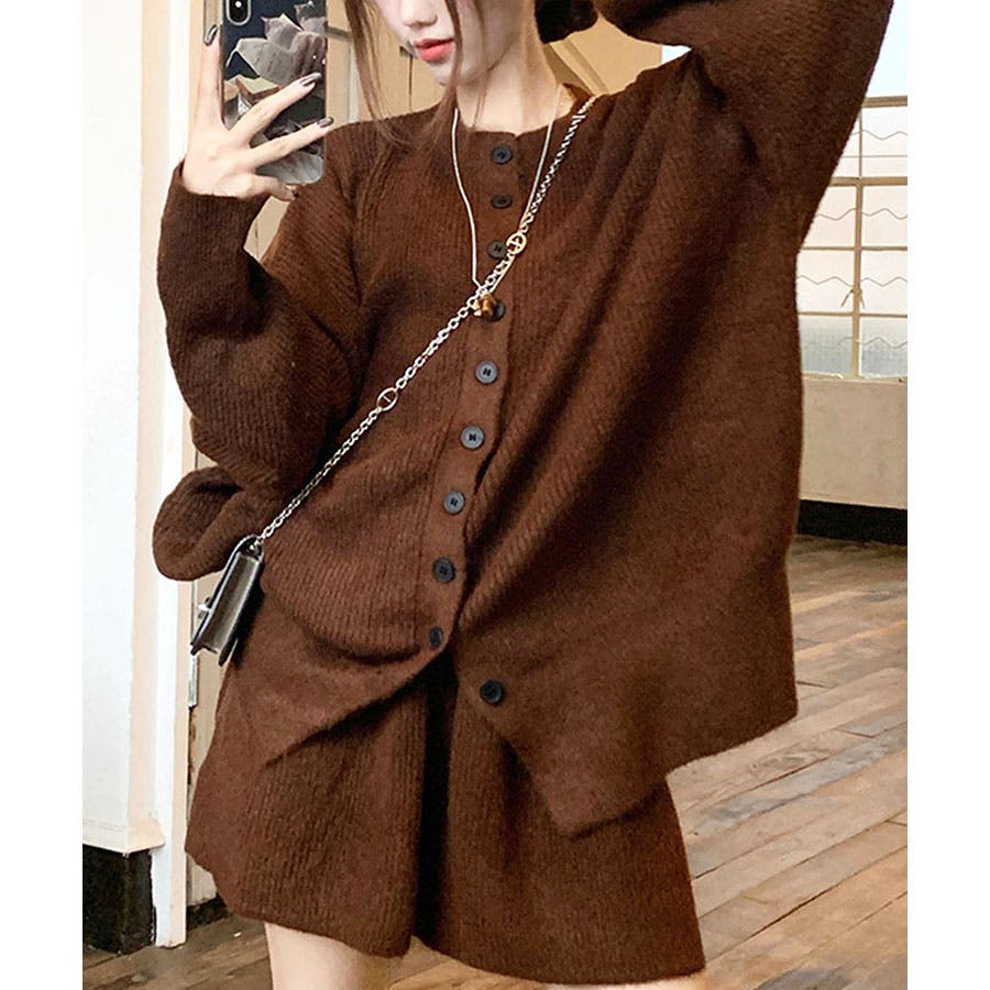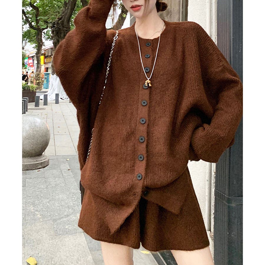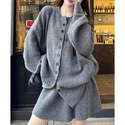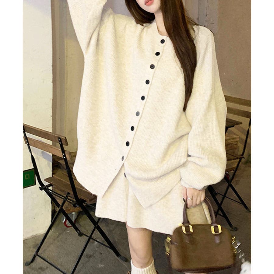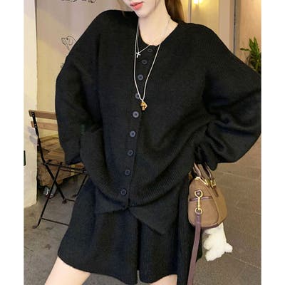 シンプルなニットカーデはフロントのボタンデザインがアクセントに♪