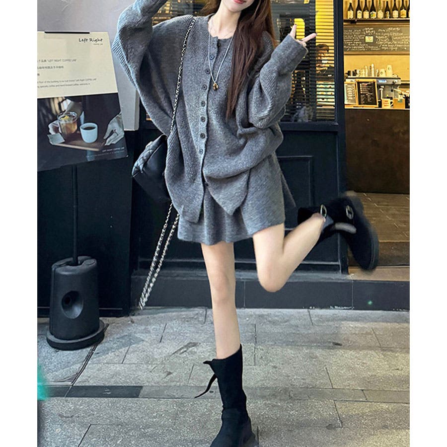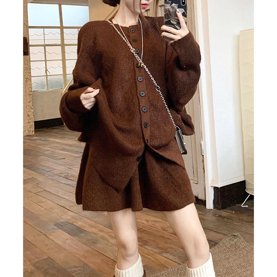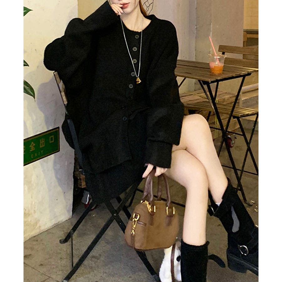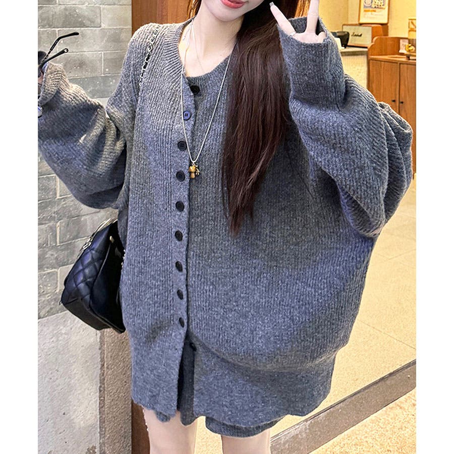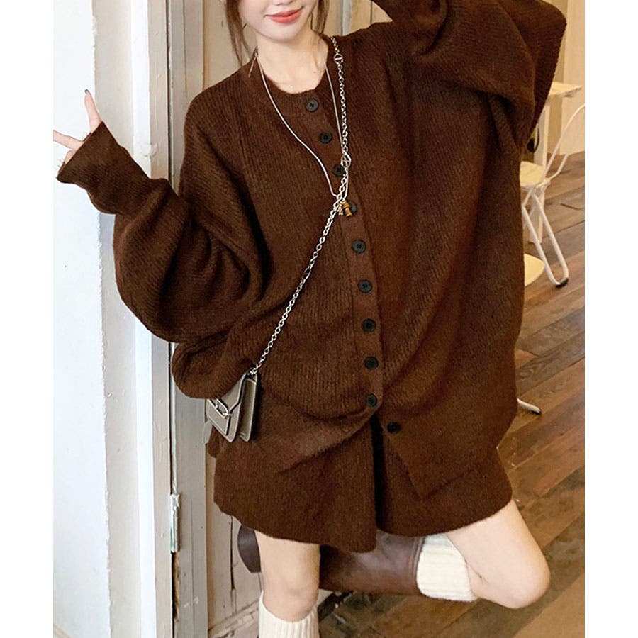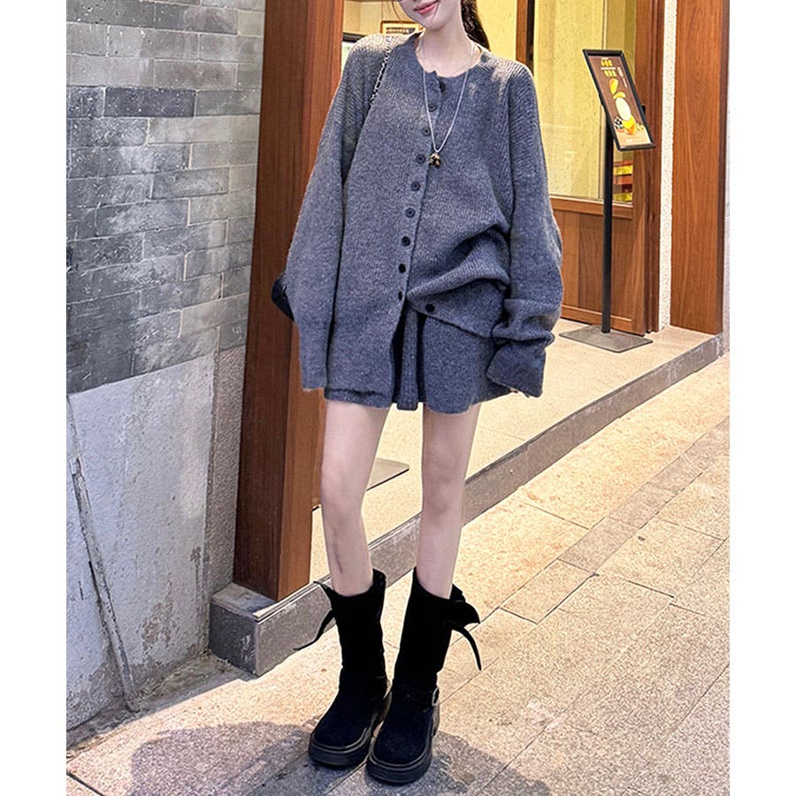 シンプルなニットカーデはフロントのボタンデザインがアクセントに♪
