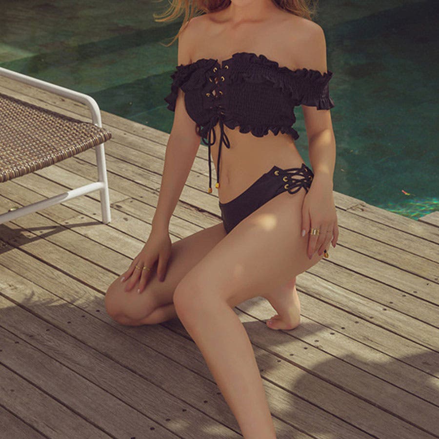 ボトムのサイドに施されたレースアップもアクセントに♪