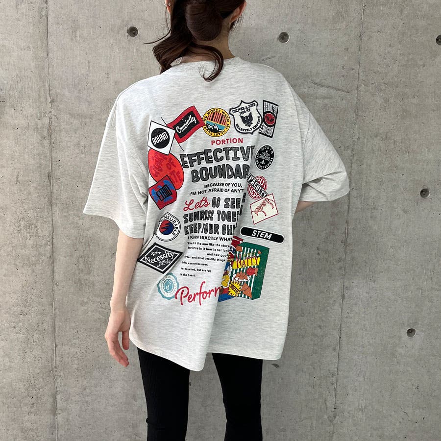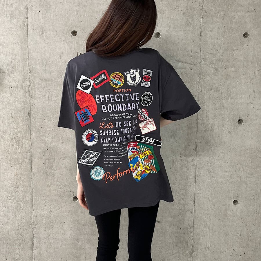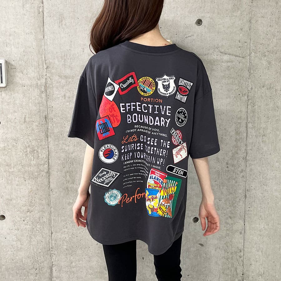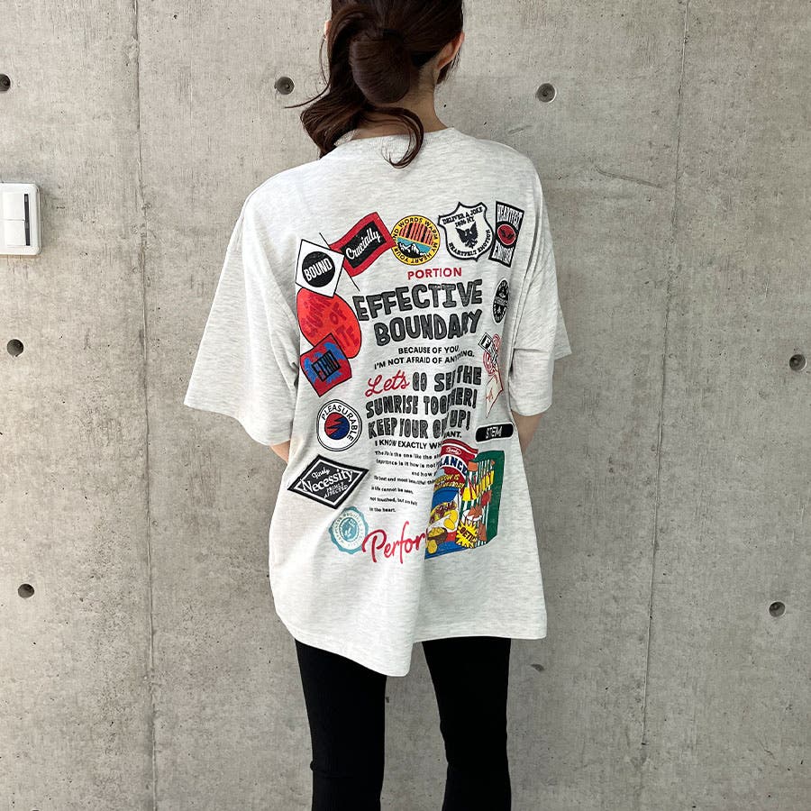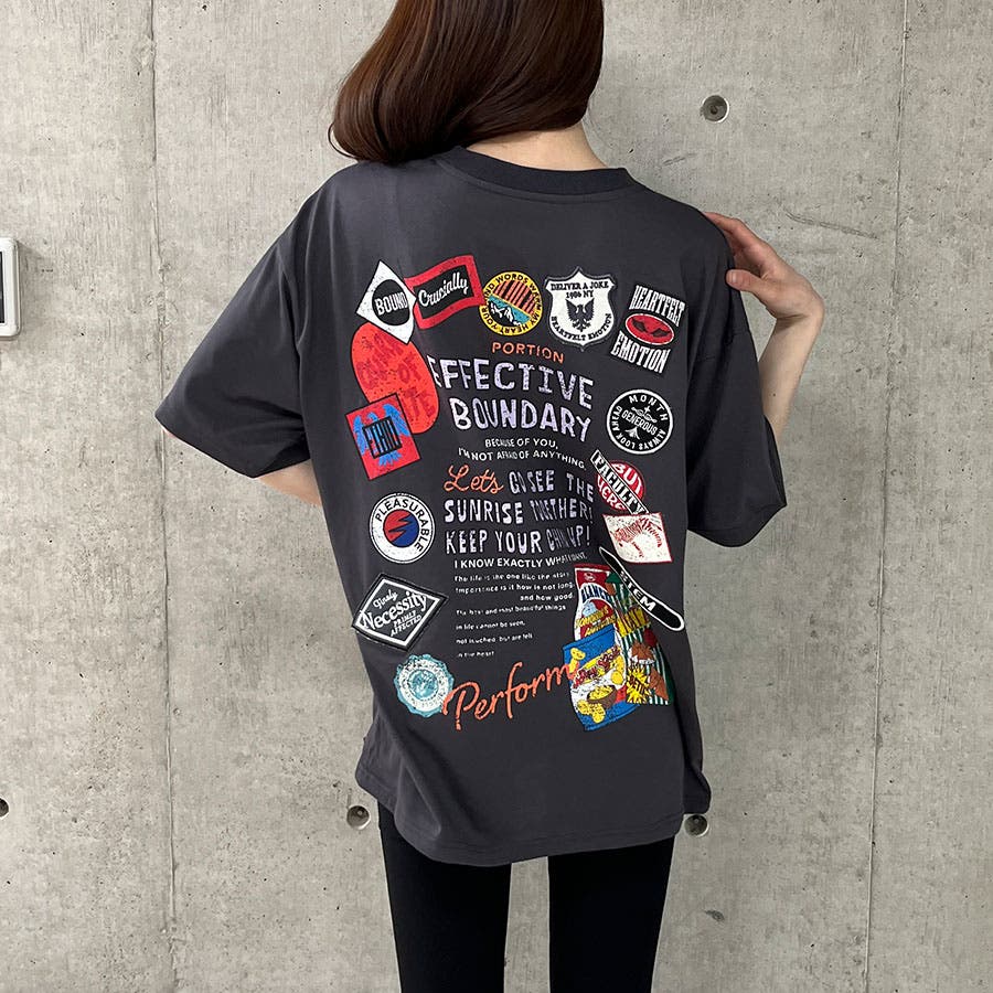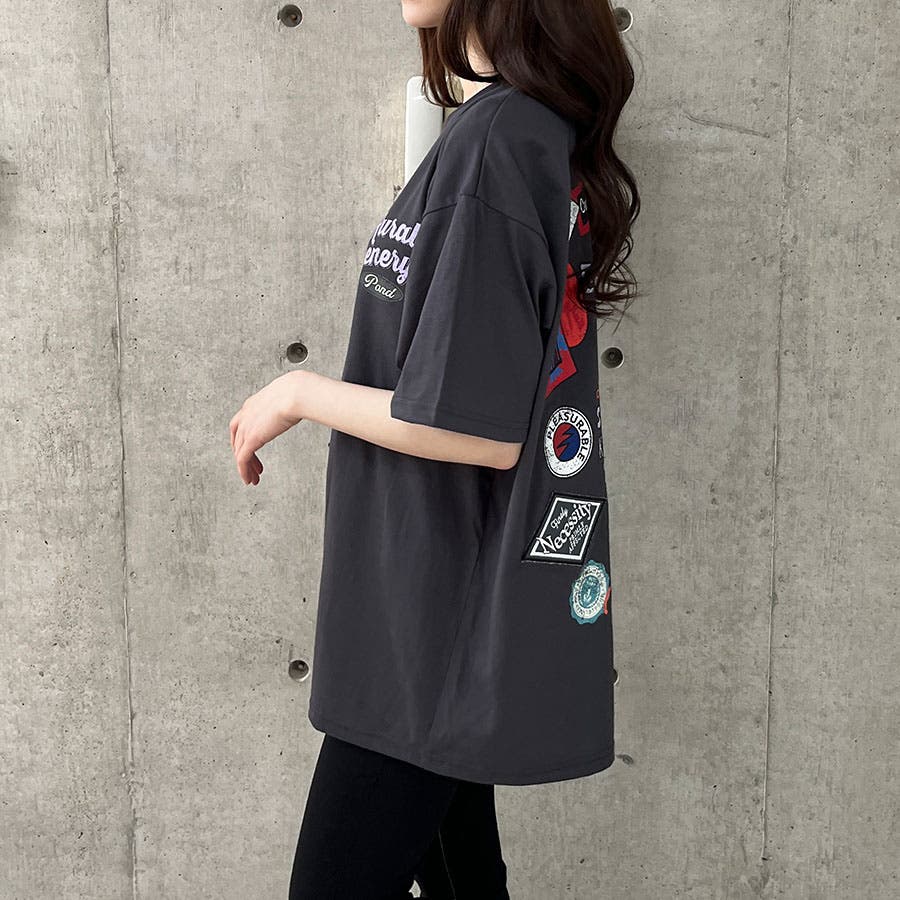 【モクグレー】バックワッペン&プリントデザインビックTシャツ