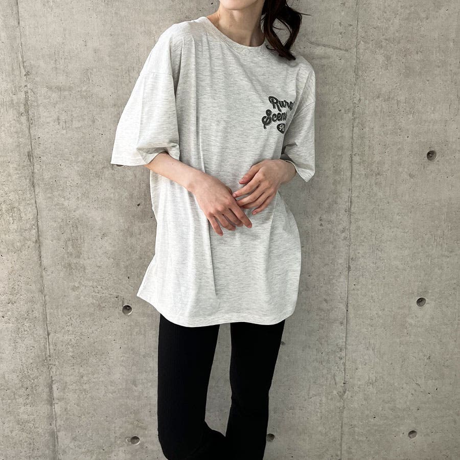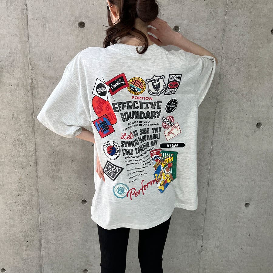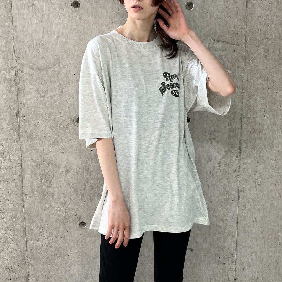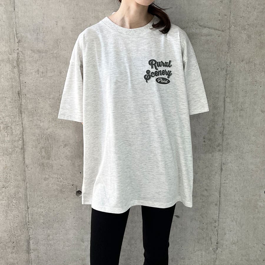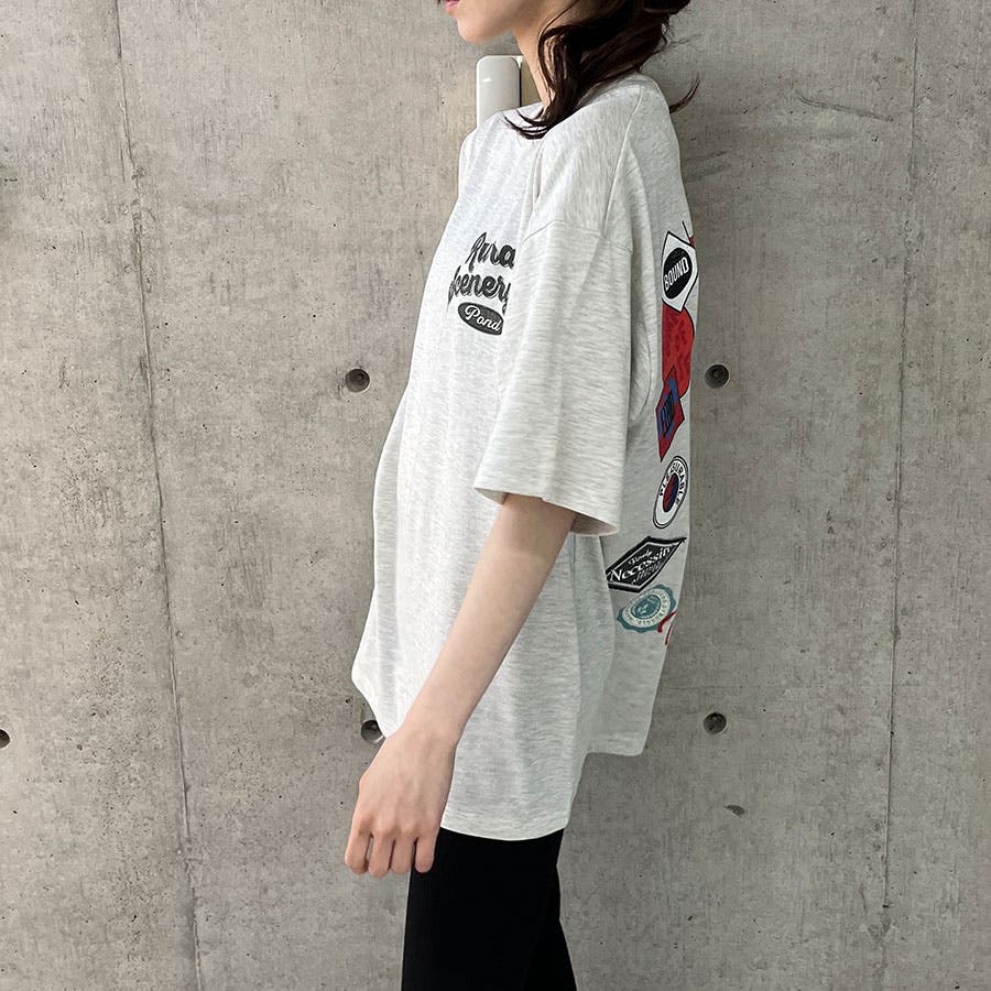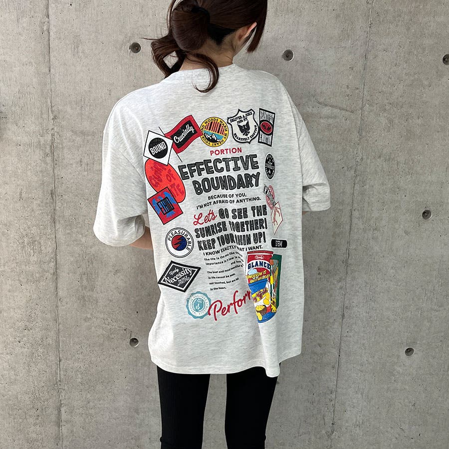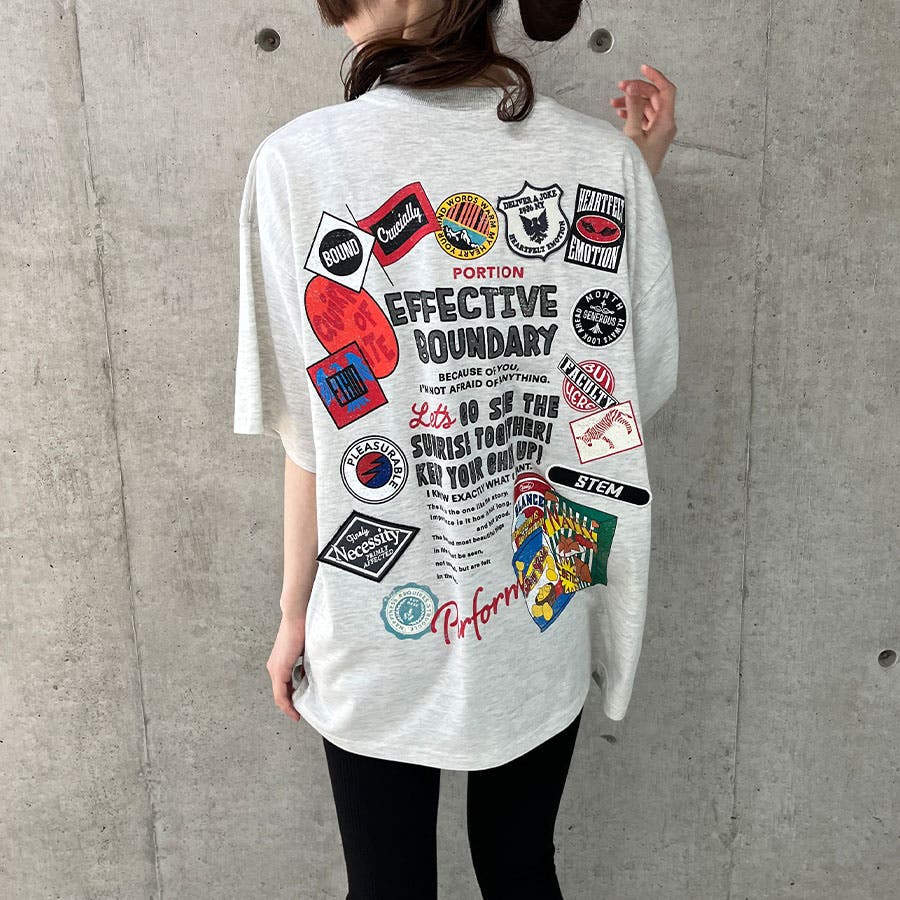 【モクグレー】バックワッペン&プリントデザインビックTシャツ