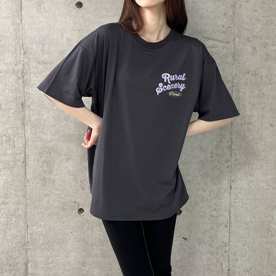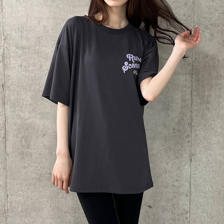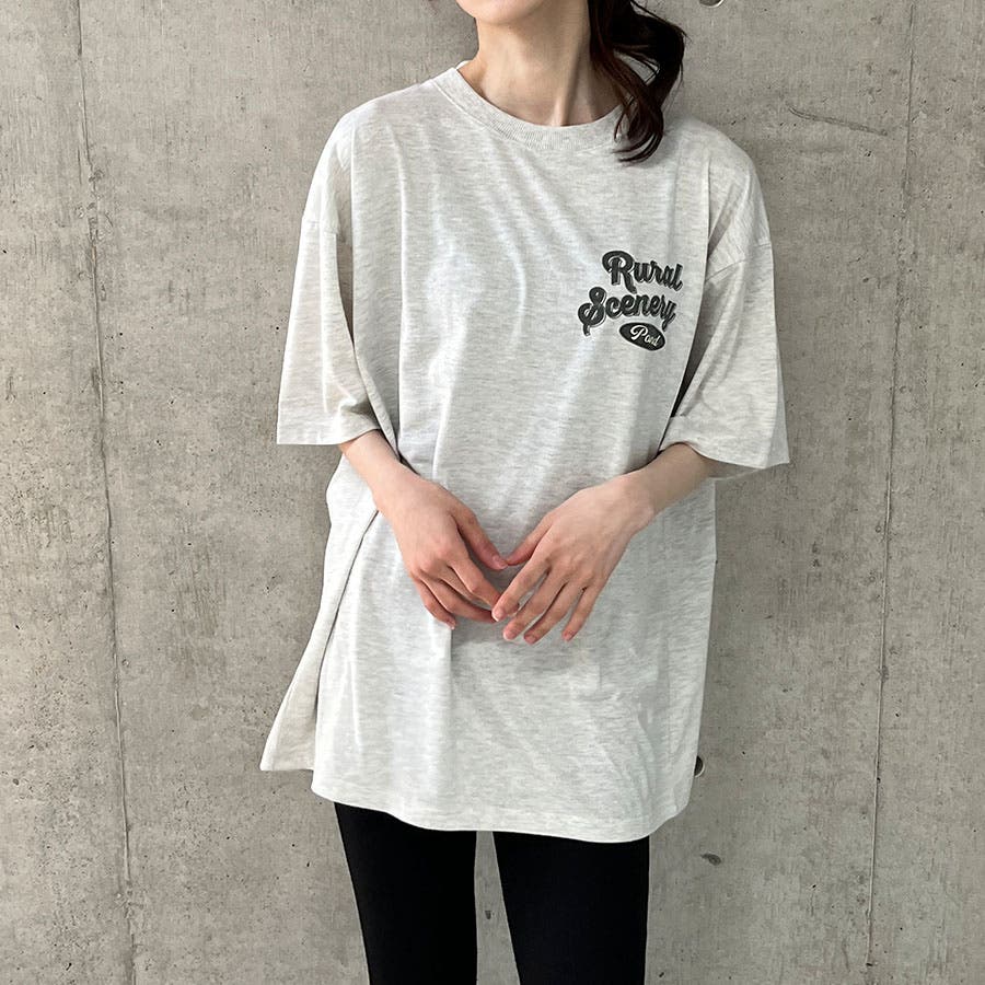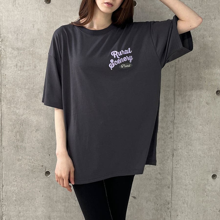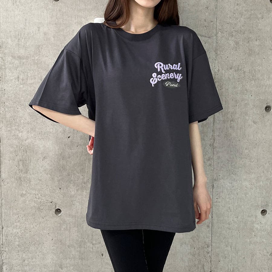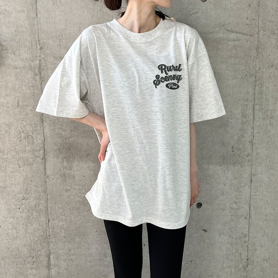【モクグレー】バックワッペン&プリントデザインビックTシャツ