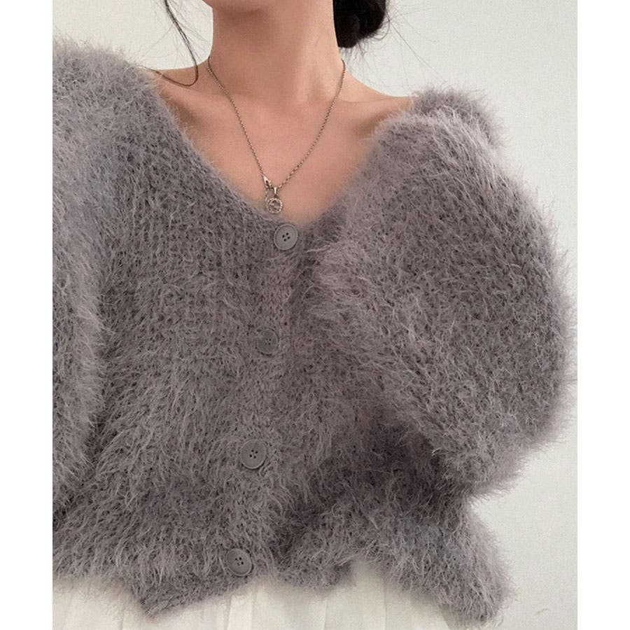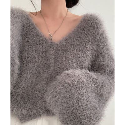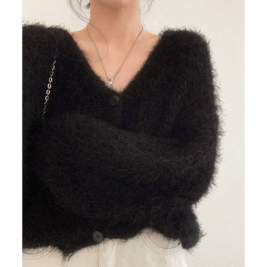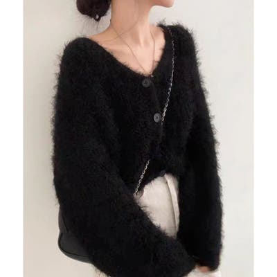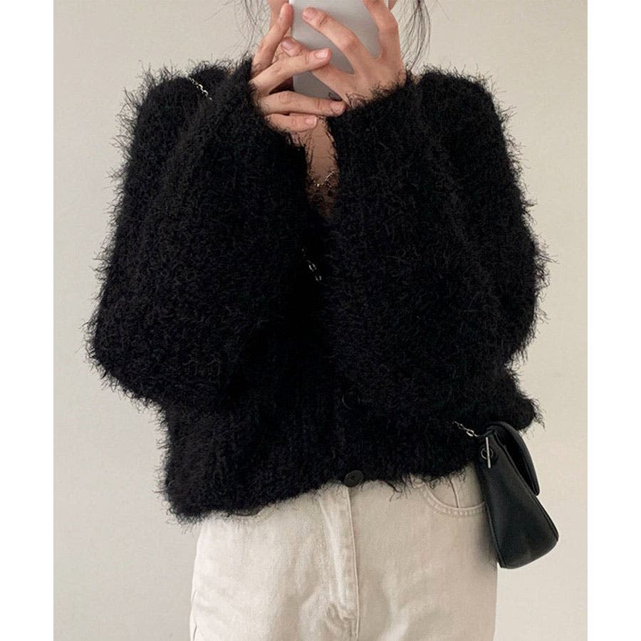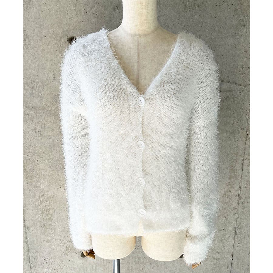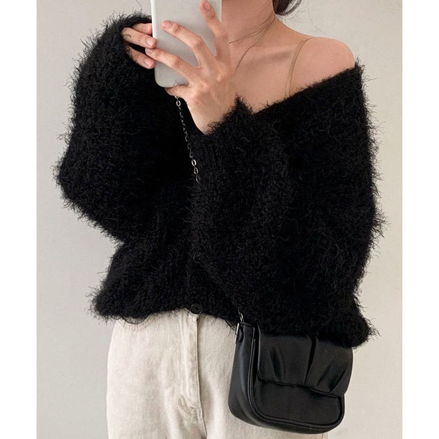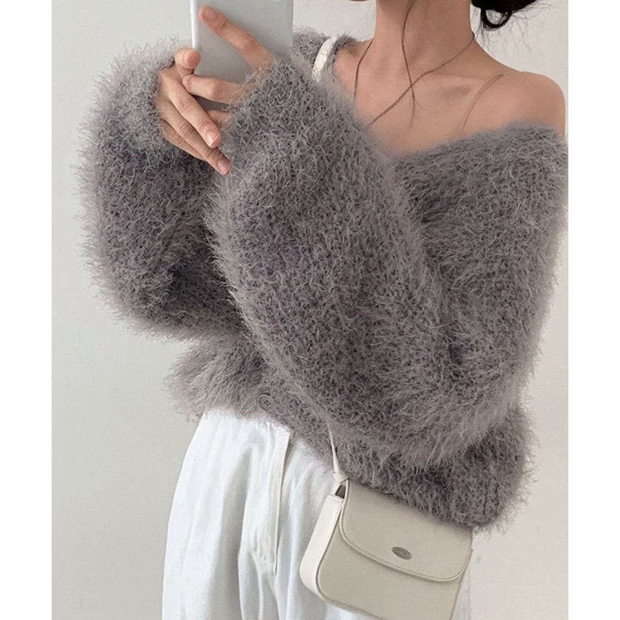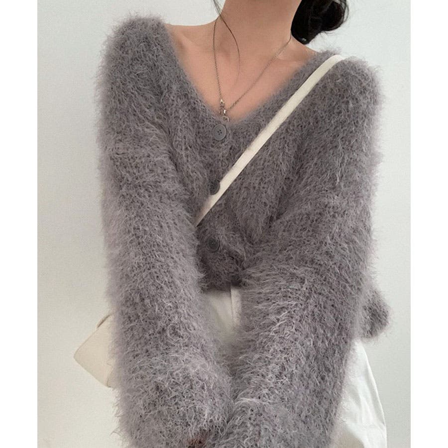 Vネックシャギーニットカーディガン