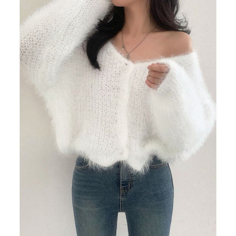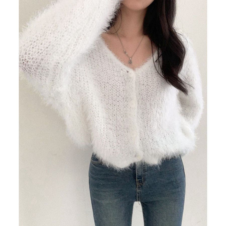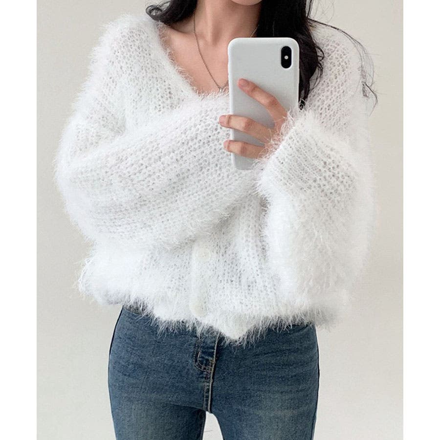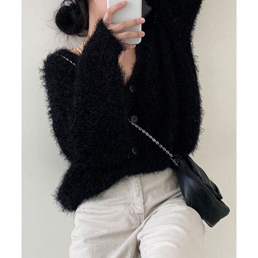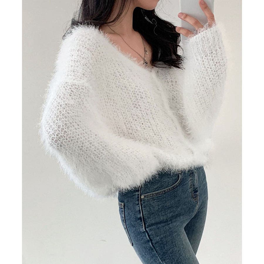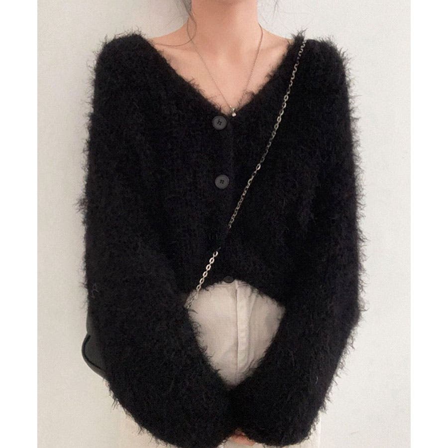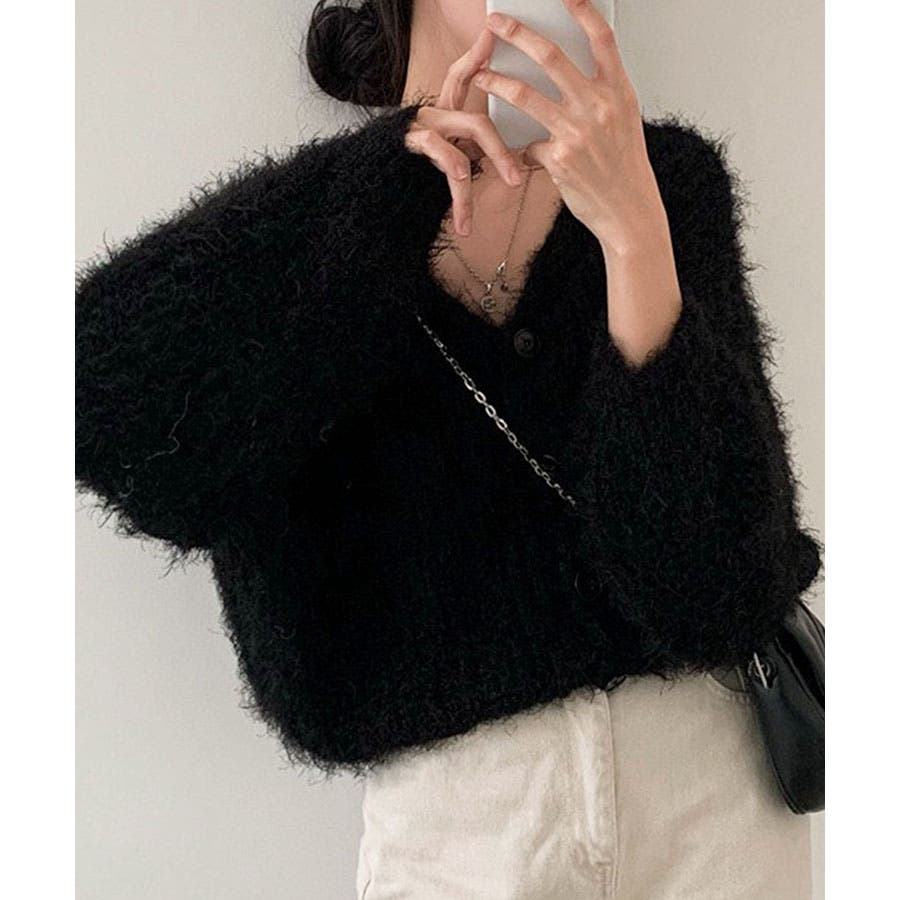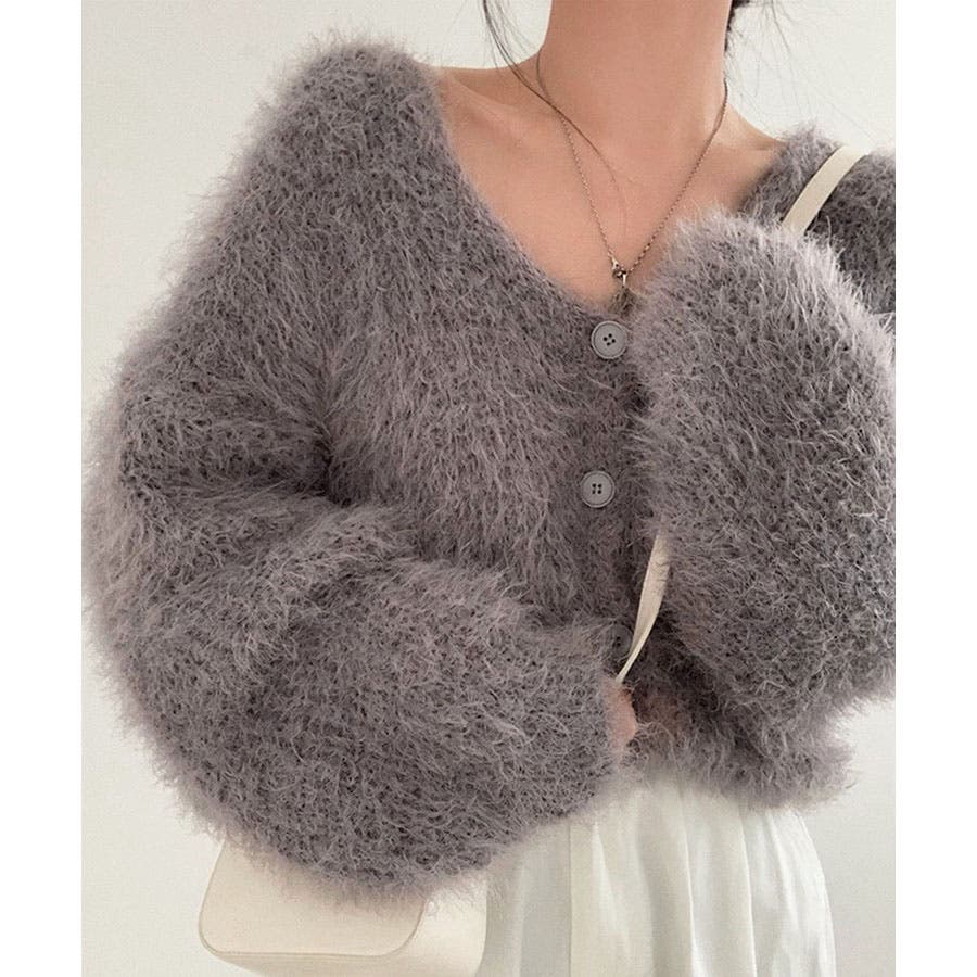 Vネックシャギーニットカーディガン