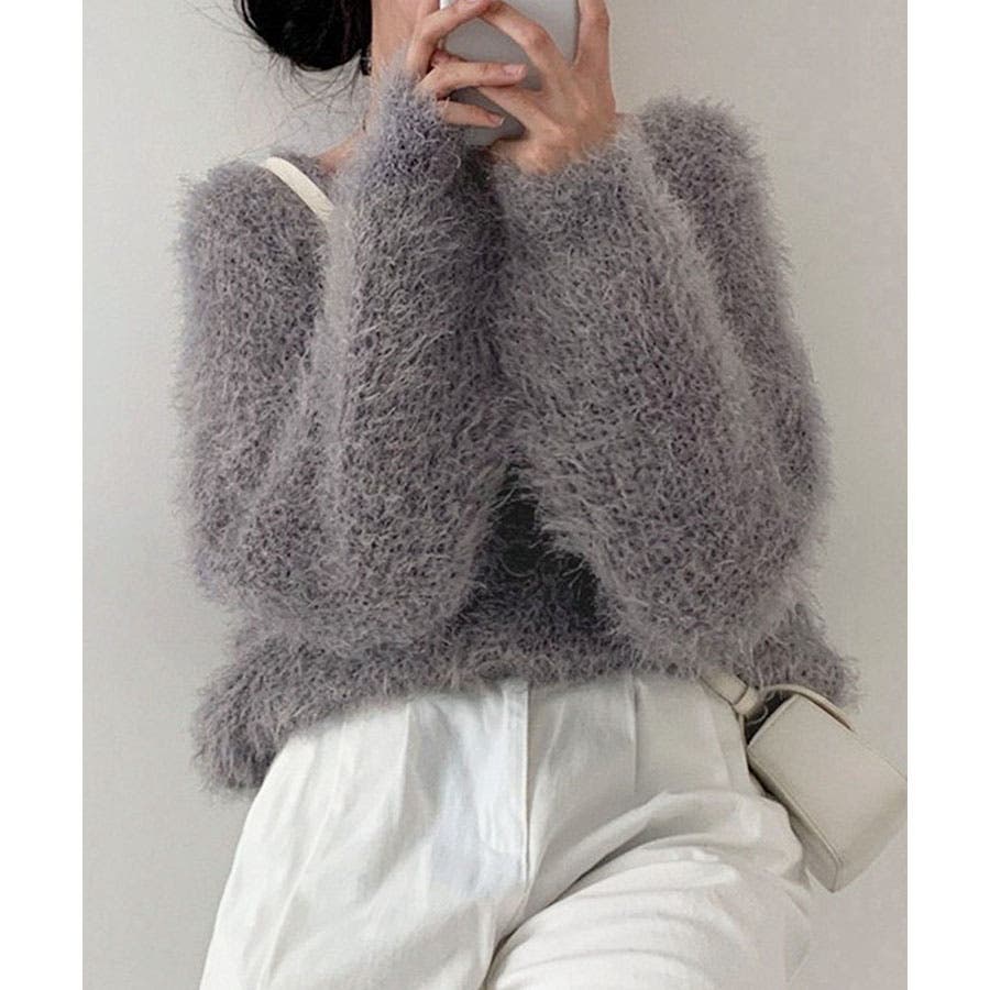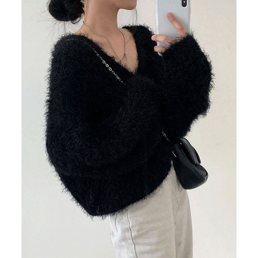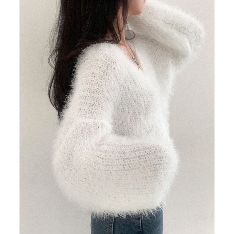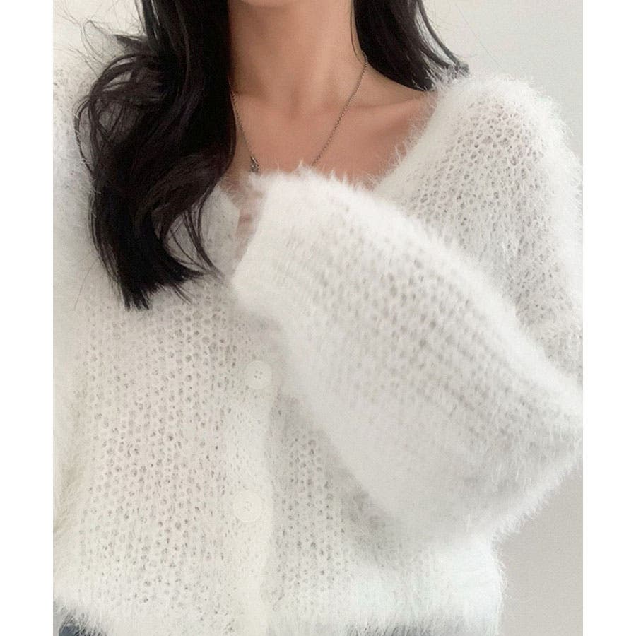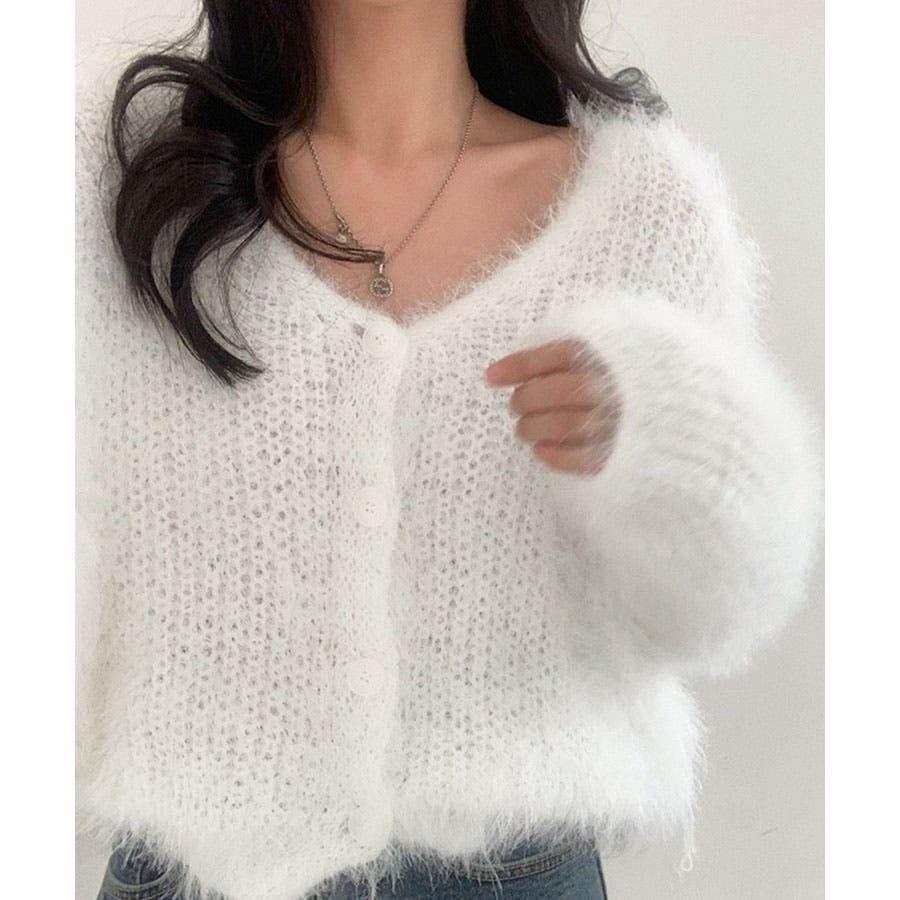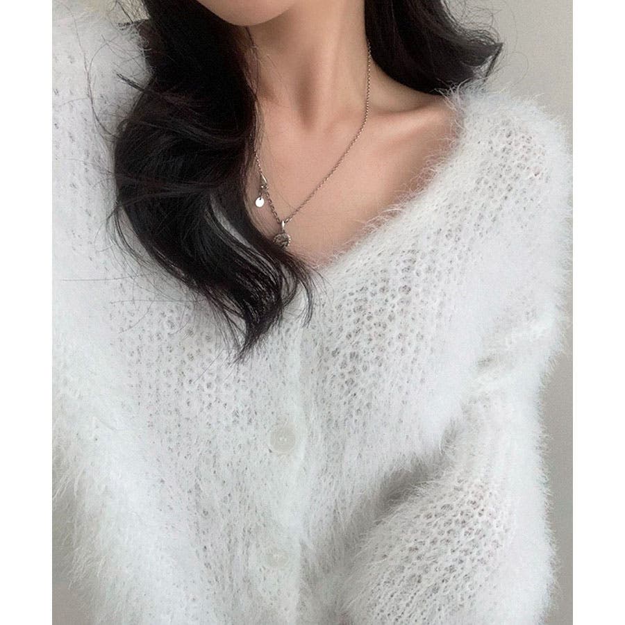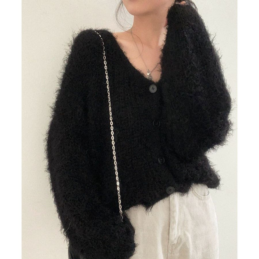 Vネックシャギーニットカーディガン