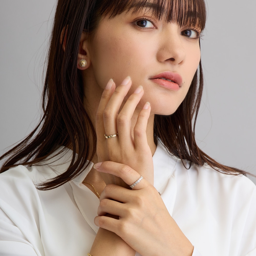 サイズ調整も可能なので、他のリングとの重ねづけも、お楽しみいただけます。