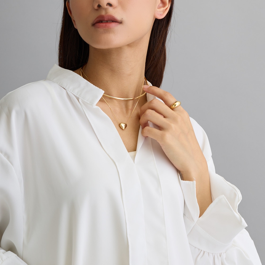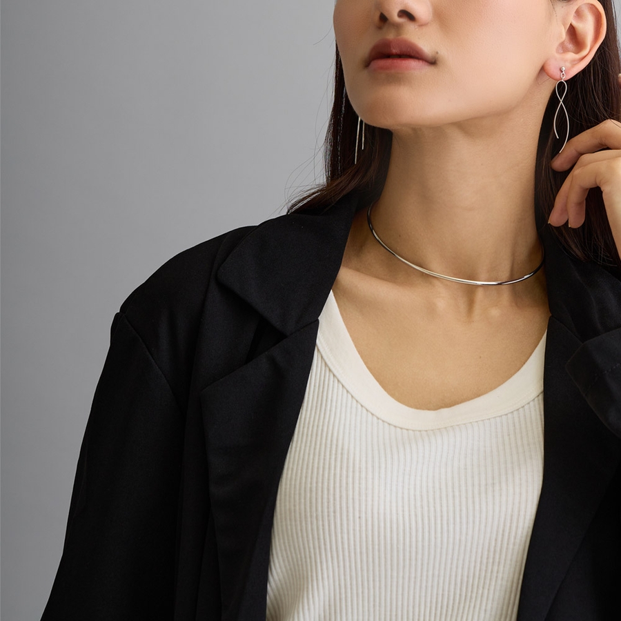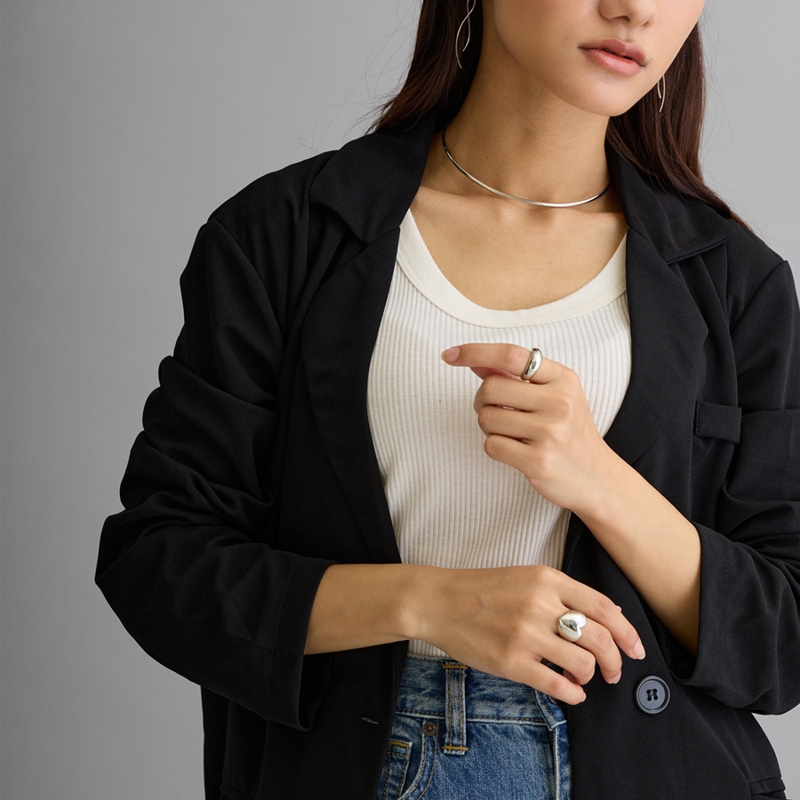 顔周りを華やかにしてくれる細目のシンプルチョーカー。