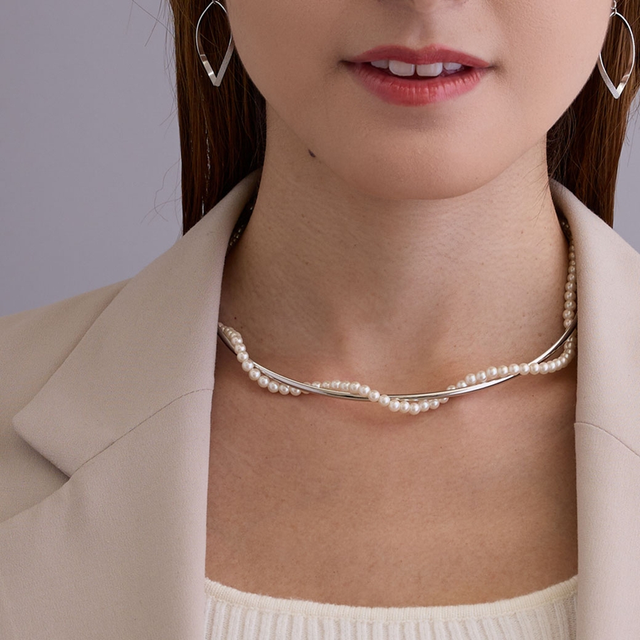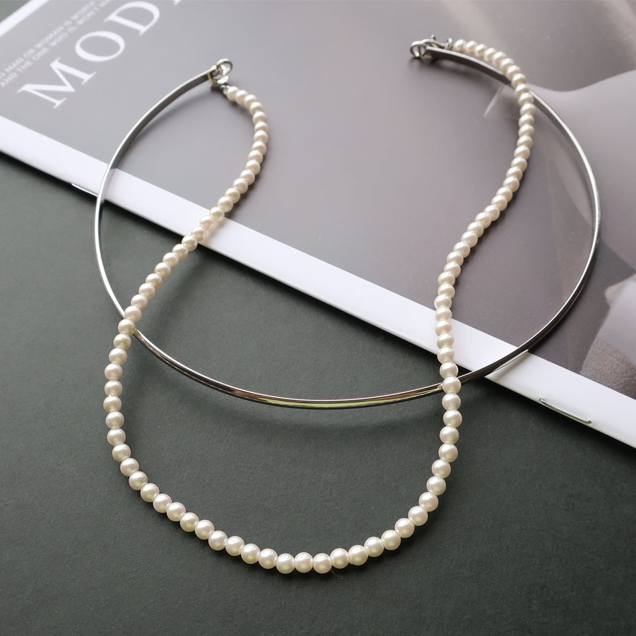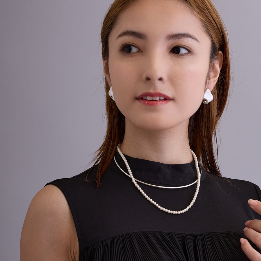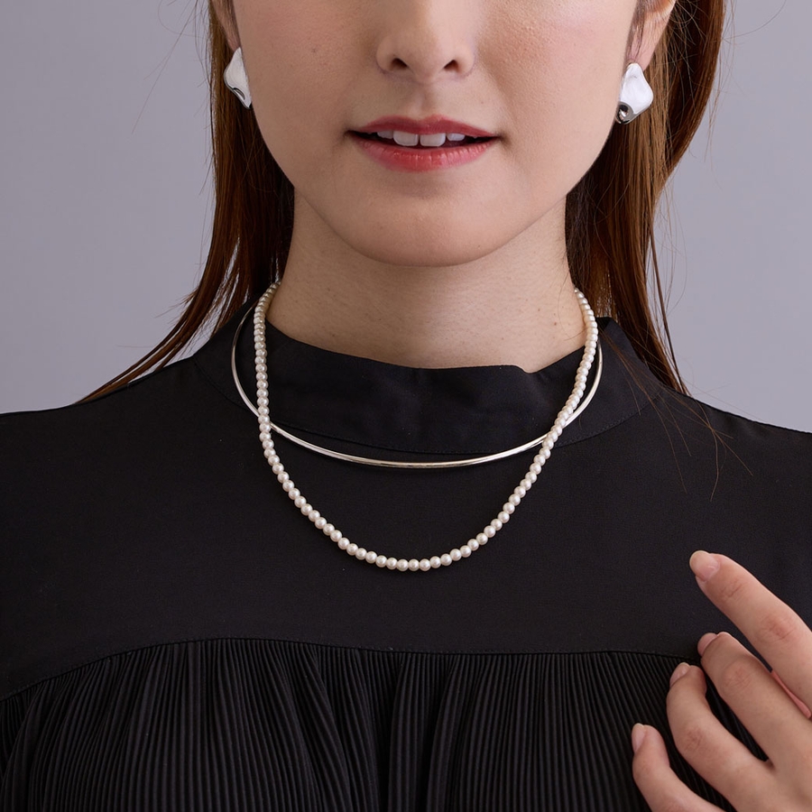 顔周りを華やかにしてくれる細目のシンプルチョーカー&パールネックレス。