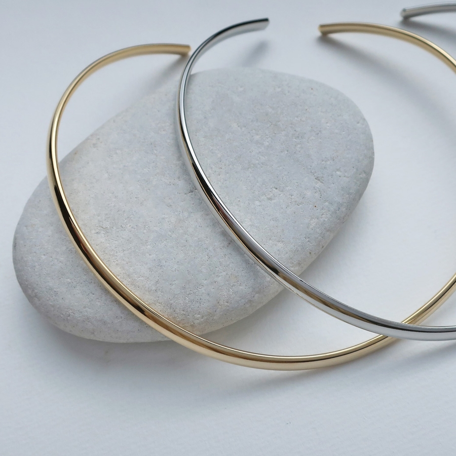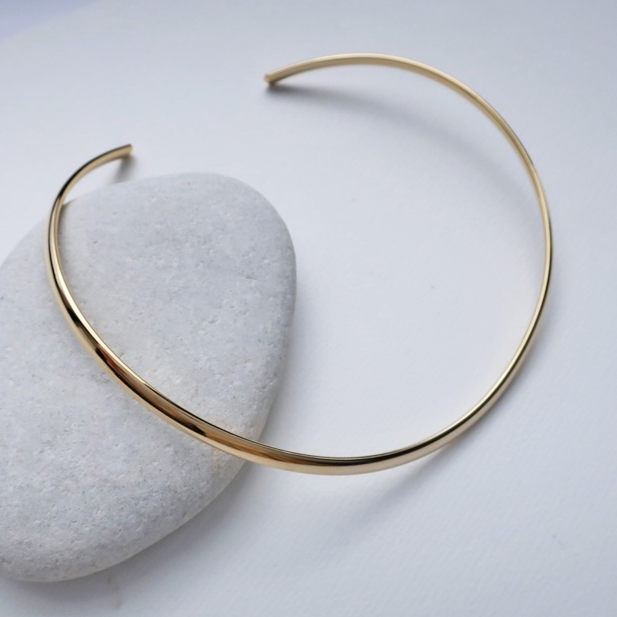シンプルでありながら、日本製ならではの“しっかりとした作り”が際立つカーブチョーカー。